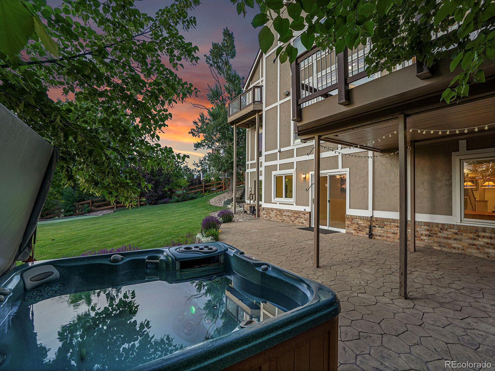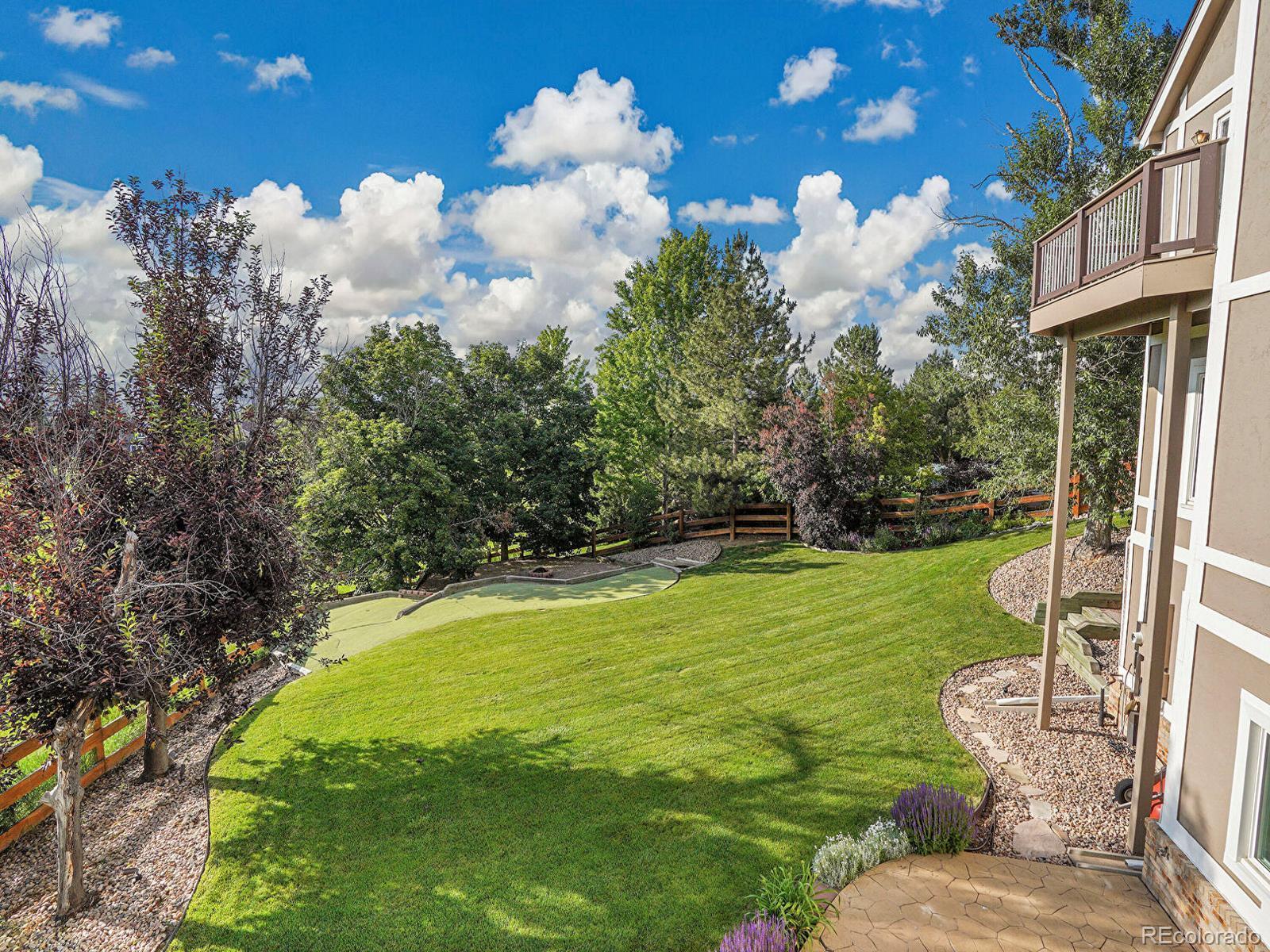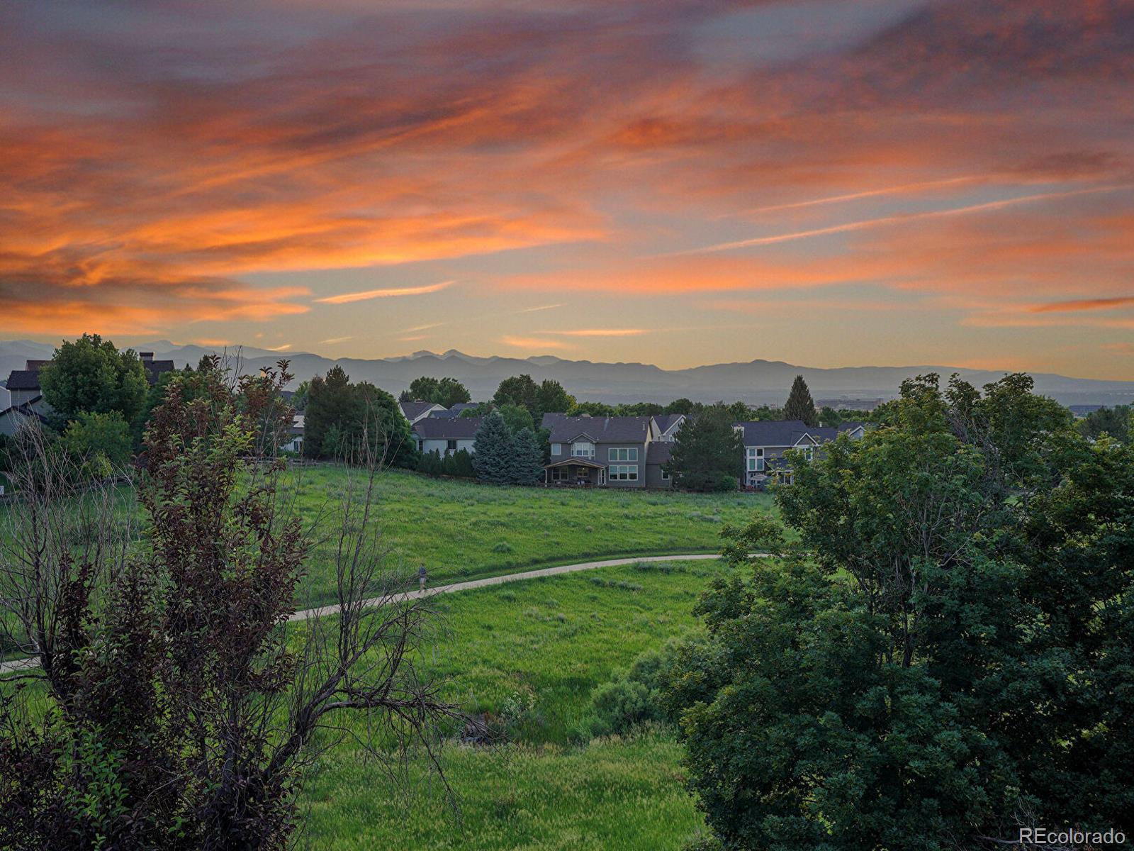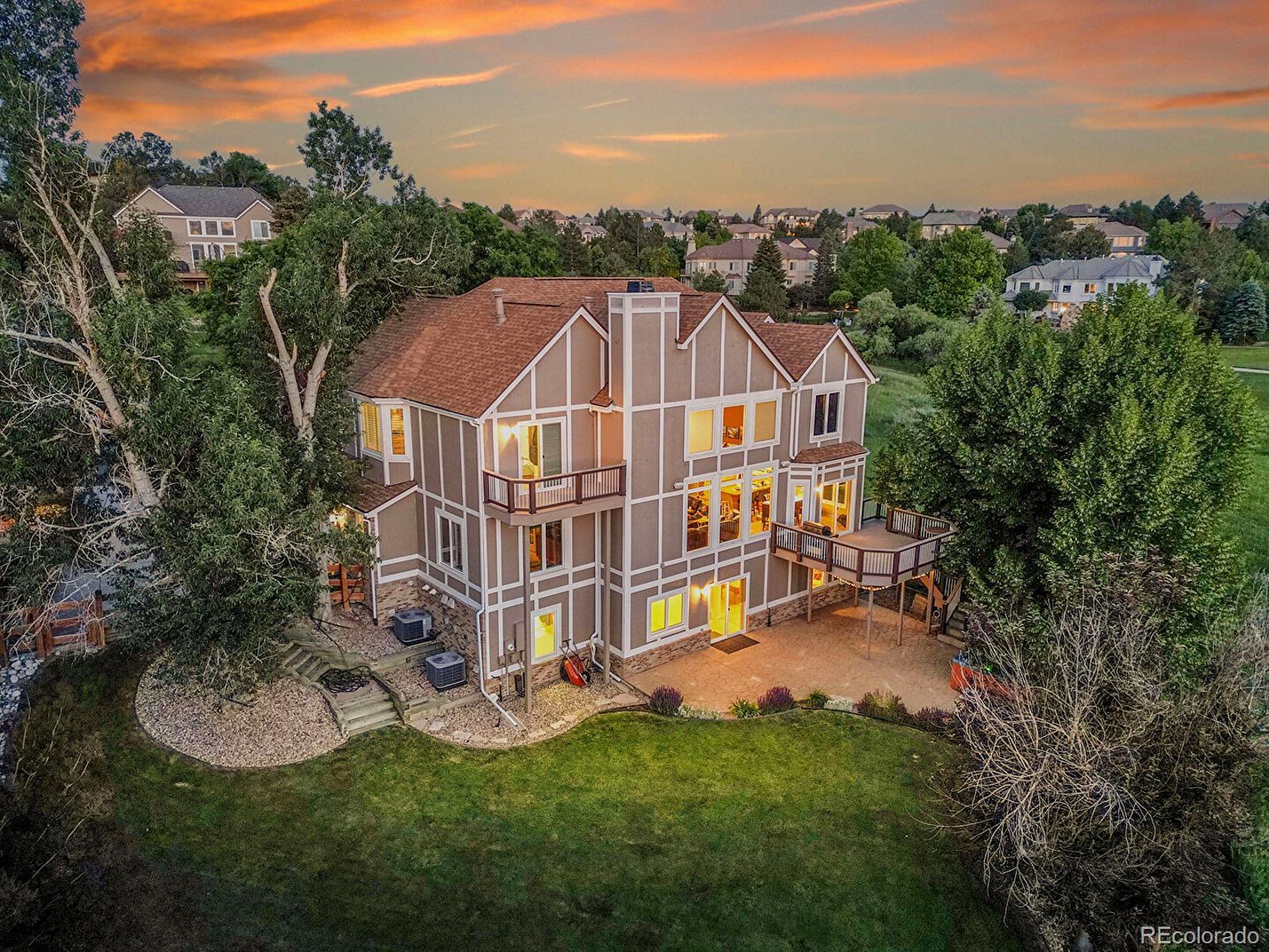 Opportunity awaits in Mansion Hills! Boasting an oversized lot with sweeping mountain views and a prime cul-de-sac location, this exceptional 5-bedroom, 5-bath home backing to open space is designed for elevated living. Enjoy a finished walkout basement, expansive mountain vistas around every corner, and a backyard made for relaxation. Inside, a dramatic foyer showcases soaring ceilings and an open layout that creates a welcoming atmosphere, flowing into the formal living and dining rooms with sunny bay windows. The kitchen offers a generous island, warm wood cabinetry, and extended peninsula that leads into open living spaces, while a casual eat-in dining area is marked by sliding glass doors leading to the back deck. Enjoy cozy weekends in front of the fireplace in the family room, framed by floor-to-ceiling greenbelt views. A nearby half bath, finished laundry, and dedicated office complete the main level. Upstairs, the primary suite features a stone-surround gas fireplace, seating area, and private balcony with stunning mountain views. The adjacent five-piece en suite boasts a soaking tub, dual-headed shower, and expansive walk-in closet. The second upper-level suite includes a bay window, en suite, and walk-in closet, while 2 additional bedrooms share a Jack-and-Jill bath. The finished walk-out basement offers flexibility for multigenerational living, featuring a private bedroom with a spacious walk-in closet, nearby ¾ bath, and a sprawling rec room with wet bar. The exemplary backyard is made for lively gatherings or unwinding under the stars, boasting an upper deck overlooking Kistler Trail, lower patio with hot tub, putting green and firepit area. Generous oversized 3-car garage. Enjoy access to miles of trails, Southridge Rec Center, Backcountry Wilderness Area. Located under 15 minutes to Park Meadows Mall and Chatfield State Park, with easy access to the foothills via C-470 for endless recreation.