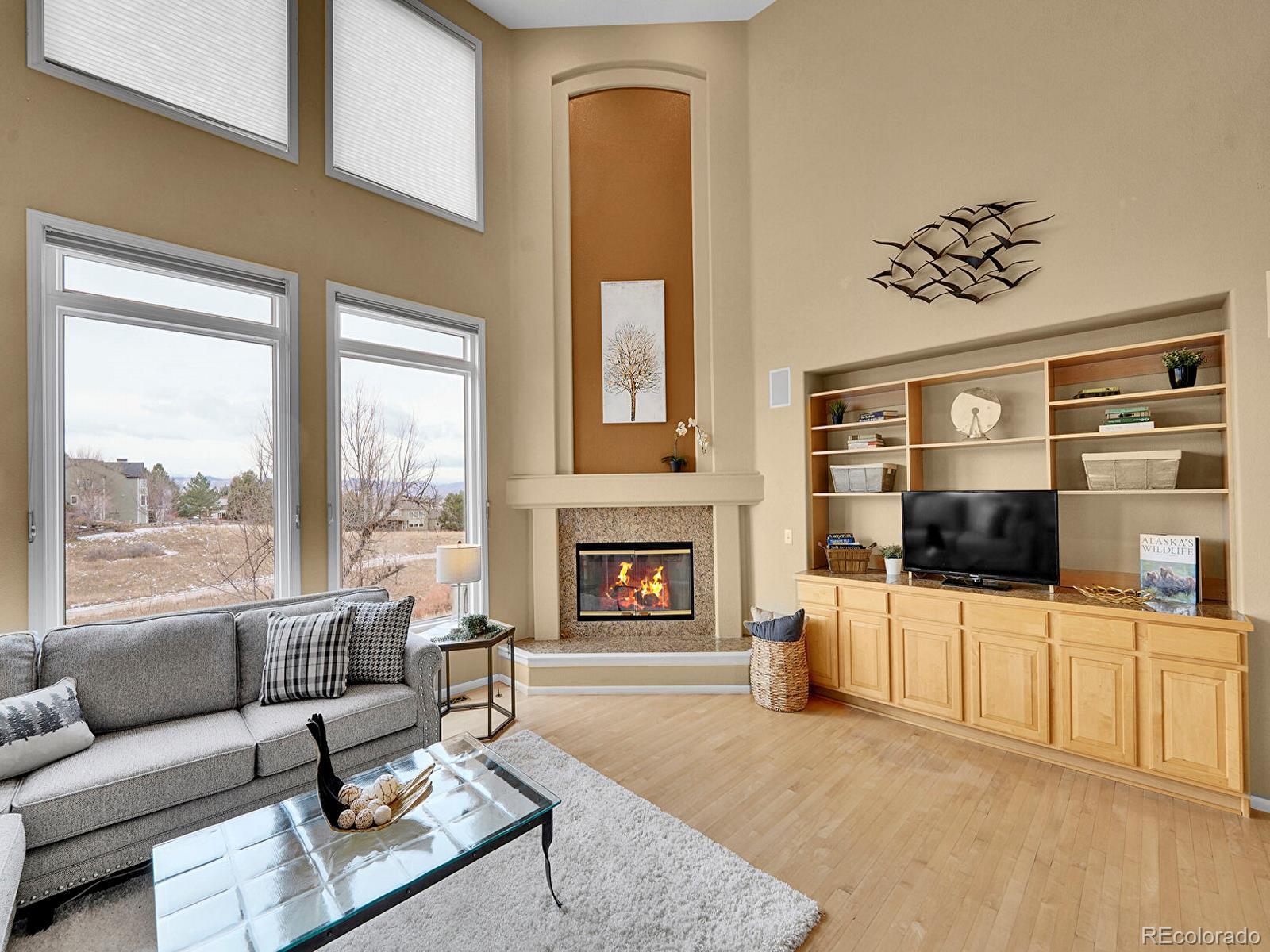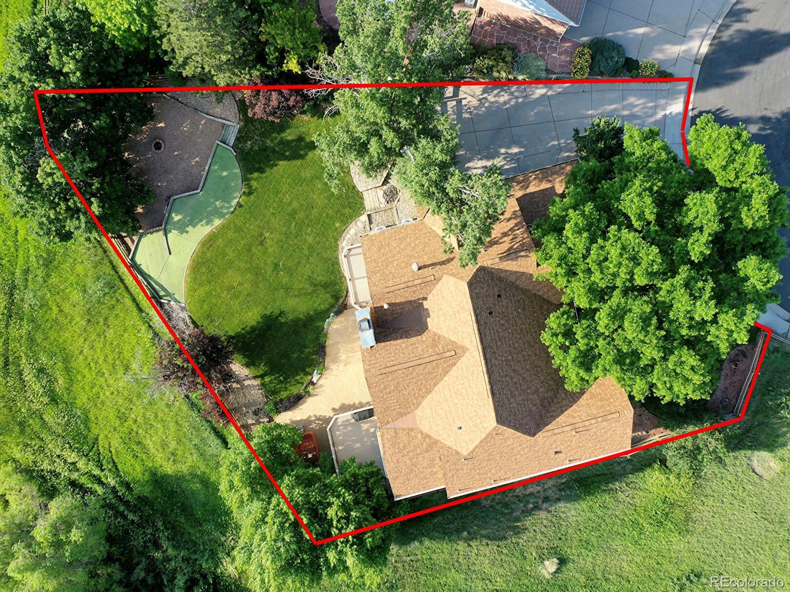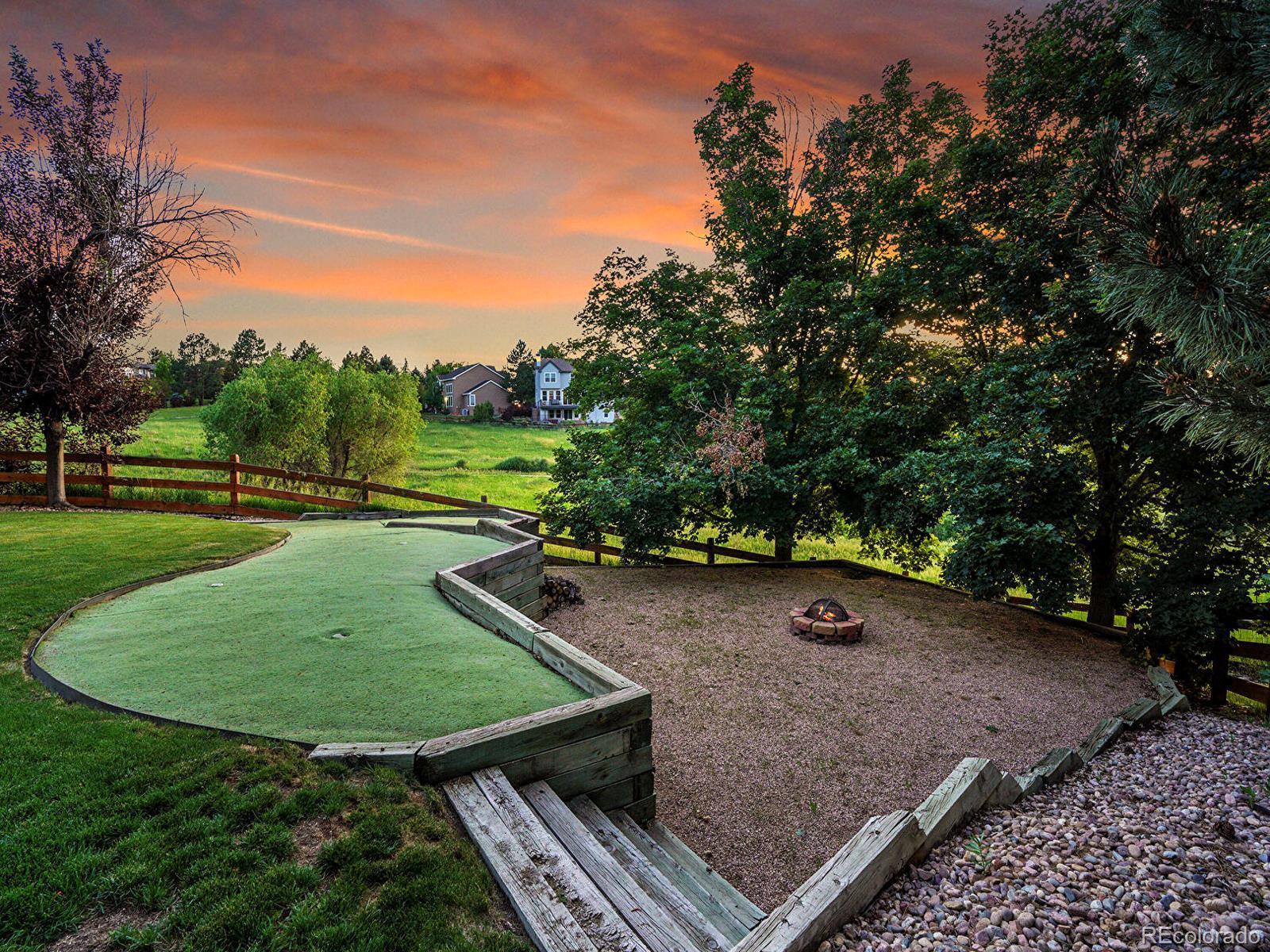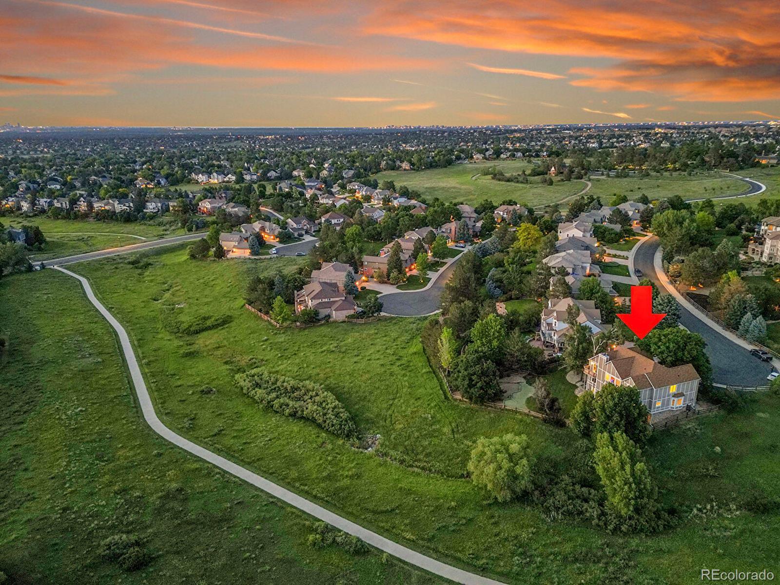 Opportunity awaits in Mansion Hills! Boasting an oversized lot with sweeping mountain views and a prime cul-de-sac location, this exceptional 5-bedroom, 5-bath home backing to open space is designed for elevated living. Enjoy a finished walkout basement, expansive mountain vistas around every corner, and a backyard made for relaxation. Inside, a dramatic foyer showcases soaring ceilings and an open layout that creates a welcoming atmosphere, flowing into the formal living and dining rooms with sunny bay windows. The kitchen offers a generous island, warm wood cabinetry, and extended peninsula that leads into open living spaces, while a casual eat-in dining area is marked by sliding glass doors leading to the back deck. Enjoy cozy weekends in front of the fireplace in the family room, framed by floor-to-ceiling greenbelt views. A nearby half bath, finished laundry, and dedicated office complete the main level. Upstairs, the primary suite features a stone-surround gas fireplace, seating area, and private balcony with stunning mountain views. The adjacent five-piece en suite boasts a soaking tub, dual-headed shower, and expansive walk-in closet. The second upper-level suite includes a bay window, en suite, and walk-in closet, while 2 additional bedrooms share a Jack-and-Jill bath. The finished walk-out basement offers flexibility for multigenerational living, featuring a private bedroom with a spacious walk-in closet, nearby ¾ bath, and a sprawling rec room with wet bar. The exemplary backyard is made for lively gatherings or unwinding under the stars, boasting an upper deck overlooking Kistler Trail, lower patio with hot tub, putting green and firepit area. Generous oversized 3-car garage. Enjoy access to miles of trails, Southridge Rec Center, Backcountry Wilderness Area. Located under 15 minutes to Park Meadows Mall and Chatfield State Park, with easy access to the foothills via C-470 for endless recreation.