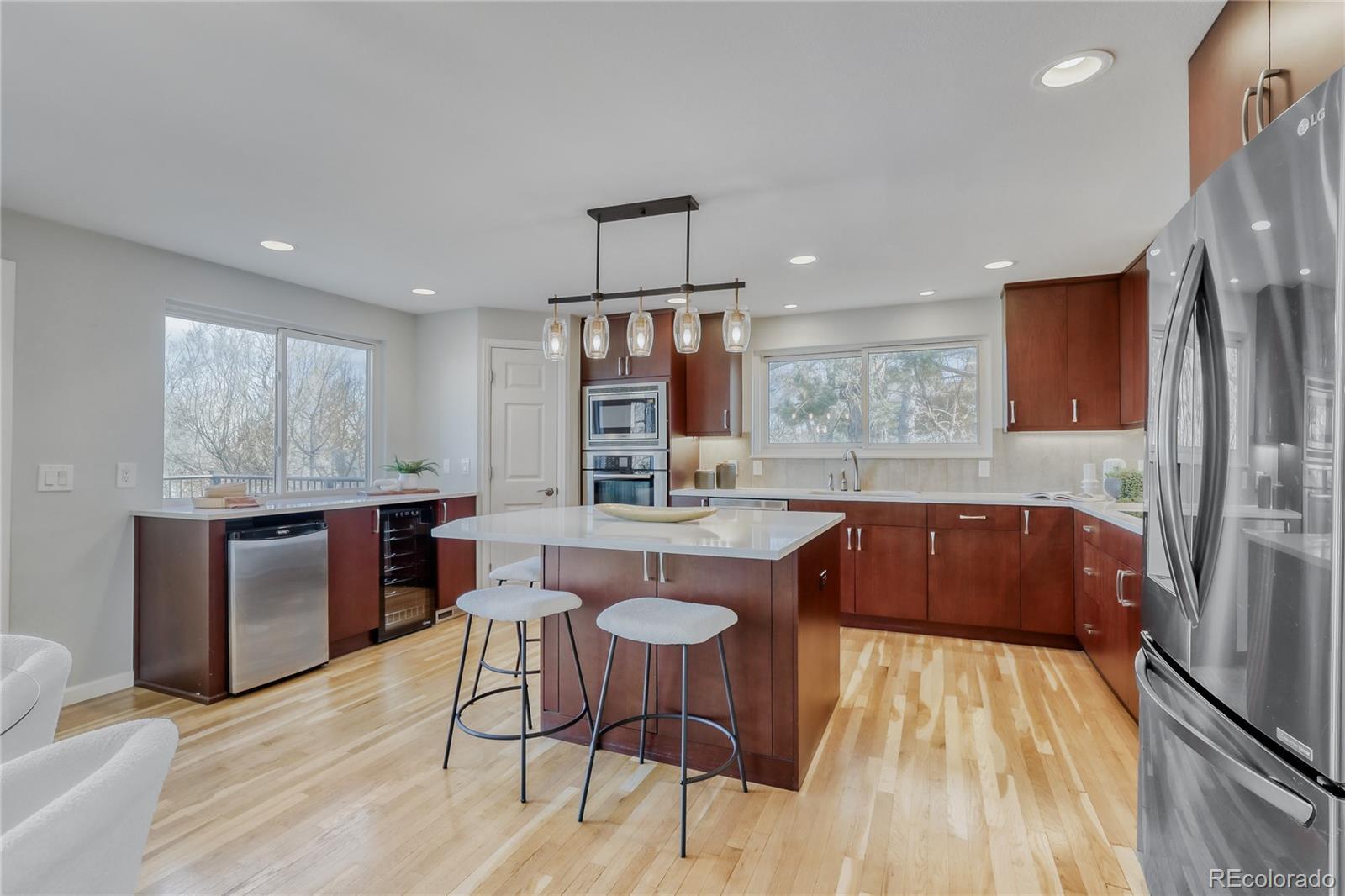 Welcome to this beautifully updated home in the heart of Arvada. Perfectly positioned backing to open space for privacy and scenic views, with an elevated deck to enjoy it all. Walkable to numerous parks with easy access to shopping, grocery stores, and Olde Town Arvada. Thoughtfully designed with multiple living areas, this home offers flexibility for everyday living, entertaining, and working from home. The main level features bright, open living spaces filled with natural light, complemented by tasteful updates throughout. The open kitchen, with high end appliances and spacious island, flows seamlessly into the dining and living areas, making it ideal for gatherings both large and small. Retreat to the spacious primary suite with its own private bath, while additional bedrooms provide comfort and versatility. The walkout basement expands your living space with an additional family room and bedroom perfect for guests or a private home office. Step outside to enjoy peaceful open-space views, ideal for relaxing evenings, morning coffee, or outdoor entertaining. This Arvada home combines modern updates, functional space, and a highly desirable neighborhood, for a rare opportunity to enjoy Colorado living at its best.