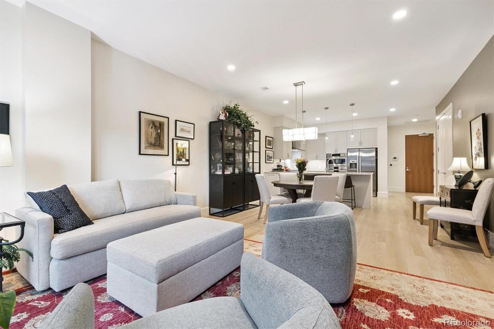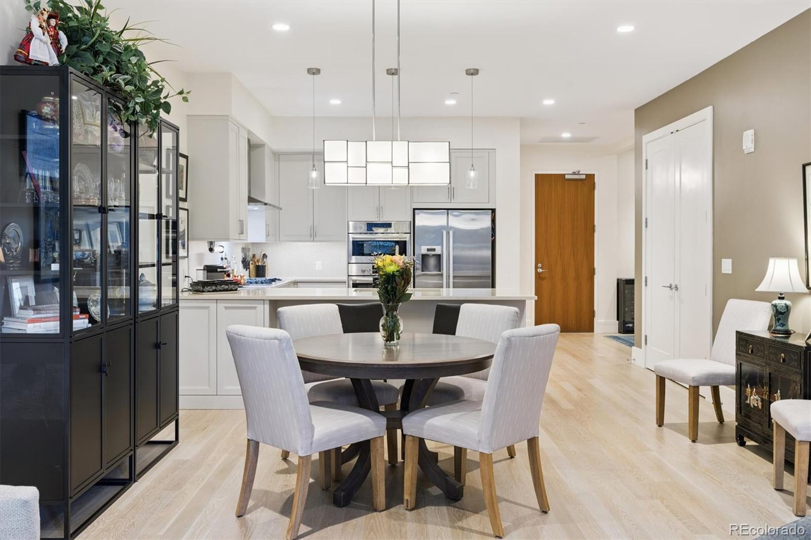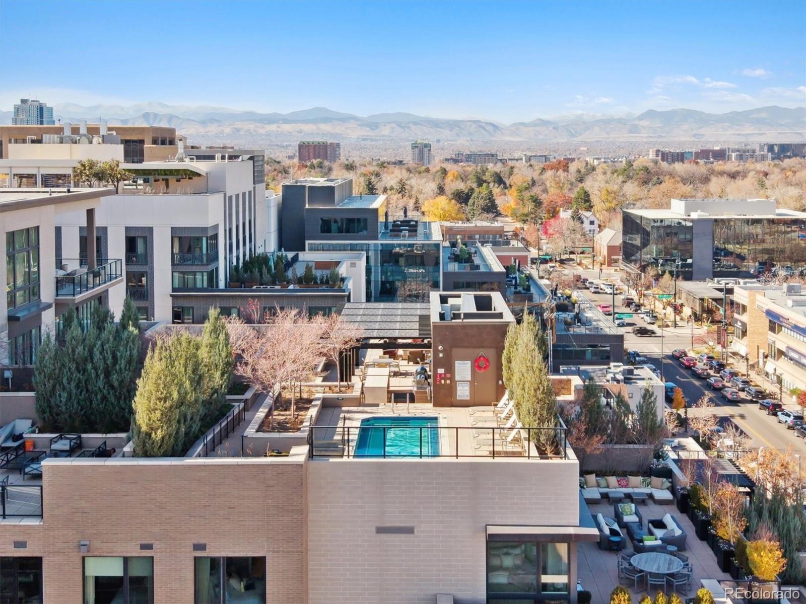 Unique opportunity to own a refined residence in the heart of Cherry Creek North, Denver’s most vibrant and prestigious neighborhood, combining timeless elegance, modern sophistication, and access to the city’s best dining, shopping, and cultural attractions. Inside, rich hardwood floors and luxury finishes create a warm yet contemporary atmosphere. Sunlight pours through expansive windows, enhancing the open-concept design and emphasizing the graceful flow between the gourmet kitchen, dining area, and living room. The kitchen is a true centerpiece, featuring quartz countertops, Bosch appliances, a 5-burner cooktop, microwave/convection oven, designer backsplash, and expansive peninsula for everyday living and entertaining. The living area transitions seamlessly to a balcony with a privacy screen, offering an outdoor retreat perfect for morning coffee. A flex-space provides versatility as an office, library, or guest quarters, while the primary suite serves as a sanctuary with ample room for a king-sized bed, a spa-inspired bath with soaking tub, glass-enclosed shower with bench, and expansive walk-in closet. A stylish 3/4 bath is ideal for guests and in unit laundry add convenience. Residents enjoy luxury amenities, highlighted by a magnificent rooftop terrace with spectacular views of Downtown Denver and Mountains, plunge pool, intimate fire pit lounges, gas grills, a well-equipped fitness center, underground parking w/EV charging, bike storage, and onsite management. Embrace the vibrant energy of Cherry Creek North, where tree-lined streets, cafes, and locally owned boutiques create a true sense of community. Special events such as the Cherry Creek Arts Festival, Summer Concert Series, and Holiday Market are right outside your door. With its blend of sophistication, comfort, and convenience, this residence represents low-maintenance luxury living at its finest. Schedule a showing today to experience all that this exceptional home and neighborhood have to offer.