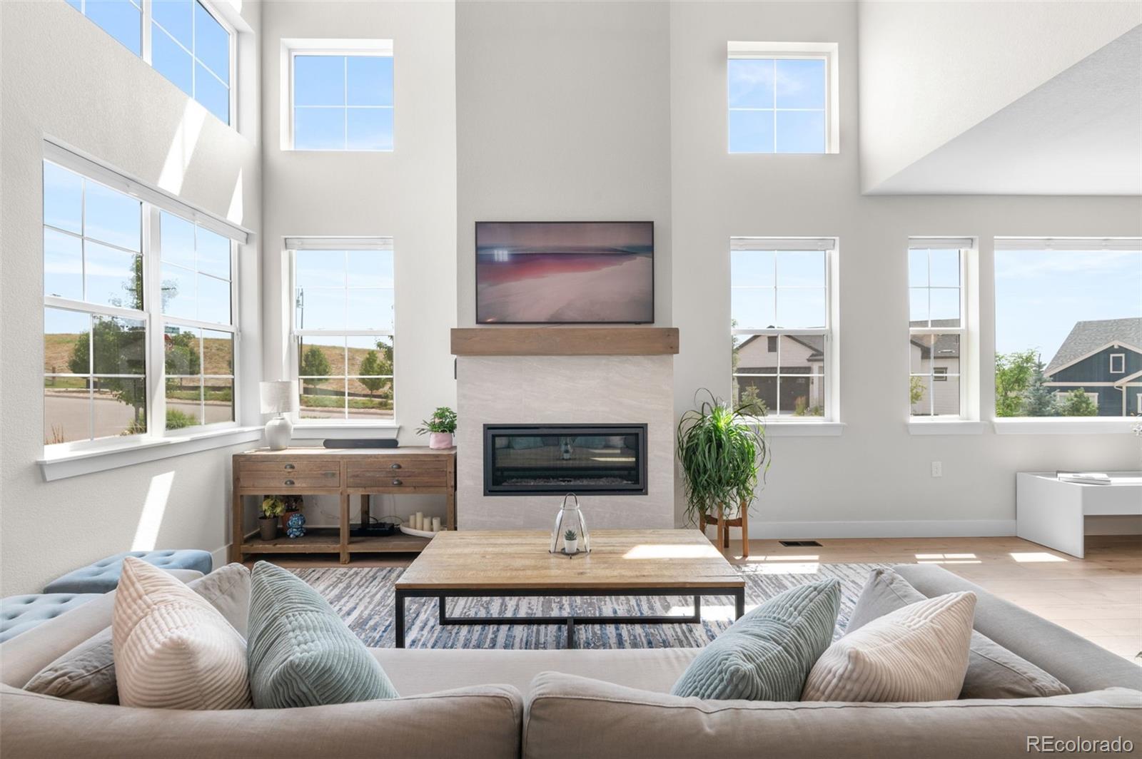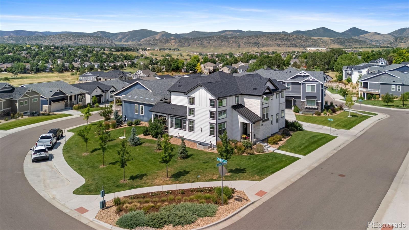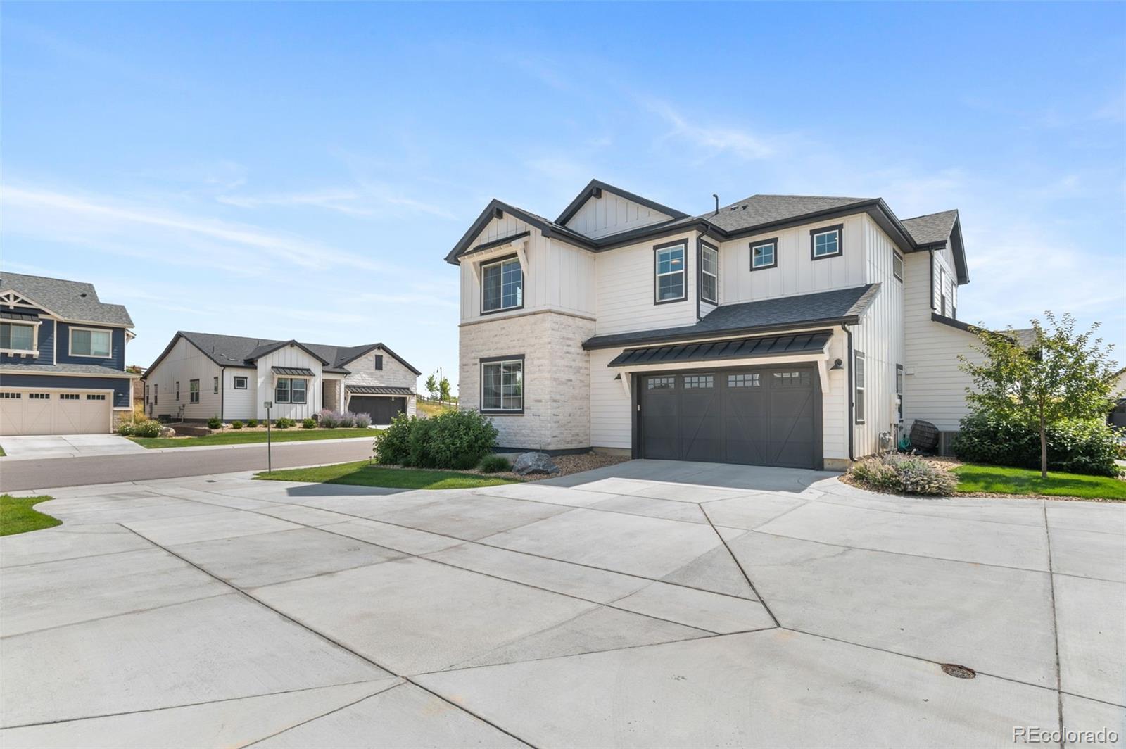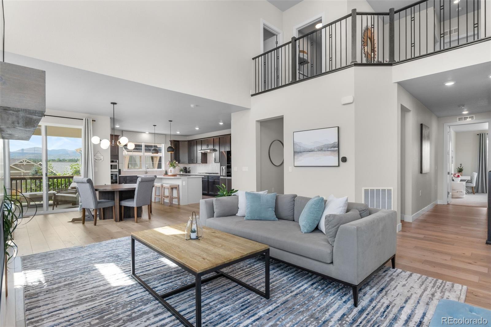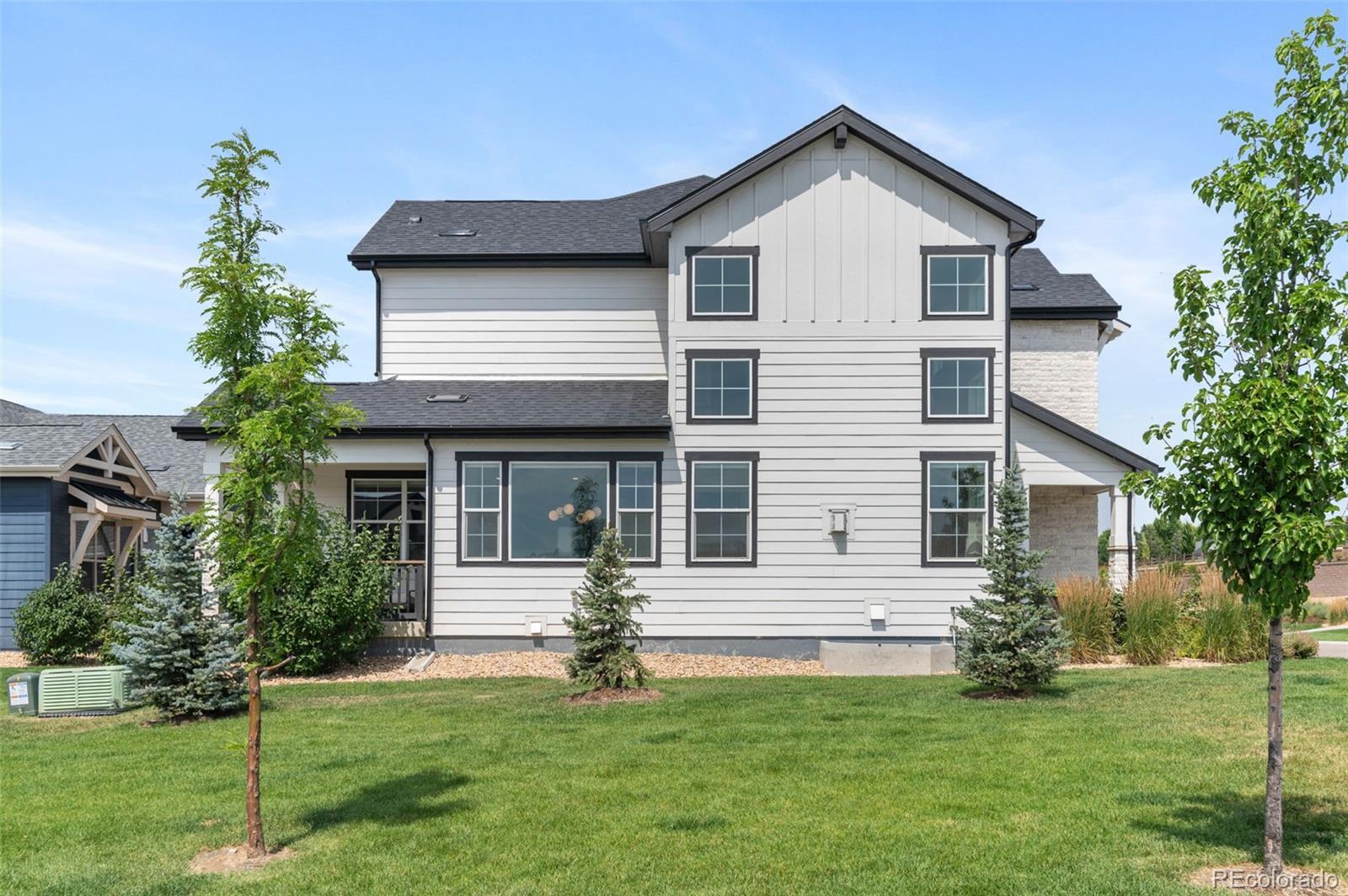 Modern Farmhouse with designer upgrades in Silver Leaf blends contemporary design with low-maintenance living. As the former model home, this property showcases premium upgrades and thoughtful finishes throughout. From the striking black-and-white elevation to the double-height ceilings and abundant natural light, every detail was crafted to impress. The floor plan may be the perfect 2-story plan. A main-floor bedroom with a walk-in closet offers convenience and flexibility, whether for guests, a home office, or generational living. Spacious Great Room with vaulted ceilings and a large Chandelier. Open-concept main living area with the kitchen open to the dining and living spaces. The heart of the home is the open-concept kitchen, complete with 42” upgraded cabinets, Quartz 3cm counters, enhanced tile, a ship-lap wrapped light grey island, and a walk-in pantry. The 2nd floor features a catwalk open to the vaulted Great Room, separating the spacious primary suite from two other bedrooms with a separate full bath. The primary suite shows a designer accent wall, an en-suite bathroom, and a spacious walk-in closet. The finished basement level adds even more versatility with 2 bedrooms, a full bath, and expansive recreation room—perfect for hosting family and friends. The 2nd bedroom could be used as a flex space, a dedicated office, or workout room. Enjoy seamless indoor-outdoor living with a covered patio. Silver Leaf is a Littleton gem. The community concept features modern, active living with low-maintenance yards and open lawn spaces. Lawn care and snow removal are included. Situated just minutes from Foothills Recreation Center, scenic trails, bike paths, and downtown Littleton, this home offers the ideal blend of low-maintenance living and vibrant community access. Don’t miss your chance to own this exceptional, move-in-ready home in one of the area’s most desirable neighborhoods.