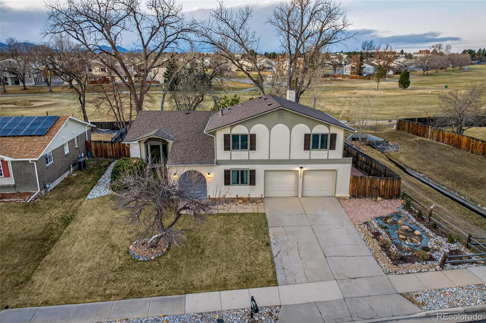 This well-loved Arvada home is ready to welcome its next chapter and has so much to offer! Enjoy a unique setting with a golf course backdrop and convenient rear gate access that creates an open, spacious feel to the outdoor area. The front steps lead to an inviting entry that sets the tone for what’s inside. The foyer offers an easy, natural flow—straight ahead to the kitchen or left into the sun-filled living room. Just off the kitchen, a covered patio provides the perfect spot for outdoor dining and entertaining year-round. A few steps down, the cozy family room features a striking wood-burning fireplace with dramatic stone surround. This level also includes a bedroom and bath—ideal for guests or flexible use—along with access to the laundry room and garage. Upstairs, you’ll find a generously sized primary bedroom with its own bathroom, plus two additional bedrooms and a ¾ bath. The fully fenced backyard offers plenty of room to personalize, complete with two raised garden planters, a shed, and smart "Rachio" controlled sprinklers. Ideally located near Olde Town Arvada, the Arvada Center for the Arts & Humanities, Apex Center, and Arvada Skatepark, this home offers comfort, functionality, and a location that’s hard to beat. Open Houses Jan 17th and 18th