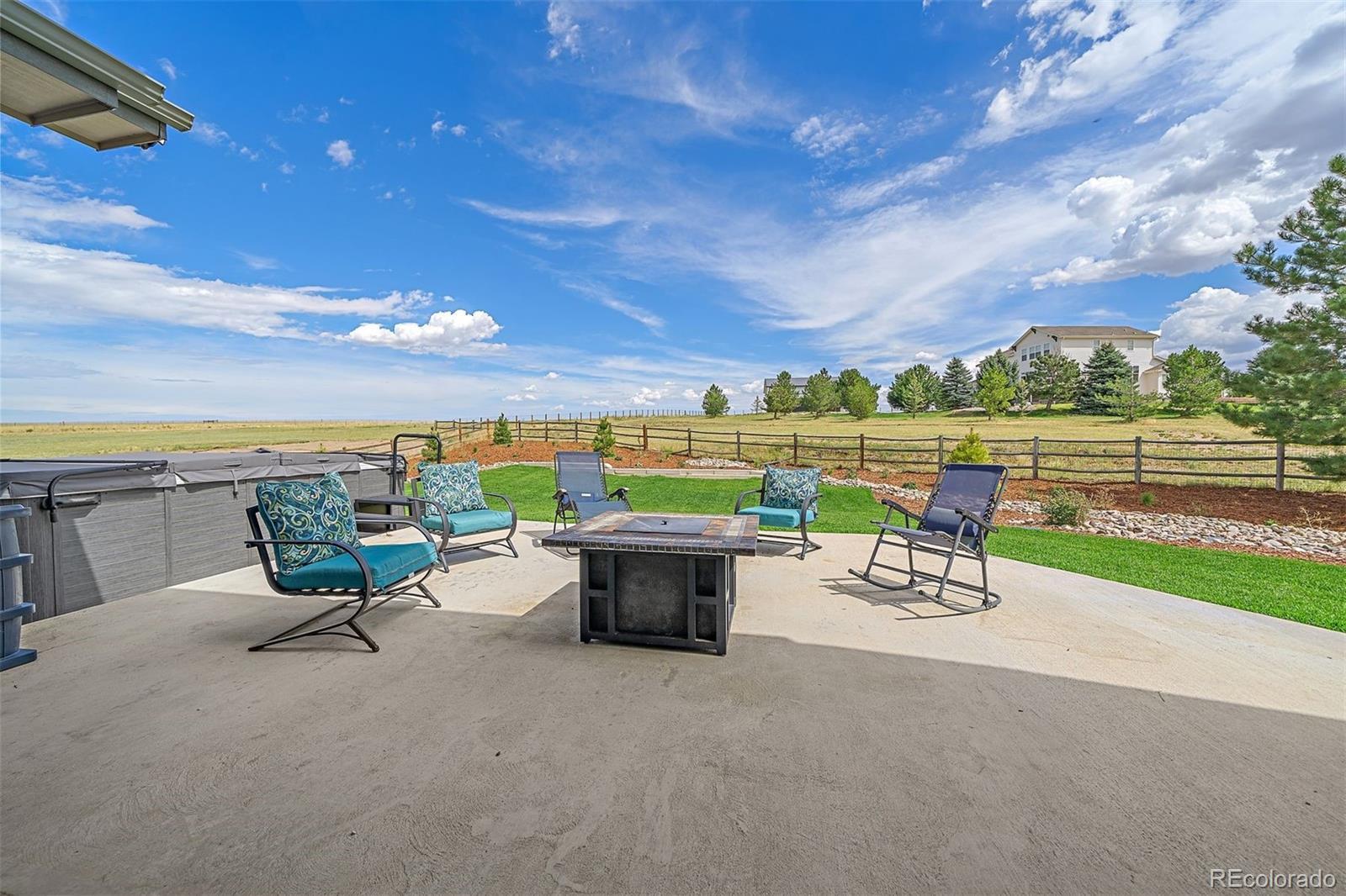 This captivating ranch-style home is located in the desirable Elkhorn Ranch community! This home sits on over 5 beautiful acres set against an amazing big-sky backdrop! The foyer, hallway & kitchen boast hardwood floors that extend to the great room. The fabulous kitchen has a 5-burner gas range located in a functional, grand center island with seating, double ovens, microwave, refrigerator, pantry, coffee bar & planning desk. The charming breakfast nook overlooks the newly landscaped yard & grants access to a large patio with a fire pit & the swim-spa hot tub. Beautiful granite counter tops accent this chef’s delight! This well-planned kitchen is open to the great room with a lovely gas fireplace & huge windows that bring the peaceful environment right inside! The large dining room with indirect ceiling lighting sets the stage for sharing food & laughs with friends & loved ones. The primary suite is privately tucked away and consists of a soaking tub, marble vanity with 2 sinks, the shower & a large walk-in closet. This wonderful suite also grants access to the large patio. There are 2 additional bedrooms, one with access to a full bath, a powder bath, the library/study (could be 5th bedroom) & laundry room on the main level. Downstairs you’ll discover a tastefully finished recreation/game room, family room, complete with a dry bar and another bedroom with access to a full bath! 2 separate storage areas are located in the basement as well. The peaceful Elkhorn Ranch community has over 380 acres of open space! Convenient located with access to downtown Parker (15 minutes) where you’ll find restaurants, golf courses, medical services & shopping as well as top-rated Douglas County schools. A 4-car, heated tandem garage, a brick exterior, a full house natural gas 22kw generator along with a heated dog house (with underground water bowl) place the final polish on this masterpiece!
