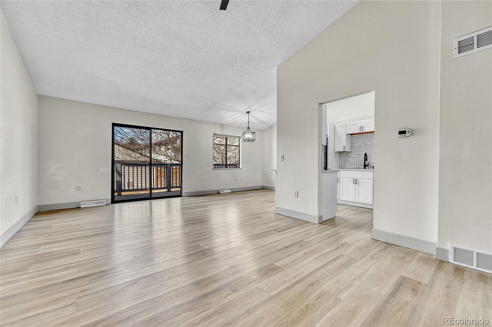 Beautifully updated townhome featuring 3 Bedrooms and 2 Bathrooms located in the Cherry Creek School District. Updated kitchen with stainless appliances, Quartz countertops, newer cabinets, and luxury vinyl flooring throughout. Spacious living room and dining/breakfast area upstairs with vaulted ceilings and great natural light. Additional great room in lower level with wood burning fireplace. Great end unit overlooking grassy area with private deck. Newer washer & dryer included! Enjoy the private courtyard patio and deck and the convenience of a 2 car garage! HOA covers the Roof and Exterior Maintenance as well! Across the parking lot is the gated community pool. Close to Schools, Shopping, and transportation! With the new King Soopers grocery store and shopping area within a short walk as well as RTD 8 Mile Station! Welcome to your new home!