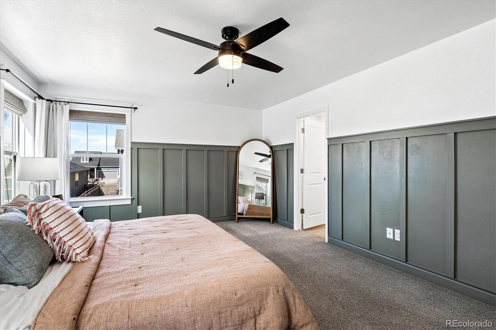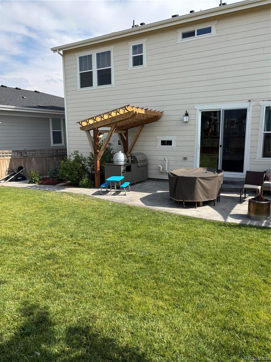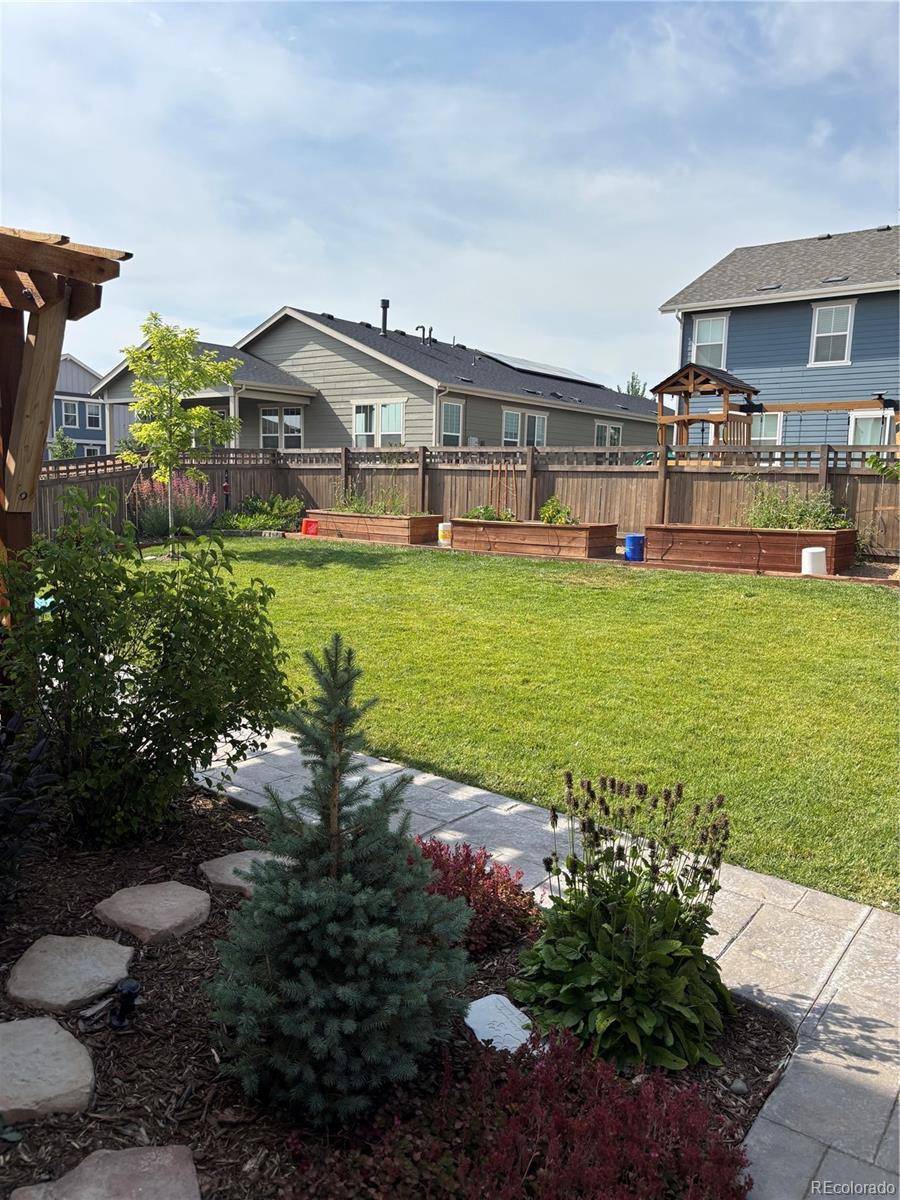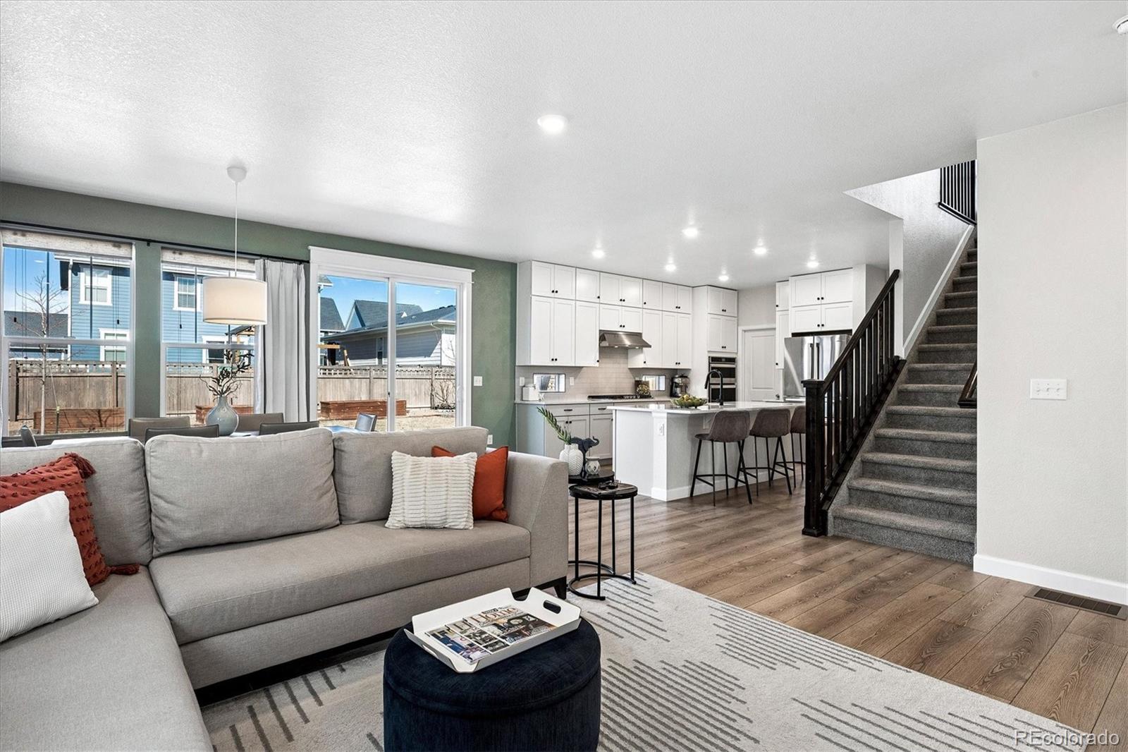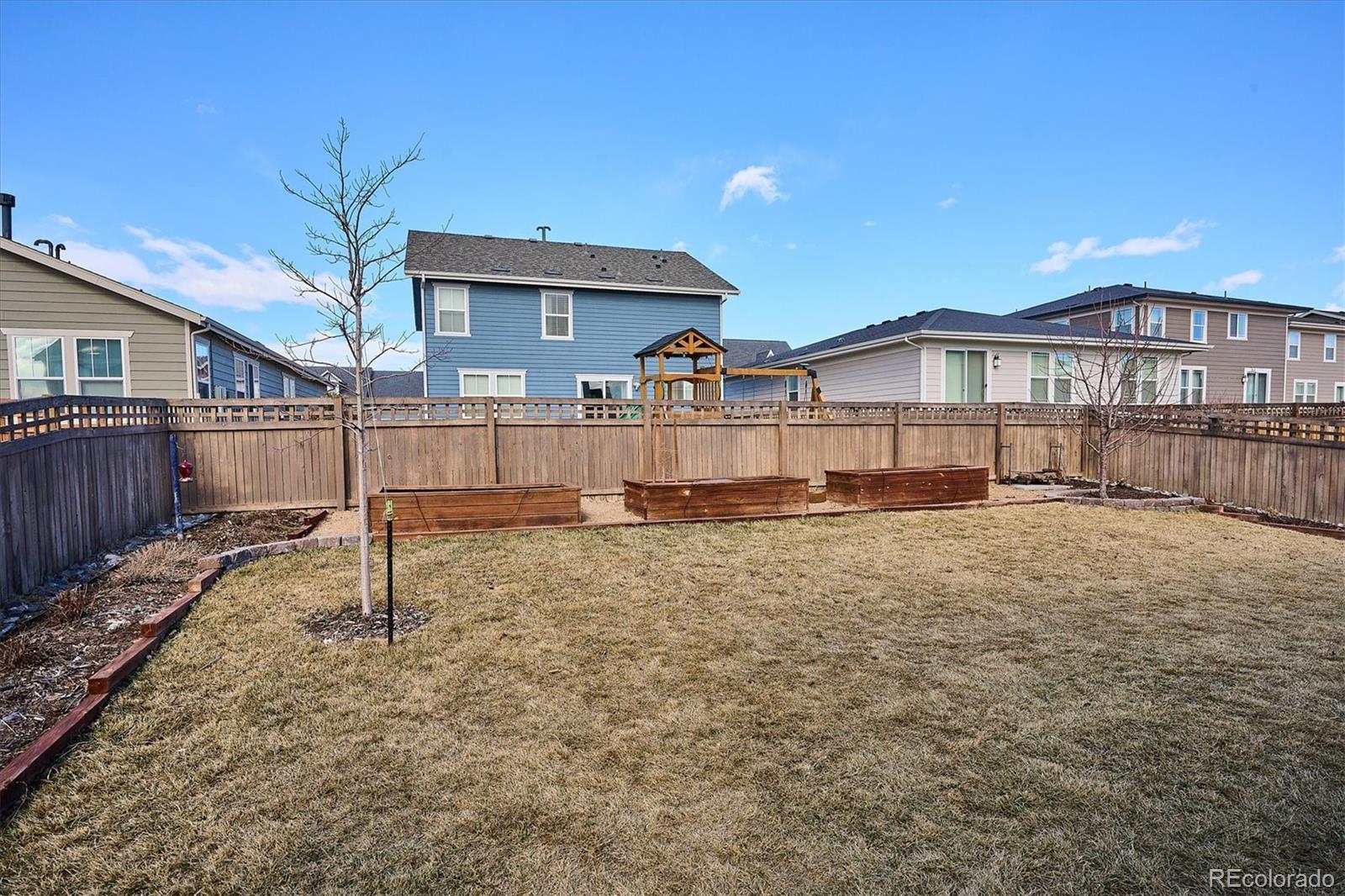 Welcome to this beautifully designed south-facing home in the vibrant Painted Prairie community, where modern style and thoughtful details come together splendidly. With 3 bedrooms, a spacious loft, & a private enclosed main-floor office, this home offers flexibility for the way you live, work, & gather. From the moment you step inside, the warmth of hardwood floors and the open, airy layout invite you in. The bright great room flows seamlessly into the kitchen, creating a natural gathering space filled with light & connection, perfect for quiet mornings, lively dinners, or entertaining. The custom kitchen serves as the heart of the home, featuring quartz countertops, a chic tile backsplash, extended cabinetry, & a generous walk-in pantry designed for both beauty and function. Upstairs, the loft offers a additional living space ideal for relaxing, working, or play, complete with custom cabinetry for added storage & a gorgeous wood detailed wall. Down the hall you’ll find two sunny secondary bedrooms, a full bath, and the convenient 2nd floor laundry room that adds ease to daily routines. The primary suite is a true retreat, highlighted by custom woodwork paneling, a spa-inspired bathroom, and a beautifully finished custom closet designed to simplify & elevate. The full unfinished basement with 9-foot ceilings presents endless possibilities. Outdoor living is just as inviting, with full professional landscaping, raised garden beds w/irrigation system, stamped concrete patio & wraparound walkway, pergola, sun shade, TV & outdoor kitchen complete with smoker and grill, ideal for enjoying Colorado evenings and gathering under the open sky. A new roof installed in 2024 and owned solar panels (to be paid off with an acceptable offer) provide both peace of mind and long-term efficiency. Addt'l features include fiber internet wiring, scuff-defense paint, custom window coverings throughout, ceiling fans in all bedrooms, keyless entry, added garage storage & bike hangars.