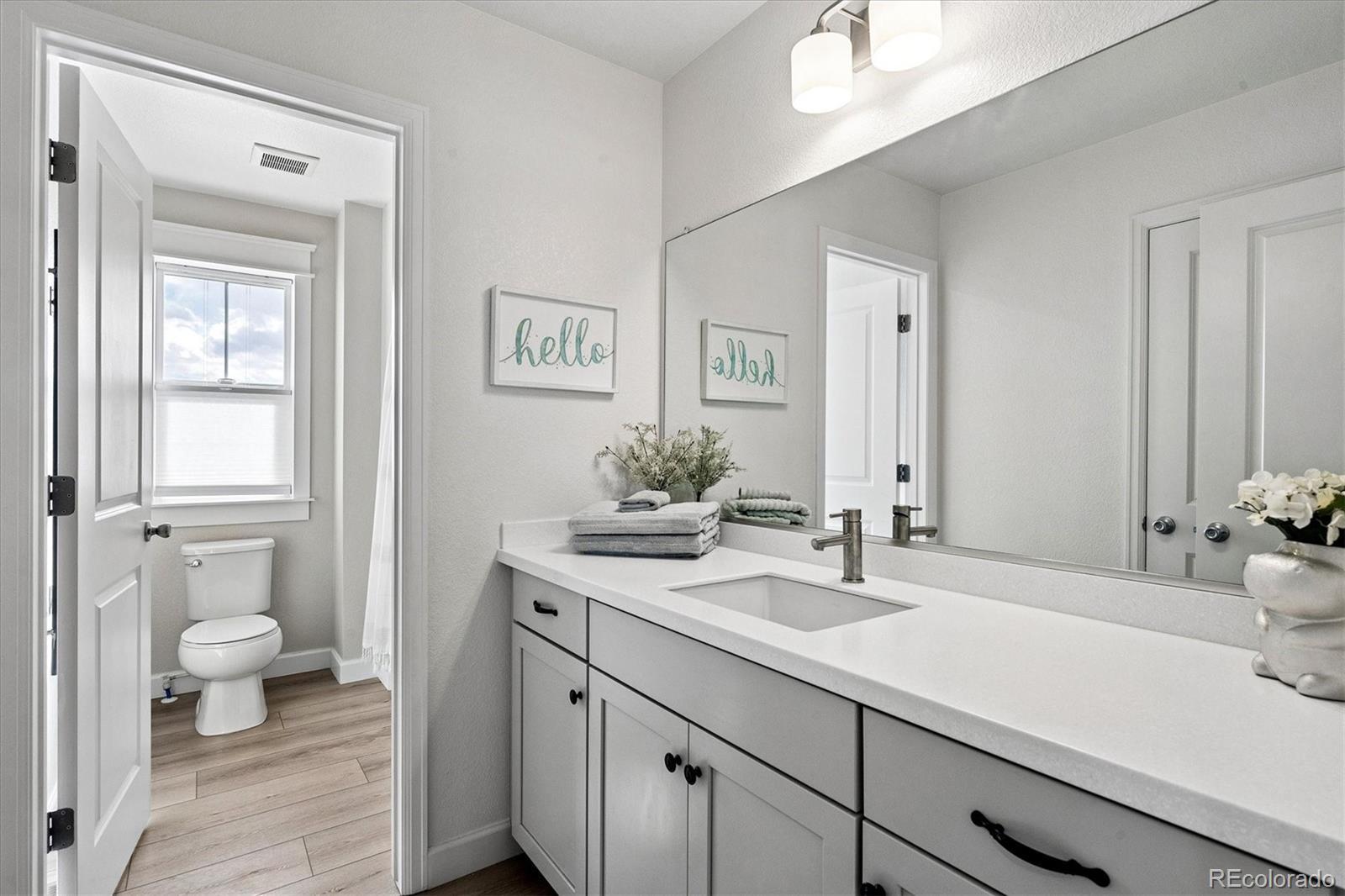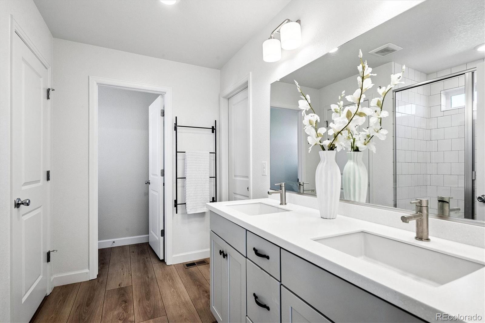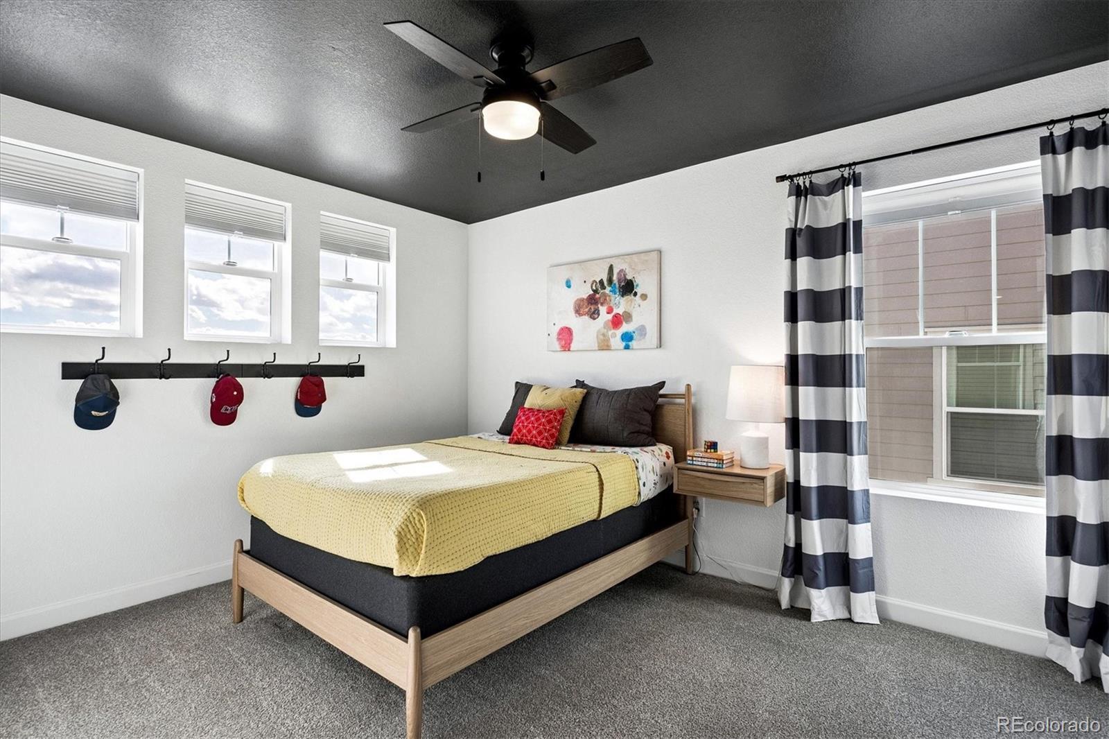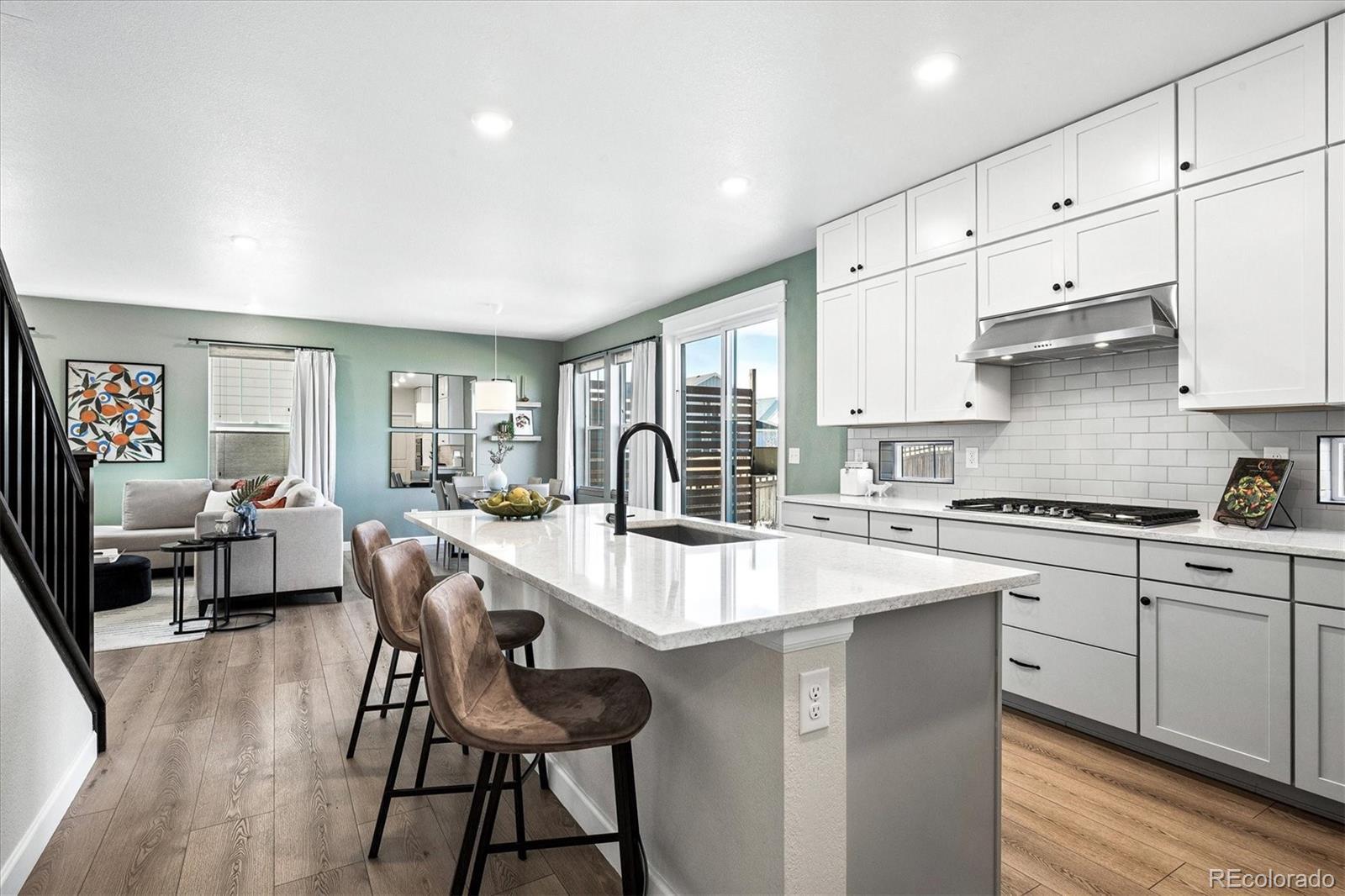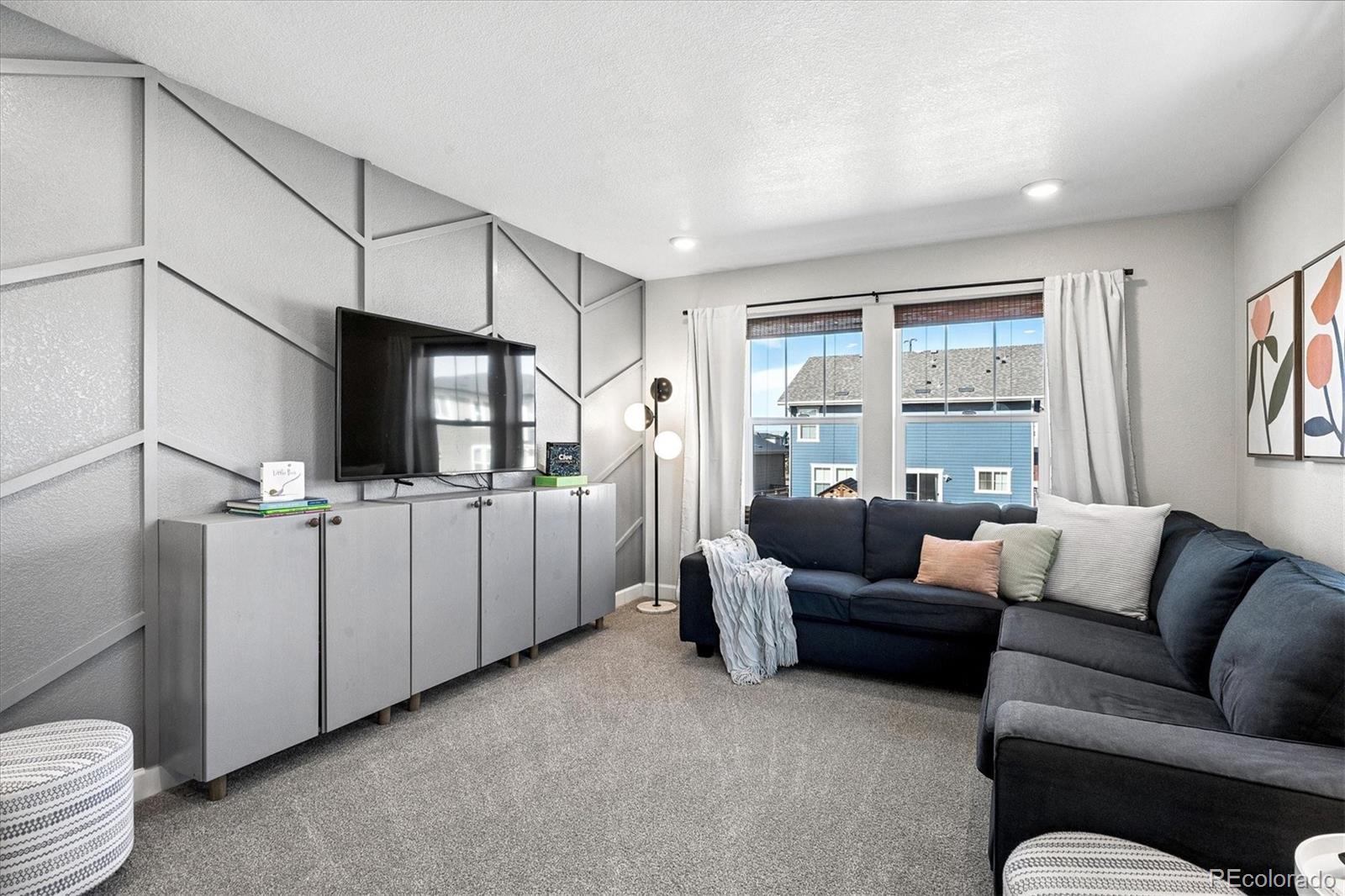 Welcome to this beautifully designed south-facing home in the vibrant Painted Prairie community, where modern style and thoughtful details come together splendidly. With 3 bedrooms, a spacious loft, & a private enclosed main-floor office, this home offers flexibility for the way you live, work, & gather. From the moment you step inside, the warmth of hardwood floors and the open, airy layout invite you in. The bright great room flows seamlessly into the kitchen, creating a natural gathering space filled with light & connection, perfect for quiet mornings, lively dinners, or entertaining. The custom kitchen serves as the heart of the home, featuring quartz countertops, a chic tile backsplash, extended cabinetry, & a generous walk-in pantry designed for both beauty and function. Upstairs, the loft offers a additional living space ideal for relaxing, working, or play, complete with custom cabinetry for added storage & a gorgeous wood detailed wall. Down the hall you’ll find two sunny secondary bedrooms, a full bath, and the convenient 2nd floor laundry room that adds ease to daily routines. The primary suite is a true retreat, highlighted by custom woodwork paneling, a spa-inspired bathroom, and a beautifully finished custom closet designed to simplify & elevate. The full unfinished basement with 9-foot ceilings presents endless possibilities. Outdoor living is just as inviting, with full professional landscaping, raised garden beds w/irrigation system, stamped concrete patio & wraparound walkway, pergola, sun shade, TV & outdoor kitchen complete with smoker and grill, ideal for enjoying Colorado evenings and gathering under the open sky. A new roof installed in 2024 and owned solar panels (to be paid off with an acceptable offer) provide both peace of mind and long-term efficiency. Addt'l features include fiber internet wiring, scuff-defense paint, custom window coverings throughout, ceiling fans in all bedrooms, keyless entry, added garage storage & bike hangars.