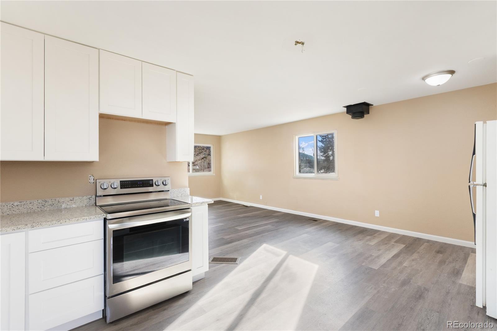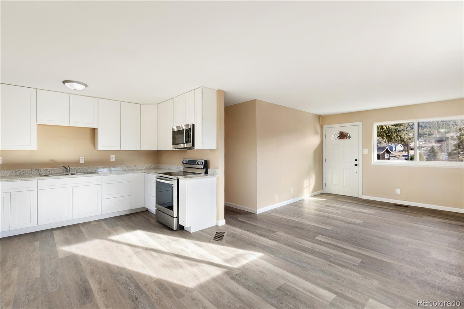 Convenient location home offers in town living, large backyard, and has been updated and renovated with modern contemporary inside style. The kitchen features granite counter-tops that is open to the dining and living room. Plenty of room for parking, and the there is a 30amp hook-up for an RV. Florissant Fossil Beds National Monument, Dome Rock State Park, Mueller State Park, Rampart Reservoir, and National Forest are all within a 30-minute drive for your weekend adventures. Fishing at 11 Mile Reservoir, Spinney, and the "Dream Stream" are all within a 45-minute drive. Skiing at Breckenridge is just under 2 hrs. away. Welcome to your small mountain town in Woodland Park, CO.... "The city above the clouds"!