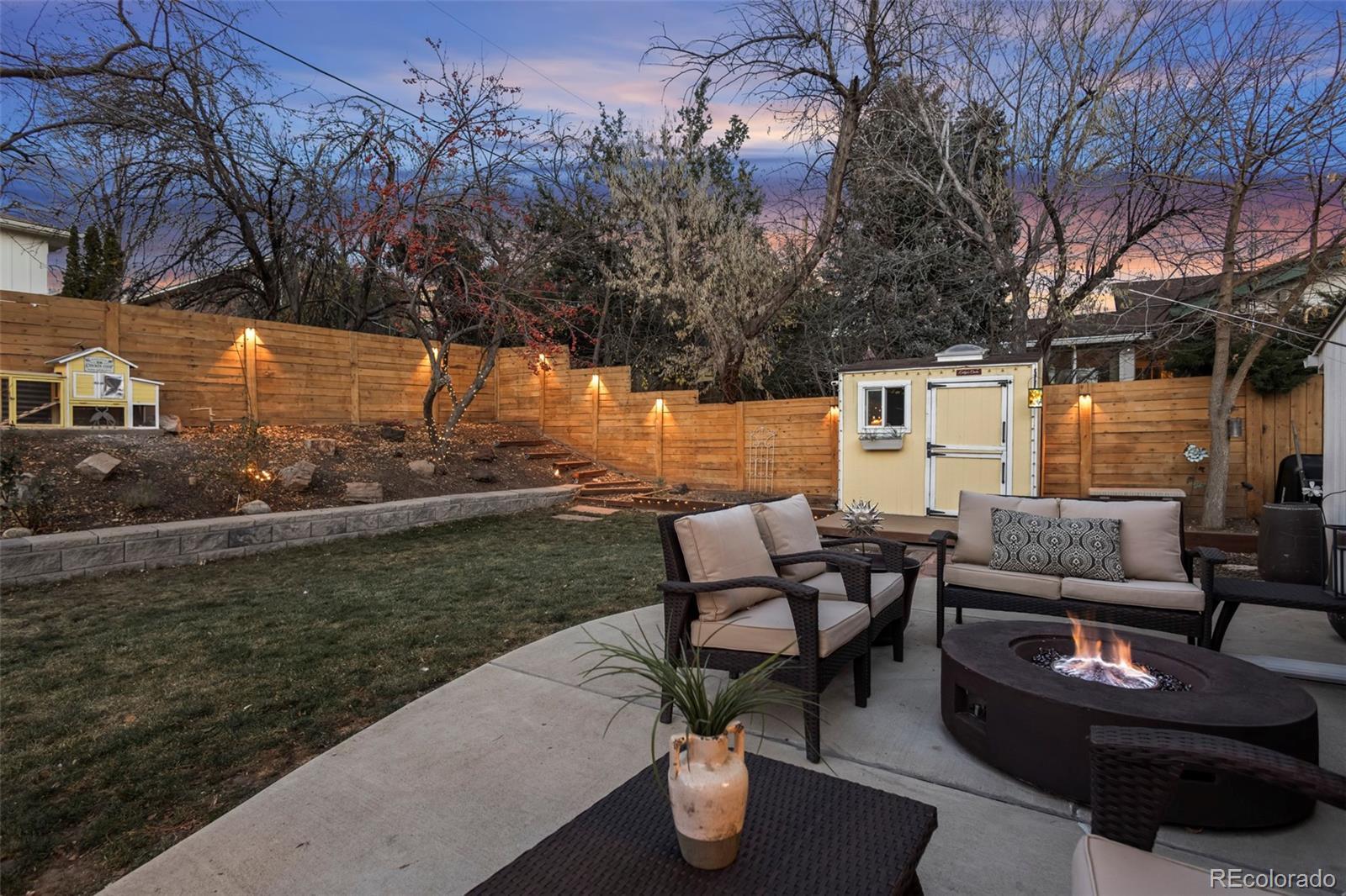 Don't miss this one - a classic brick ranch nestled on a large 9,400 sq ft lot, in one of Arvada's most sought after neighborhoods. This is a rare find, perfectly situated close to the vibrant Old Town Arvada, the Apex Rec Ctr., two Golf Courses and the scenic Ralston Creek Trail. *DONT MISS THE DRONE VIDEO TO EXPERIENCE THIS PROPERTY* This community offers suburban tranquility and city convenience. Inside you'll discover an open floor plan bathed in natural light, featuring upgraded LVP flooring/hardwoods, updated paint, newer millwork and fixtures. The heart of the home offers a remodeled kitchen, showcasing high-end J&K Cabinetry/quartz counters/mosaic backsplash and breakfast bar w/exotic granite. Enjoy cooking w/newer appliances and having smart storage solutions, like a pantry closet w/pull-out shelves, spice cabinet and an extended Lazy Susan. The living spaces offer a cozy dining area anchored by a gas log fireplace, spacious sun filled Great Room and a lower level TV/Family Room. Unique design touches offered - reclaimed barnwood end caps and rustic corrugated metal trim. Flexible living spaces, Gym, Office, Bedrooms and an Owner's Retreat w/remodeled ensuite bath, plus an expanded walk-in closet/built-in vanity addition. A finished basement adds significant space w/a full bathroom, gym/in-law suite, laundry and three non-conforming bedrooms. The outdoor entertainer will appreciate the amazing backyard oasis with many custom details. Designed for effortless Colorado entertaining w/an oversized covered patio, extended flatwork for more patio space, stone retaining walls and beautiful new flagstone patio. Dual firepit setup: gas line plumbed for the firepit and BBQ. There's a stone-surround wood-burning firepit for evening enjoyment. under the stars. The property offers a 2 car garage, 2 sheds, fenced yard, RV Parking and an extended driveway for more parking. Ideally situated in the quiet suburbs, with mature trees, minutes to Golden, Boulder & Olde Town.