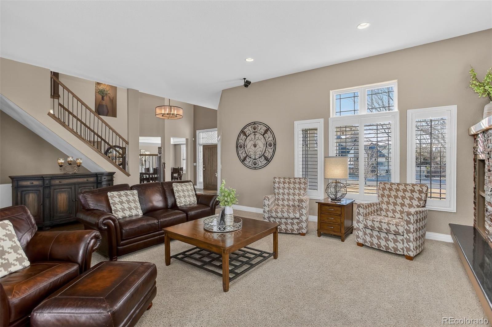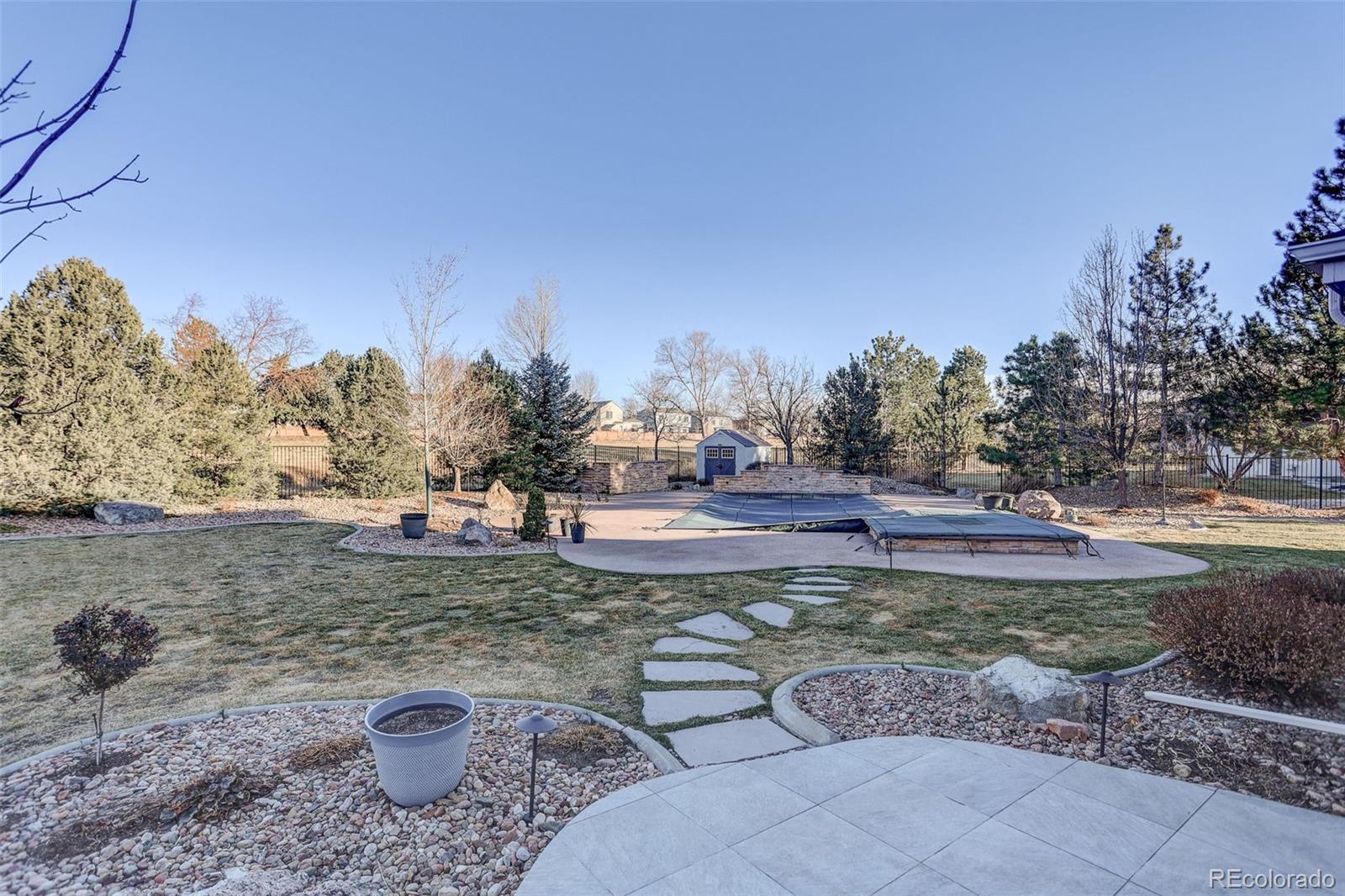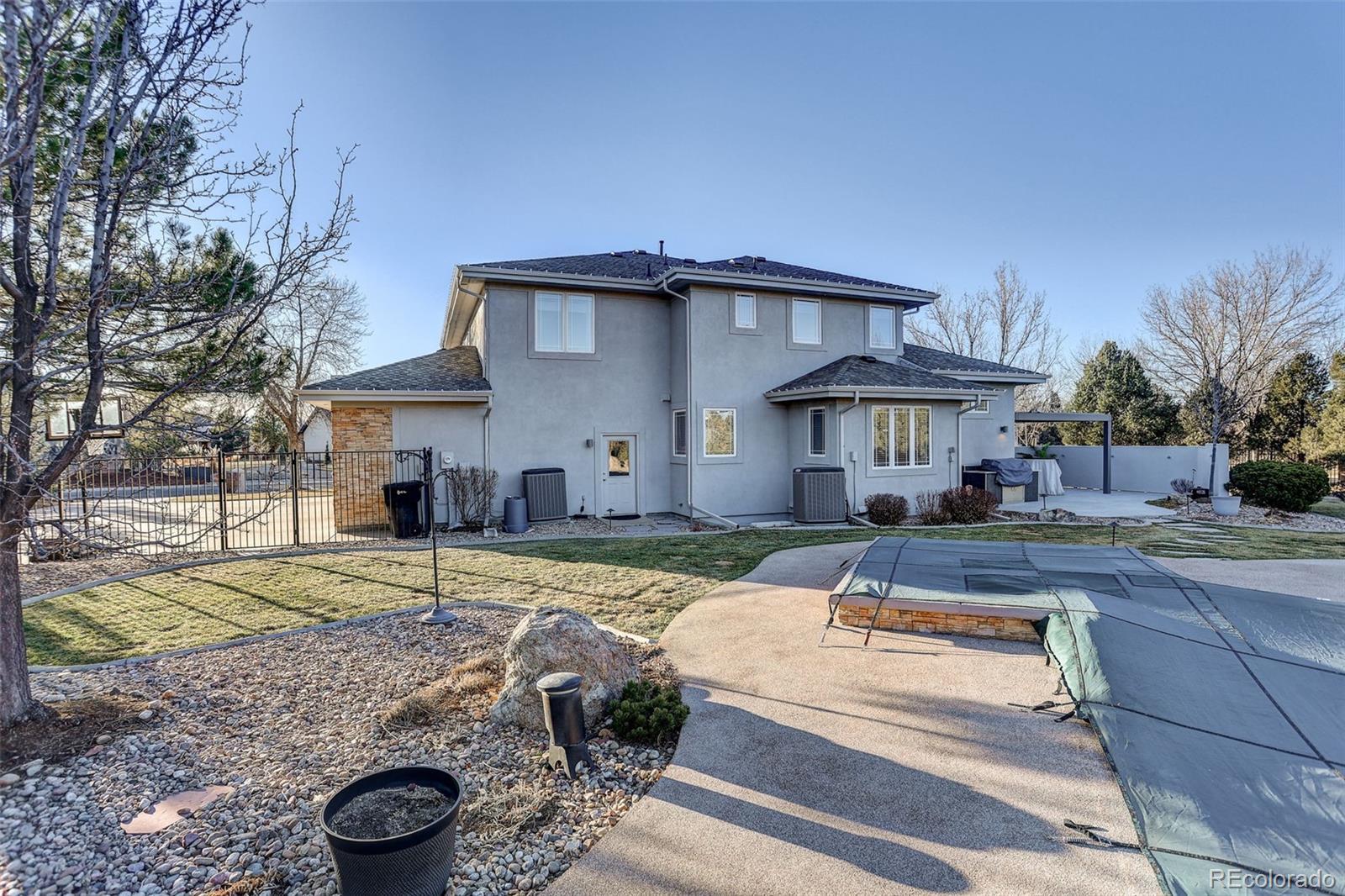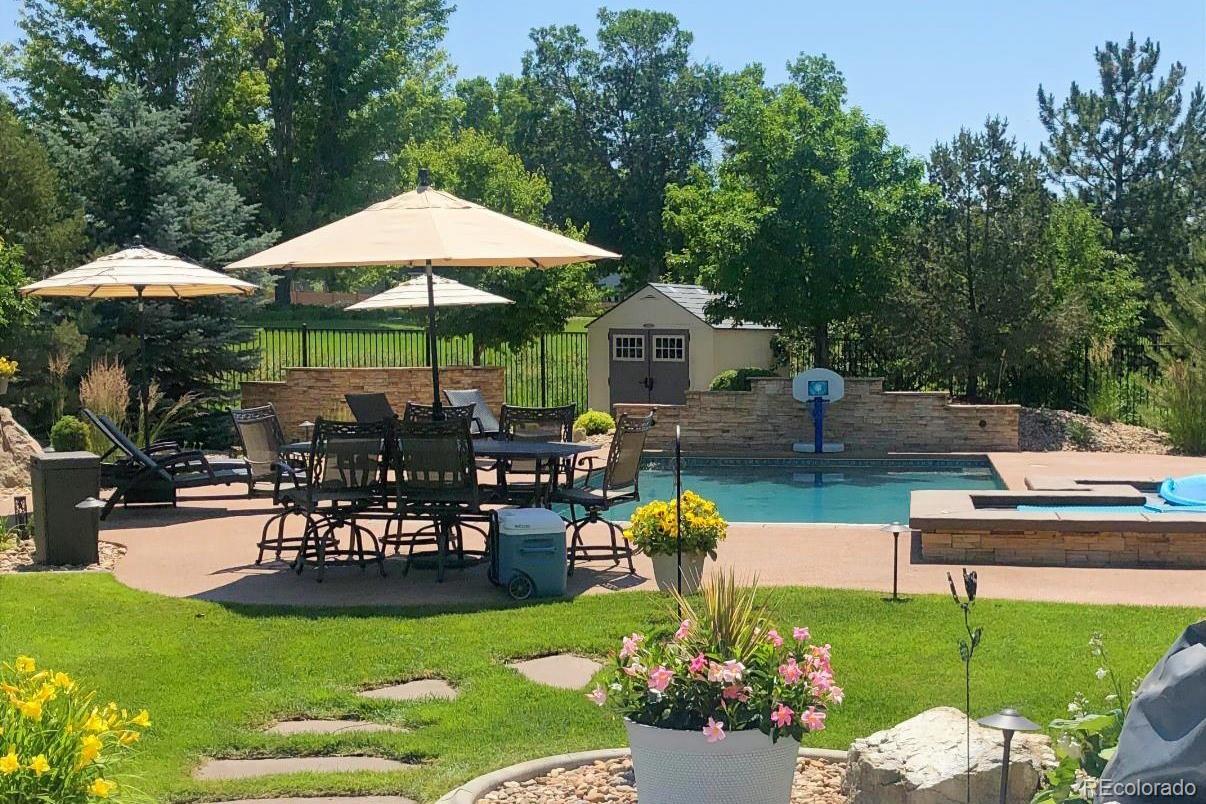 Step into refined living in this exceptional 4-bedroom, 4-bathroom residence set on a ¾-acre fully landscaped lot in the prestigious Lake Avery neighborhood. Thoughtfully designed for both everyday comfort and elevated entertaining, this home offers a rare blend of privacy, luxury, and convenience. The main floor features a private office, ideal for working from home, while the heart of the home shines with a remodeled custom kitchen crafted for function and style. Retreat to the primary suite, where heated floors in the spa-like bathroom add year-round comfort and a private balcony delivers serene lake views. Downstairs, the fully finished basement is an entertainer’s dream with a dedicated theater room and bar. Outdoors, your personal resort awaits: an in-ground pool with spa, automated pergola with a private patio, natural gas built-in grill, and exterior speakers for the patio and pool—perfect for gatherings large and small. (Pool furniture available separately.) Additional highlights include central vacuum, wired full security system, 4-car garage, storage shed, and exterior speakers. The ideal location puts you just 1½ miles to I-25 and 1 mile to light rail, offering effortless access while maintaining a peaceful setting. This is a rare opportunity to own a meticulously appointed home that truly has it all—space, sophistication, and an unbeatable location