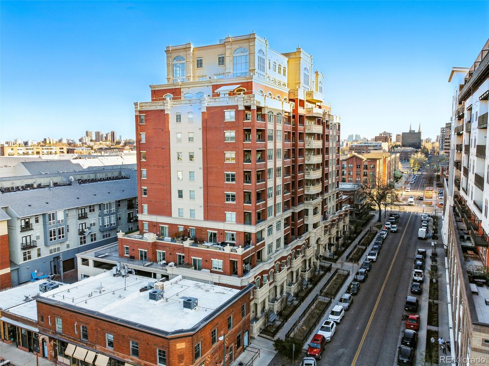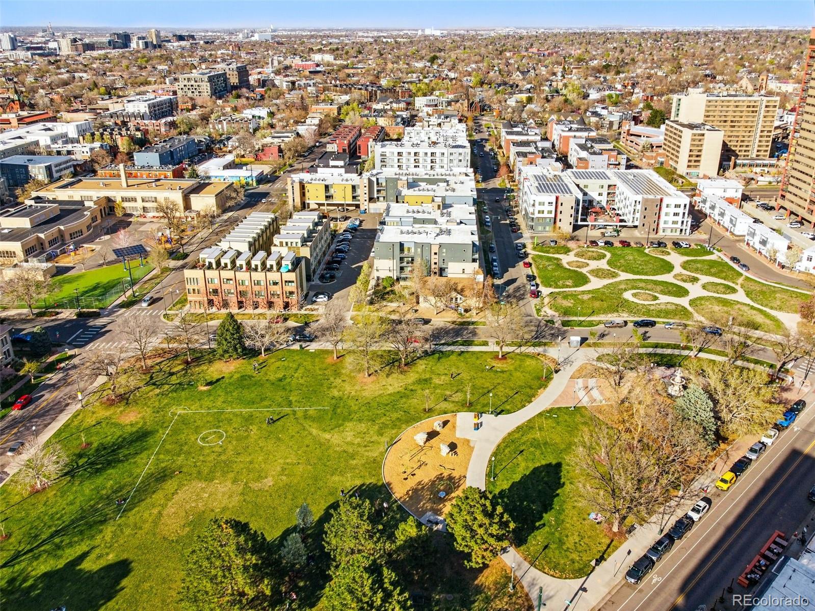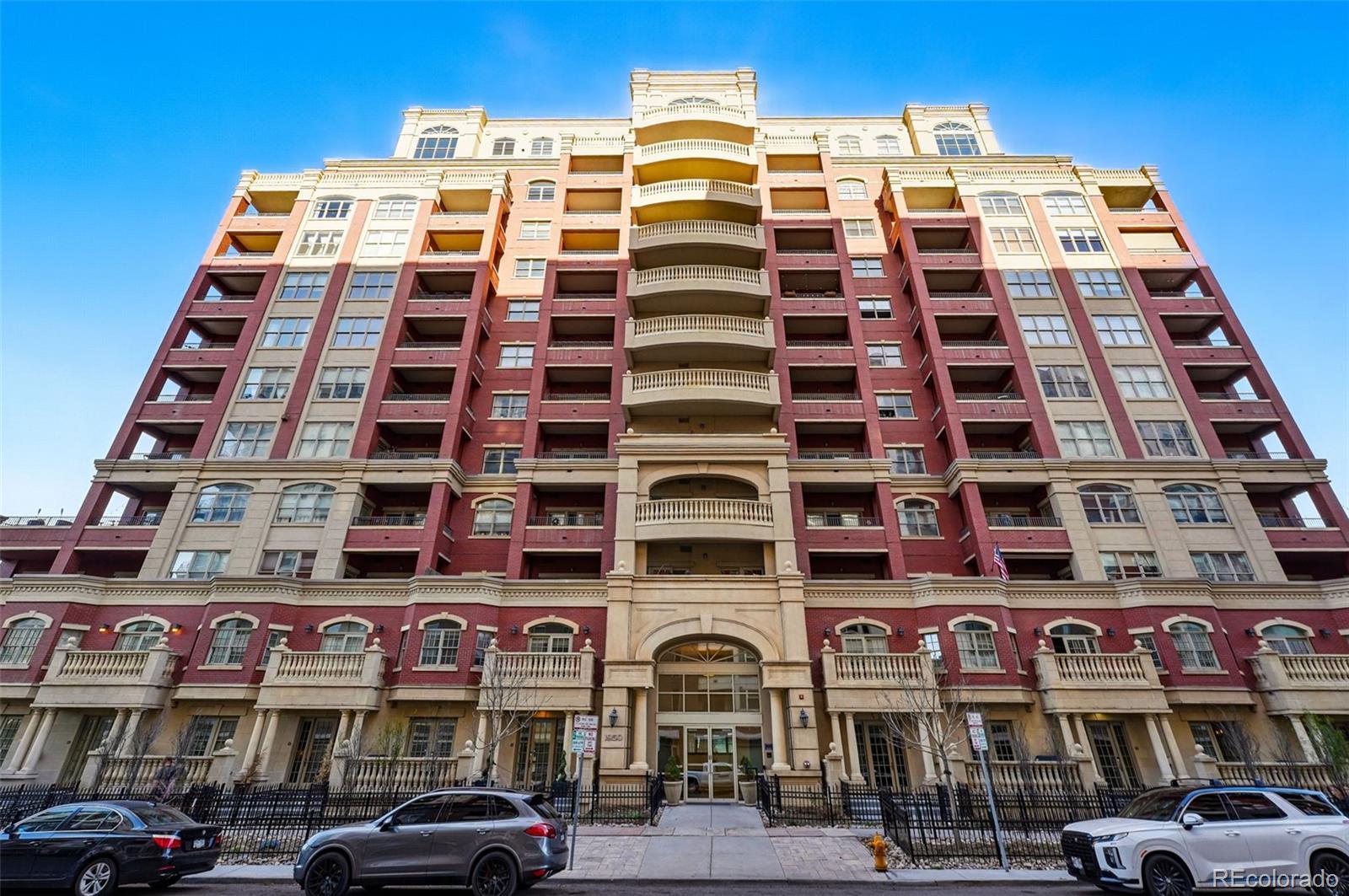 RARE opportunity to own a spacious, updated corner condo at Tower on the Park in Uptown, featuring a large south-facing terrace and a second private patio with stunning views of Downtown Denver and the city skyline. This sleek and stylish home offers upscale city living with an elegant open layout, abundant natural light, engineered wood plank flooring, and soaring 9’+ ceilings. The sun-drenched great room flows into a bright, modern kitchen with a central prep island, custom built-in banquette, 42” upper cabinets, contemporary backsplash, pantry, and stainless steel appliances—perfect for both entertaining and everyday living. The primary suite includes its own private, east-facing balcony, ideal for evening use without direct west sun, plus a beautifully remodeled 4-piece en-suite bath with custom cabinetry and a generous linen/storage closet. The second bedroom or home office opens directly to the wraparound terrace, offering great versatility and indoor-outdoor living. A second full bath includes a deep soaking tub for ultimate relaxation. Additional features include in-unit laundry, a private storage unit, fitness center access, and two secured parking spaces. Located just steps from Benedict Fountain Park, Sonny Lawson Dog Park, the new 16th Street Mall, and countless Uptown restaurants, bars, and cafes. Light Rail access is only a few blocks away. Large private terraces like this have become a rare and coveted feature in downtown condos—don’t miss your chance to enjoy the best of Denver living with this unique and stylish home. Preferred Lender to offer 2-1 buy down to qualified buyer