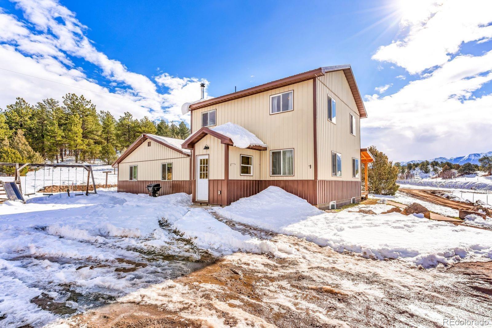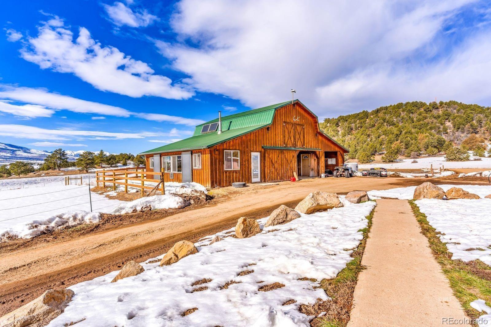 THE PERFECT PACKAGE WITH HUGE MOUNTAIN VIEWS -- Discover the perfect blend of charm, functionality, and breathtaking beauty at this incredible property, ideally situated halfway between Westcliffe and Cotopaxi. Sitting proudly on the corner of Hwy 69 and Reed Rd., this 3,152 sq. ft. home has 4 bedrooms, 2 full baths, a cozy living room, and a family room perfect for gatherings. The open-concept kitchen/dining room (with an additional pantry) will seat many. This home has space for every lifestyle. Relax and stargaze on the inviting front porch as you soak in unforgettable Sangre de Cristo views. Country living meets convenience with paved highway access and amenities designed for both comfort and practicality. The 1,664 sq. ft. barn (built in 2012) is a standout feature, offering a workshop, ample storage, and two stalls with concrete floors and mats - perfect for horses, livestock, or your next creative project. Three additional outbuildings provide even more versatility. Recent upgrades include a new gas range and an on-demand water heater. Westcliffe's famous Dark Skies promises mesmerizing starry nights. Whether you envision homesteading, farm life, or simply a serene mountain retreat, this property is your gateway to it all!
