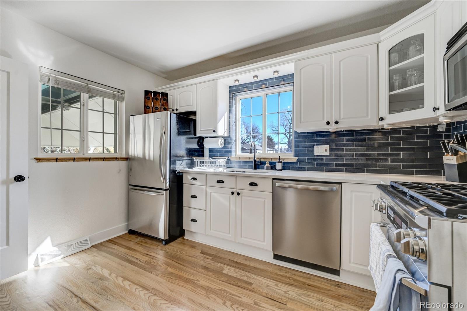 Fall in love with this beautifully updated cottage in the heart of Mayfair, blending classic charm with today’s modern touches. The inviting main level features two bright bedrooms, a stylish full bath, and a dining space that flows easily into the remodeled kitchen. With its commercial style range and sleek finishes, the kitchen is equally functional for daily life and impressive when hosting guests. An expansive family room addition offers the perfect spot to relax, whether it’s hosting friends for game night or curling up with a good movie. The finished basement adds flexibility with new carpet, an updated bathroom plus shower, and plenty of extra space for hobbies, guests, or a home office. Step outside to enjoy one of the largest backyards in the neighborhood fully fenced in for pets or young ones. The covered porch is perfect for summer barbecues, while trees and fresh landscaping create a peaceful retreat. Major updates give peace of mind, including a new roof, newer furnace, water heater, gutters, washer/dryer, exterior paint, and refinished hardwood floors. All of this is just steps from Mayfair’s favorite restaurants, cafes, parks, and the exciting new 9th & Colorado development. A rare find full of character, upgrades, and unbeatable location.