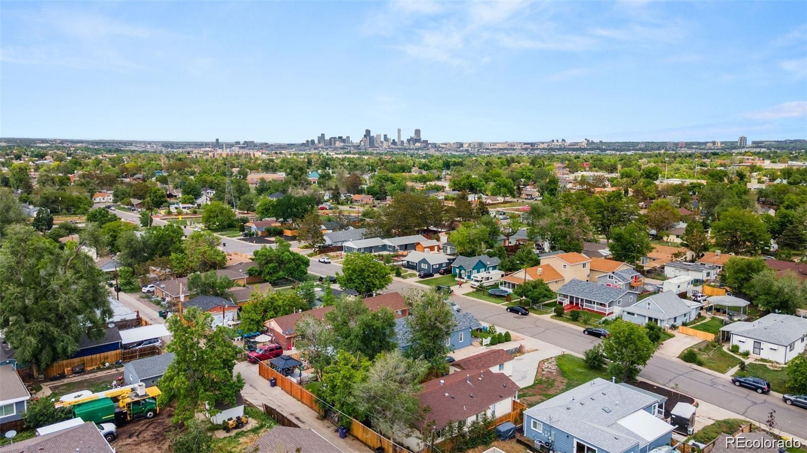 Single family Bungalow After short break this home is ready for to go. The perfect blend of characteristic charm and modern convenience. This 1934 Denver Bungalow features modern updates for ease in living with classic design combining the traditional with modern aesthetic. Showcasing detailed elements including arched interior transitions, original architectural touches such as the sunroom style entry, low-pitched gabled roof line, and detailed trim work both on the interior and exterior. In the heart of Denver's Westood/Belmont Park Neighborhood. 3 bedrooms, 2 bathrooms, large kitchen and living area with fully remodeled main bathroom (2024). Property also includes a detached 2-car garage for storage or future ADU space, currently inaccessible for parking. Major improvements include a brand-new Class 4 impact-resistant roof, new exterior paint, and a newer furnace (12-25) for efficiency and peace of mind, updated main bathroom (2024), interior water control valve (2024), electrical panel replacement 2019, dog run (2025), side fencing (2019), sewer line to city hookup (2019), interior electrical (2019) and main level carpet 12-2025. Located near Four Winds (Cuatro Vientos) Park, Westwood Park, and the Via Verde Trail system, with easy access to downtown Denver, Sloan’s Lake, Belmar, and Edgewater dining and shops. Plus, quick access to mountain corridors for weekend adventures. Basement has separate side-door entry - excellent opportunity for rental conversion. Zoned for 2 separate 2-story buildings—Live in one, build on the other. No HOA! Garage is detached with electricity, inaccessible for parking.