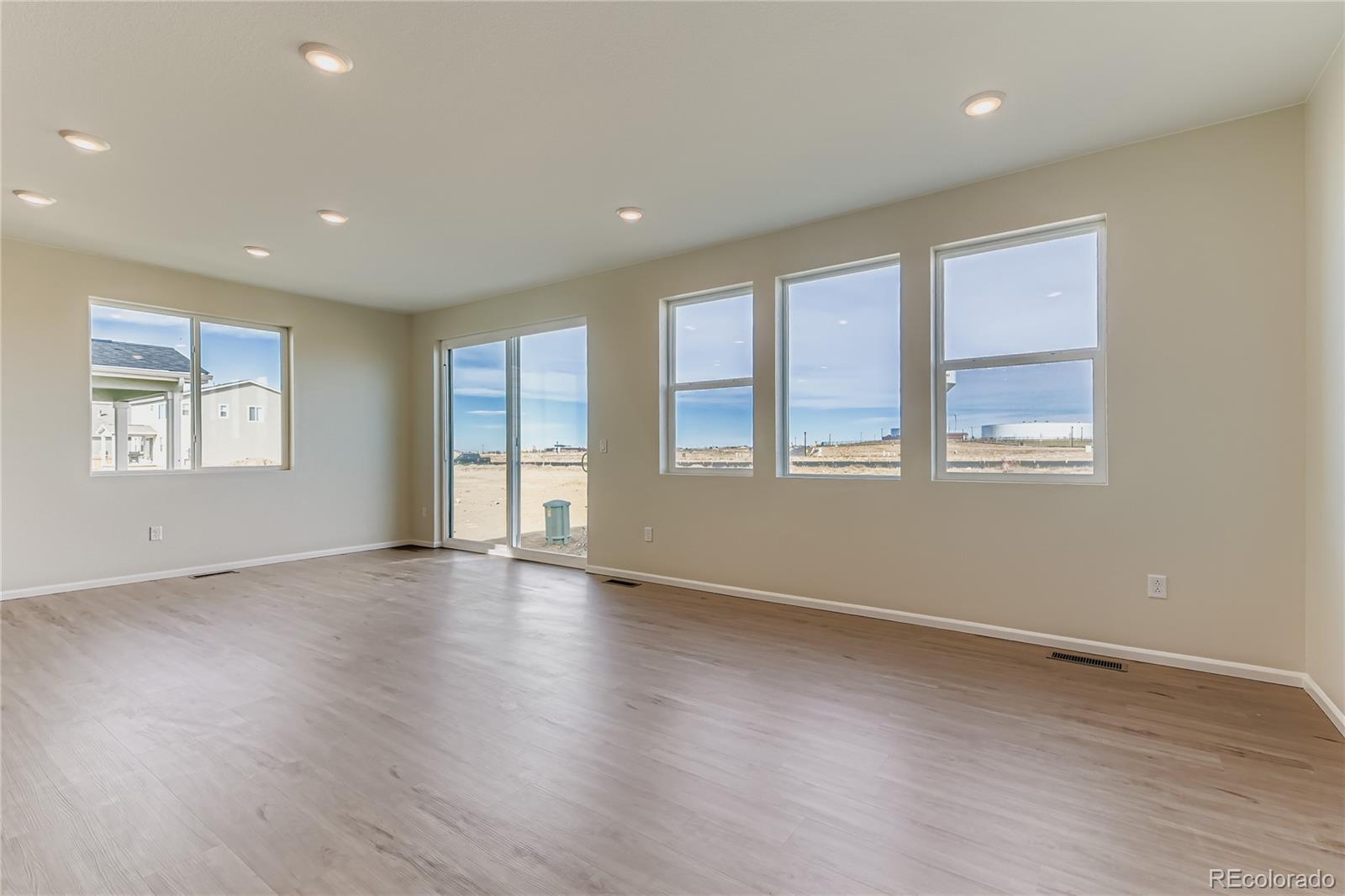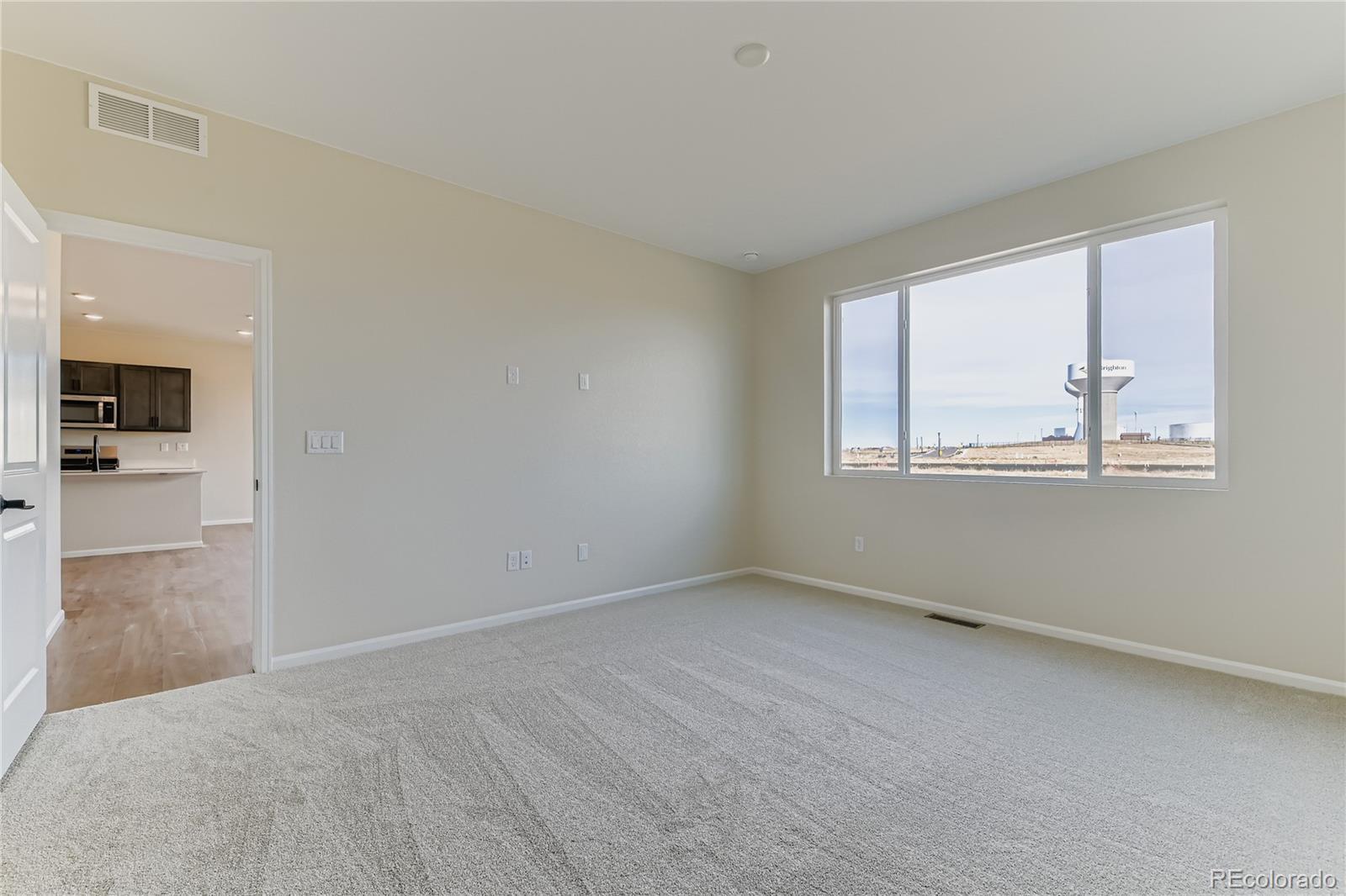 Brand new 3-bedroom ranch with a three-car tandem garage, move-in ready now in Brighton Crossings — one of Colorado’s top-selling master-planned communities. Eligible for a fixed rate as low as 2.99% in the first year with the builder’s preferred lender, BRP Home Mortgage. This open-concept layout is designed for modern living, featuring quartz countertops, gas range, upgraded appliances (refrigerator, washer, dryer, microwave vented to exterior, and dishwasher), an island with seating, walk-in pantry, and 9-foot ceilings. The great room and dining area flow together for a bright, welcoming space. Additional highlights include the three-car tandem garage with 8-foot door, high-efficiency HVAC system, and a tankless water heater. Brighton Crossings offers exceptional amenities: two pools, two fitness centers, tennis and pickleball courts, sports fields, and playgrounds, all just minutes from shopping, dining, and major commuter routes. Don’t miss your opportunity to own in this highly desirable community!