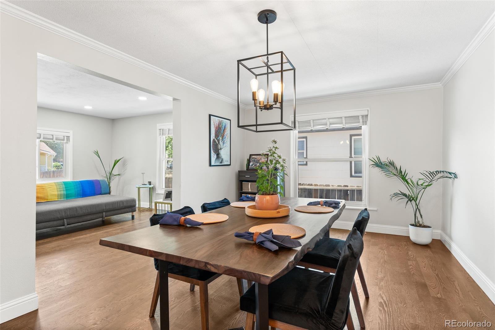 Welcome home to this Englewood Charmer, which perfectly blends an old-home feel with an elegant remodel. Centered around a fireplace and hearth, the spacious living and dining rooms are bright, warm, and welcoming. The remodeled eat-in kitchen is an entertainer’s delight, featuring quartz countertops, stainless steel appliances, a glass subway tile backsplash, new cabinet hardware, and a sunny breakfast nook. The main floor offers two bedrooms with ceiling fans and an updated bathroom showcasing a quartz countertop and beautiful tilework. The large upstairs room provides many options, including a bedroom, office, workout area, or media/game room. The unfinished 1,300+ sq ft basement offers abundant storage space. Ready to get outside this summer? Enjoy a book and coffee on the front porch overlooking the landscaped front yard, or entertain in the quiet, private backyard on the patio shaded by mature trees. Located close to South Broadway and South Pearl Street, this home puts some of Englewood and south Denver’s favorite restaurants, bars, and coffee spots within easy reach, along with convenient access to public transportation and an easy ride downtown for shows and events. Nearby parks make daily dog walks simple, and the location offers the feel of south Denver living with the value of Englewood prices. This turnkey home is close to everything you could need, making it a remarkable find.