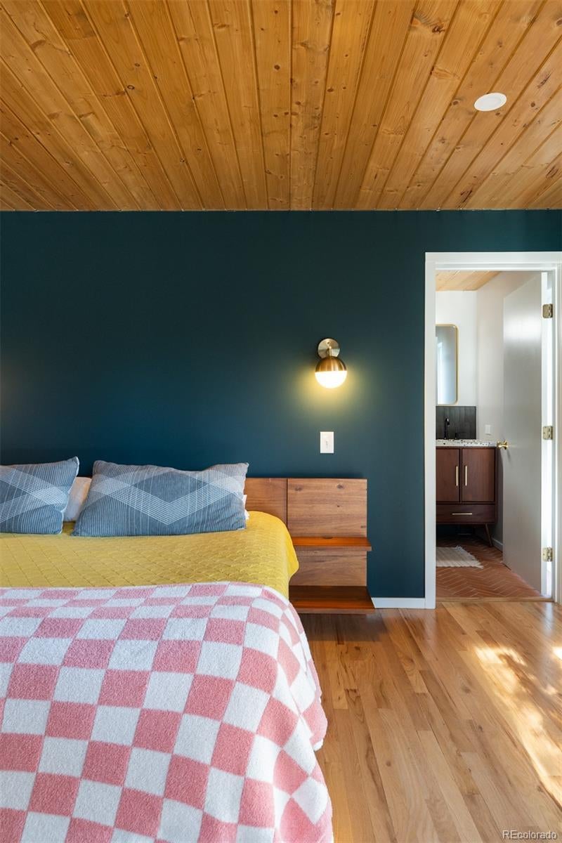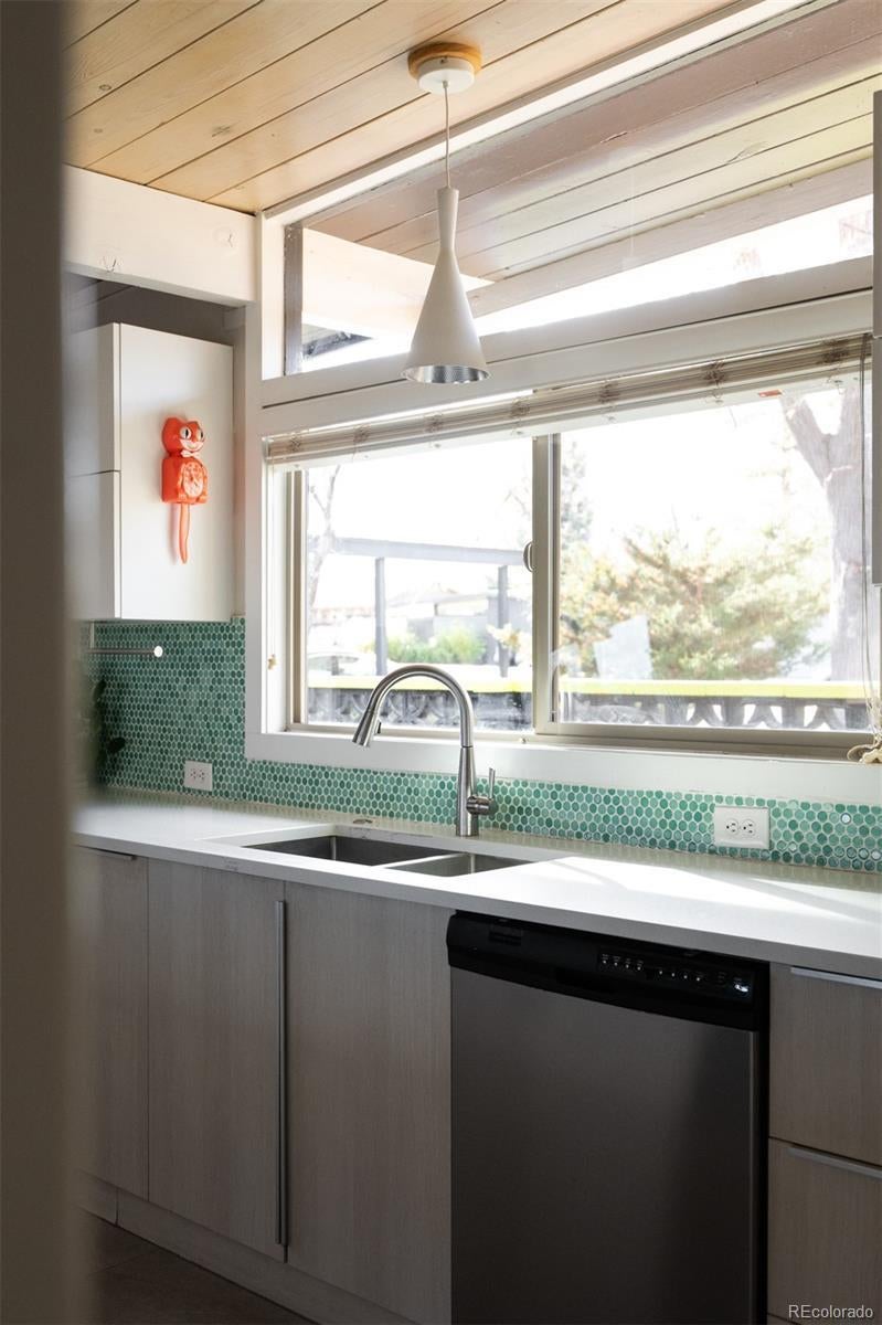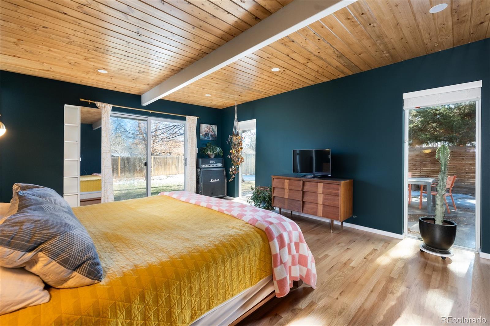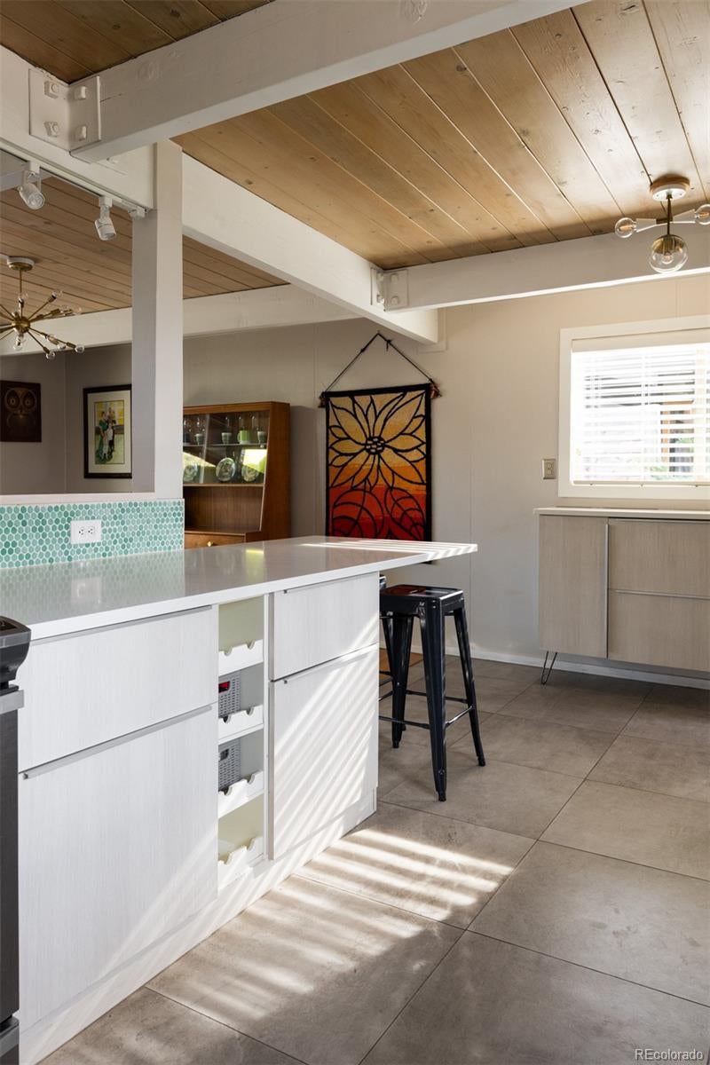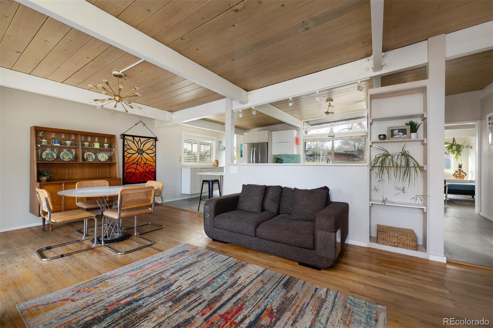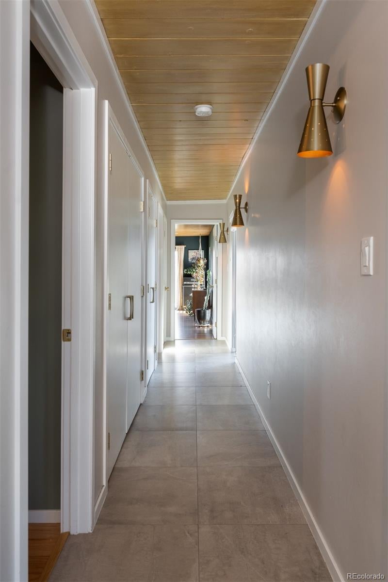 Welcome to the aptly named “Spider-Leg” Model in the MCM enclave of Lynwood in Denver, CO! This home has a masterfully thought out addition by ArcDen, giving it the extra space man y often need in these homes, plus a converted car-port which gives a secondary living area-bringing the total of this modernized MCM to nearly 2k sf! As you approach this home, you are greeted by a breeze-block wall giving detail and privacy to an outside sitting area. As you step inside, you enter into family room- perfect for TV watching, hang outs, and enough space for coats/hats/backpacks/CO Gear! Further into the home, the main living area has the large, updated kitchen with oh so much storage and counter space- dining area, and living room with fireplace. All wrapped with a wall of windows, and walls with ample widows drenching this area in natural light. Down the first part of the hallway is the first bathroom-a full bath with a nod to this homes original and retro roots! Next is the first bedroom with ample space! Down the new and reconfigured hallway, lined with floor to ceiling windows, is the second bedroom, redesigned for optimal space and closet storage! At the end of the sunny hallway is the “today” sized primary bedroom! Also with floor to ceiling windows, it’s own egress and patio, ample space, matched beams and T/G ceiling, and a walk-in closet! As well as an added primary bathroom with a double vanity, walk in shower, and more floor to ceiling (frosted)glass! Outside, this home is perfectly situated on an oversized 9k+ sf lot to take full advantage of the space with a integrated courtyard/patio that flows seamlessly into the grassy oasis of the yard! In addition this home has a new roof/insulation, owned solar, new windows, new outside paint, and more! Come see this MCM home, wonderfully brought into today’s world, while respecting its original architecture! All on the Idyllic street in the MCM Lynwood enclave, of S Jasmine! Make this rare, large MCM home yours, today!