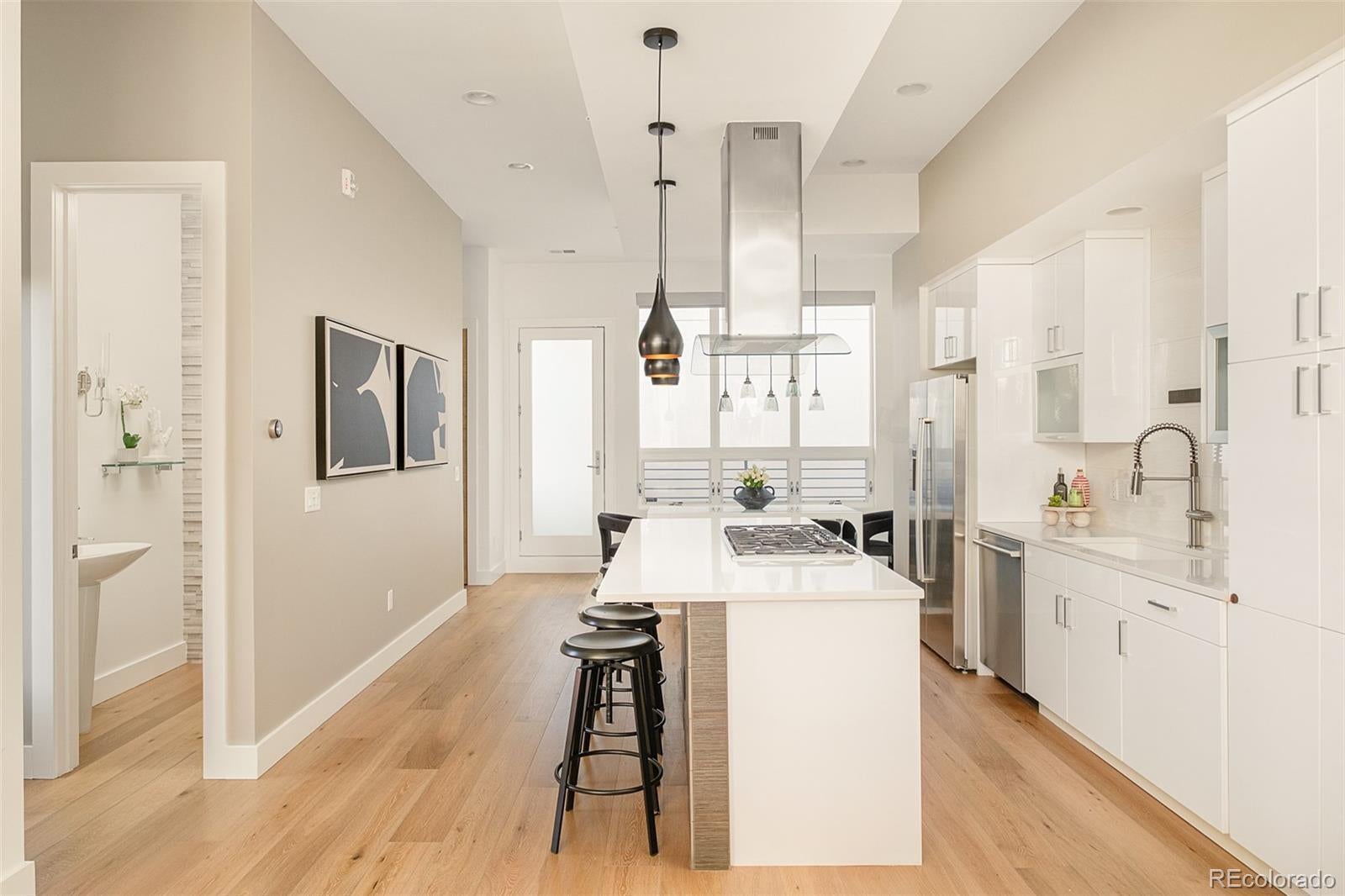 A striking blend of modern luxury and urban energy, this Highlands residence delivers elevated living with downtown views. Thoughtful updates throughout include new hardwood flooring and carpeting, fresh interior paint + updated window coverings. An open floorplan with high ceilings inspires a light-filled, contemporary atmosphere. The home chef is treated to a sleek kitchen featuring a walk-in pantry. One of three en-suite bedrooms, the spacious primary boasts a spa-inspired five-piece bath + a large walk-in closet. Designed for entertaining, a large third-floor flex space with a wet bar opens to a sprawling rooftop deck with a sweeping cityscape. A heated 2.5-car attached garage with epoxy floors offers built-in storage. Situated in proximity to two Michelin Star restaurants and Coors Field + easy access to downtown, RiNo, and Tennyson Street, this residence offers a vibrant lifestyle and convenient location.