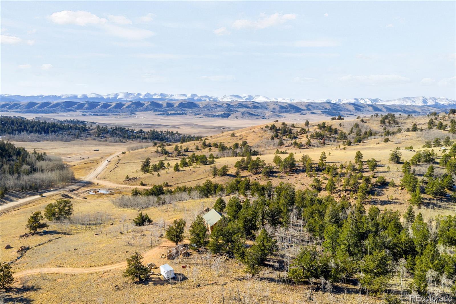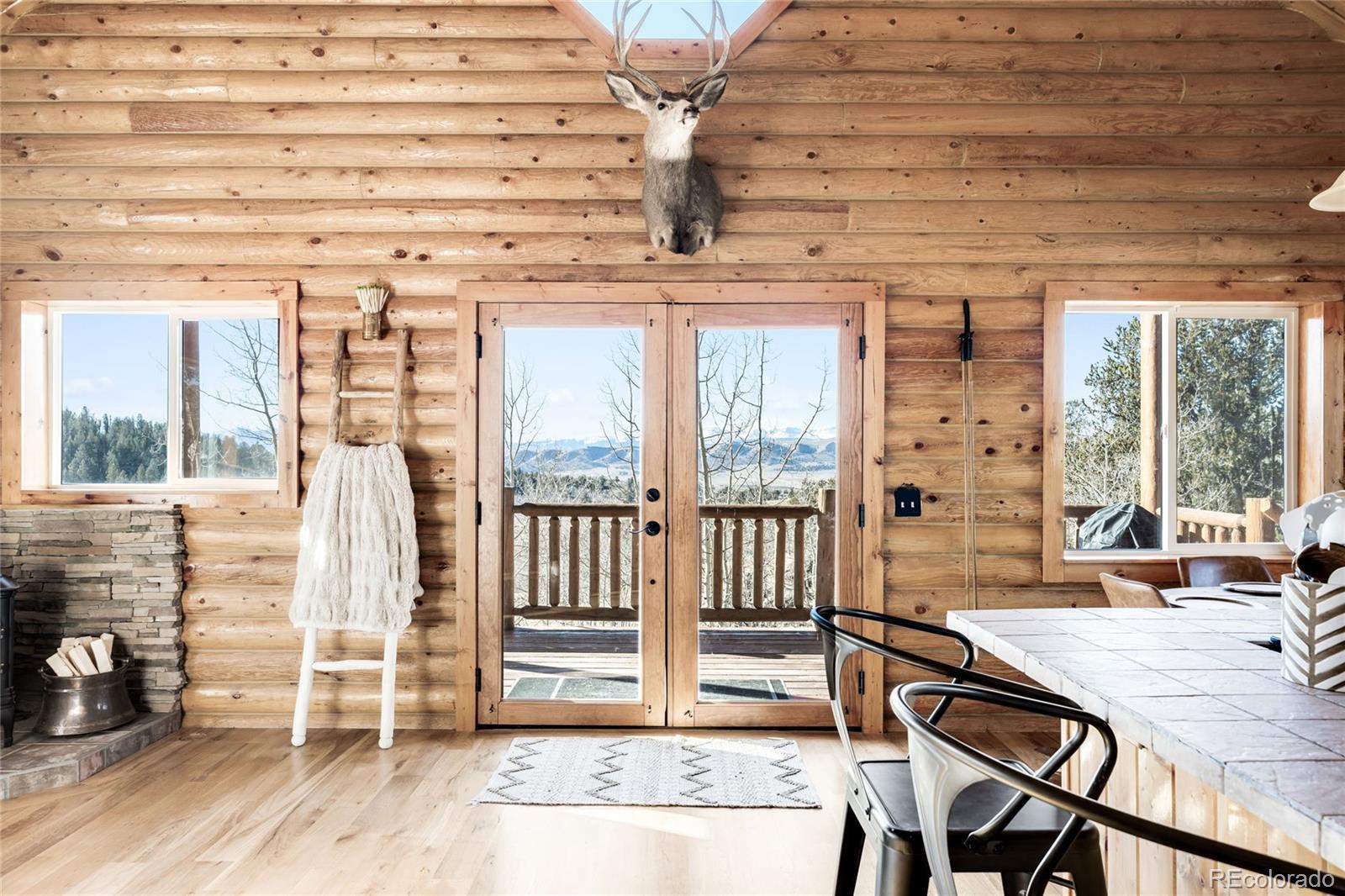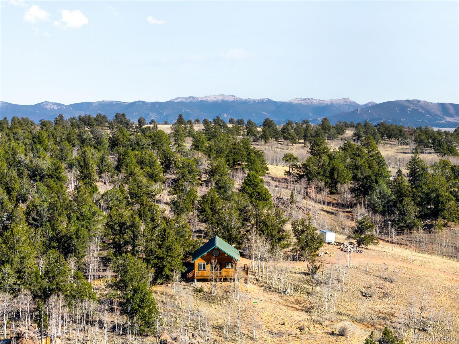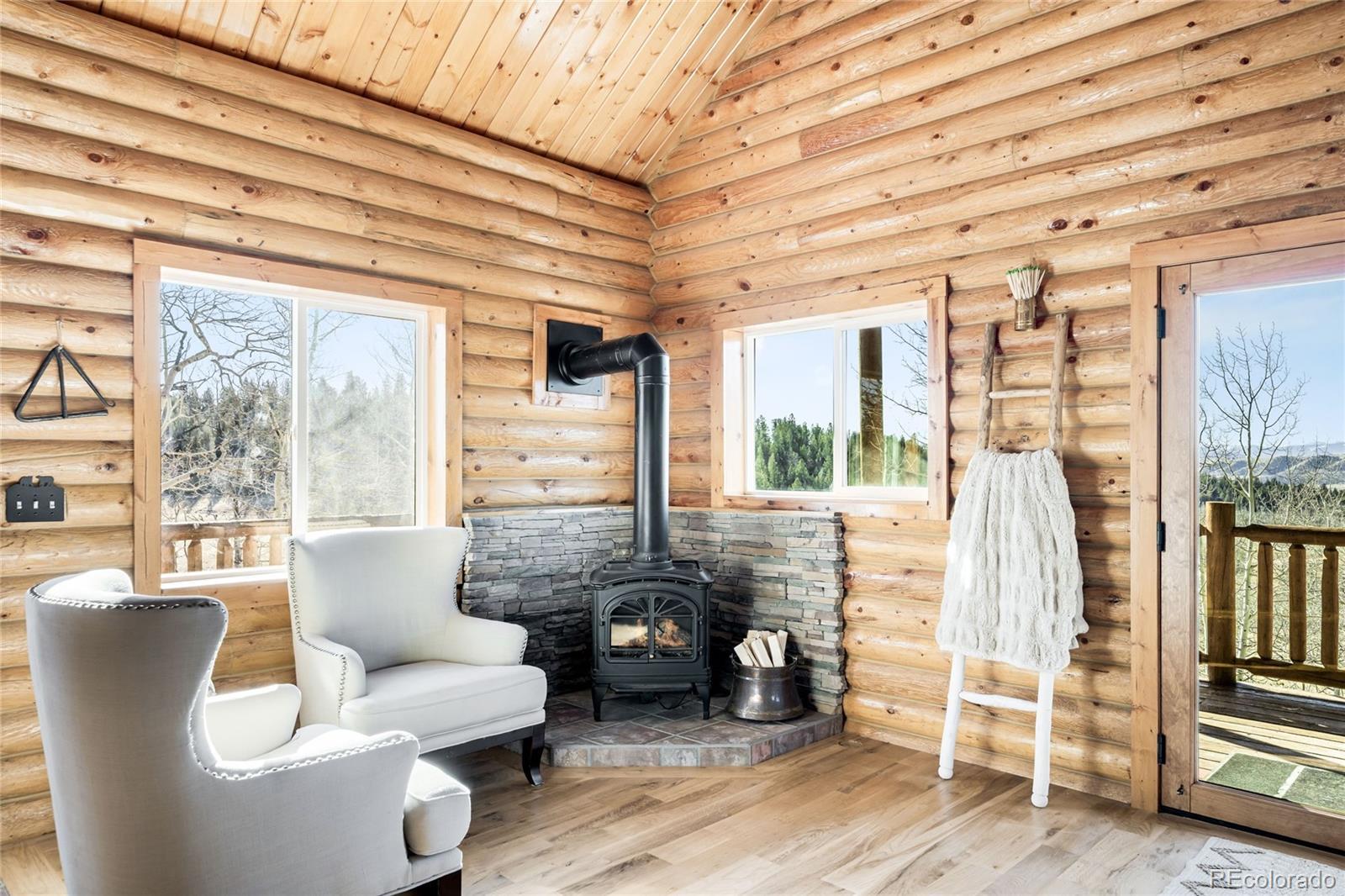 Unobstructed views on six acres of blissful landscape, this private oasis brings to life the dream of off-grid living. A wraparound porch envelops this log cabin, creating the perfect perch for enjoying panoramic views. Inside, an open-concept floorplan is awash with natural light from generous windows and tongue-in-groove accents that maintain a rustic, yet elevated atmosphere. Vaulted ceilings crown the living and kitchen area while a wood stove grounds the space with a warm, inviting aura. This motif continues into the two main-level bedrooms that share a sleek and modern bathroom. The open staircase ascends to a flexible loft area with balcony access — ideal for additional bedroom space, living area, and more. Here, residents enjoy forested views with opportunities to spot wildlife. Outside, a storage shed adds convenient storage while a number of cleared areas are ideal for outdoor lounging and recreation. Close proximity to Highway 285 provides easy access to mountain adventures in Breckenridge and the urban conveniences of the Front Range.