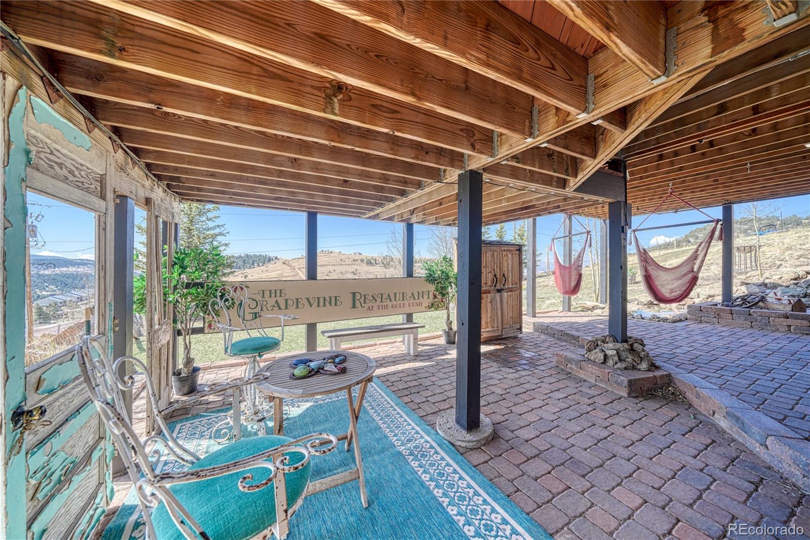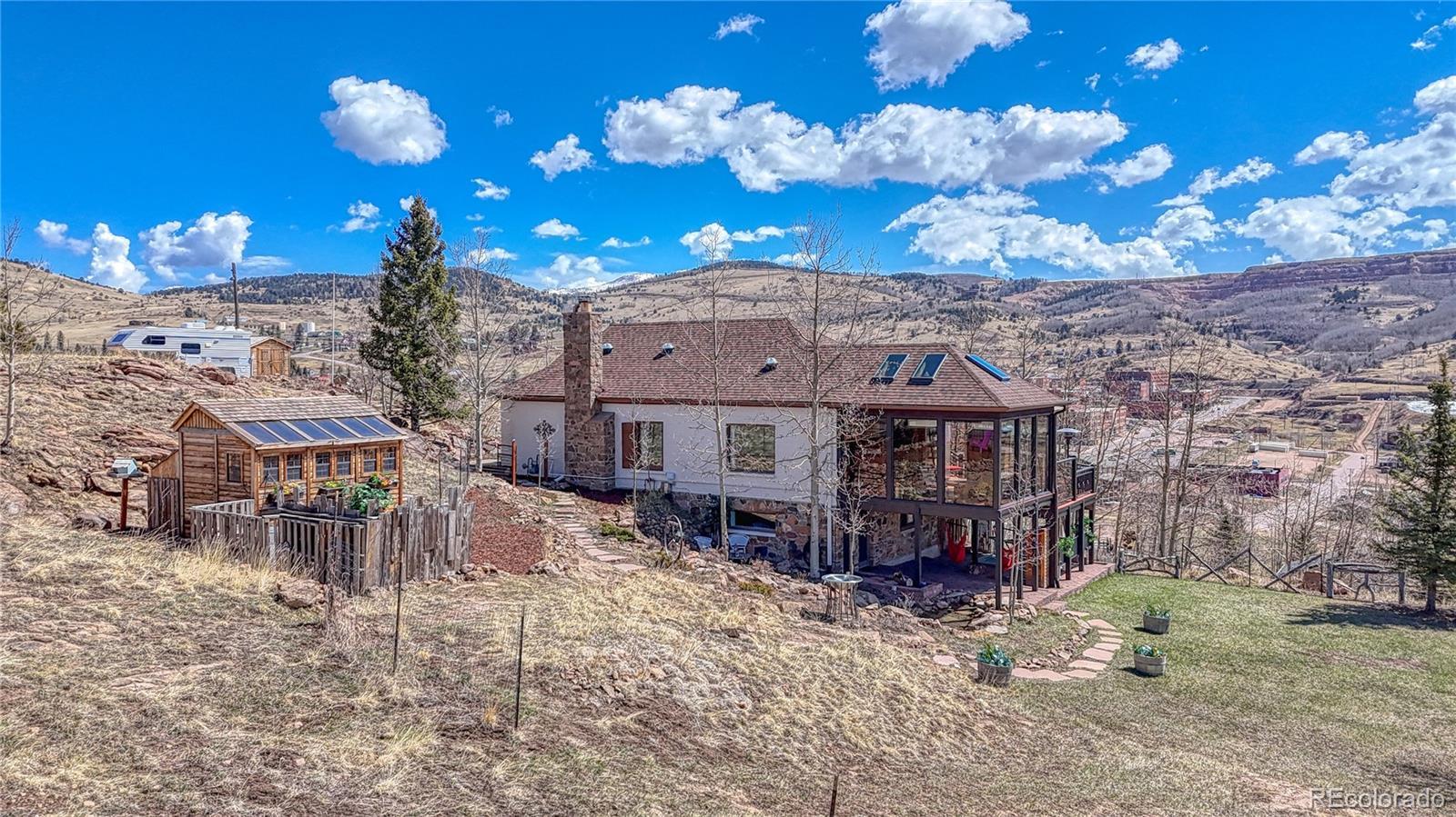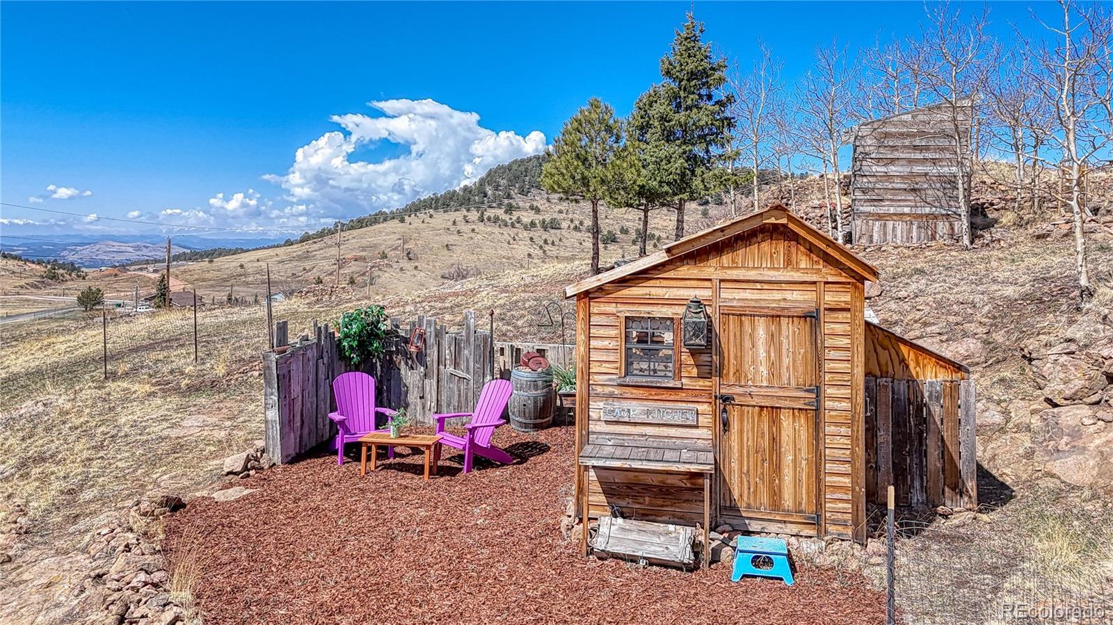 Historic Charm with Breathtaking Views! Perched atop a scenic hillside, this spacious 2,652 sq ft home captures unobstructed panoramic views of Pikes Peak, the Sangre de Cristo Mountains, and the charming town of Cripple Creek. This incredible offering includes 33 lots totaling 2.64 acres, most with R-2 zoning, without the burden of an HOA. This lovingly maintained home features separate entrances on both levels, ideal for multi-generational living or rental income. The main level showcases a beautifully upgraded kitchen with granite countertops, newer appliances, and abundant pantry storage, along with a main-level primary suite. Downstairs, you'll find a large bedroom with a kitchenette—perfect for guests or tenants. Historic character blends seamlessly with modern updates, including a new roof, gutters, skylights, and exterior paint completed in 2023, ensuring move-in-ready peace of mind. This home has been meticiously maintained. The cozy living room features a natural gas stone fireplace—perfect for chilly Colorado evenings. Outdoor living shines with a heated, covered deck designed for year-round entertaining, a relaxing hot tub, and a private outdoor sauna. The beautifully landscaped grounds include a lower patio, a fenced dog run, a waterfall pond, multiple outbuildings including a garden shed, and plenty of parking for an RV or boat. This property is connected to city services with plenty of space to add a future garage or shop. All of this, within walking distance to Cripple Creek's quaint shops, restaurants, and casinos, or you can hop on the free shuttle that picks up at the bottom of the private driveway. Whether you dream of a private mountain retreat, an income-producing property, or a flexible investment opportunity with room for future development, this hillside gem offers historic charm, modern amenities, and views that simply can't be replicated.