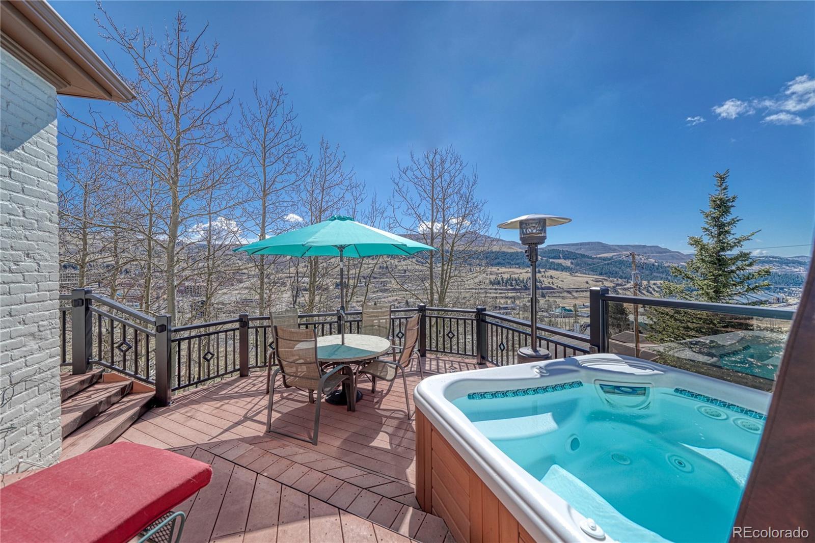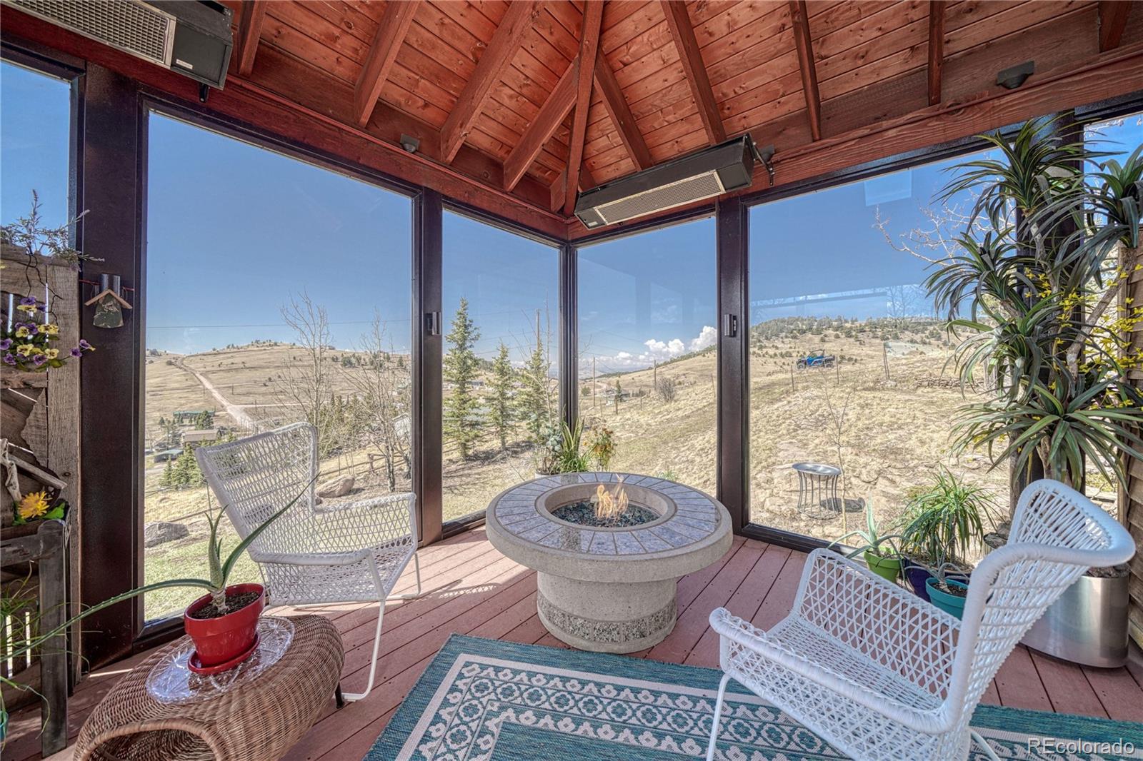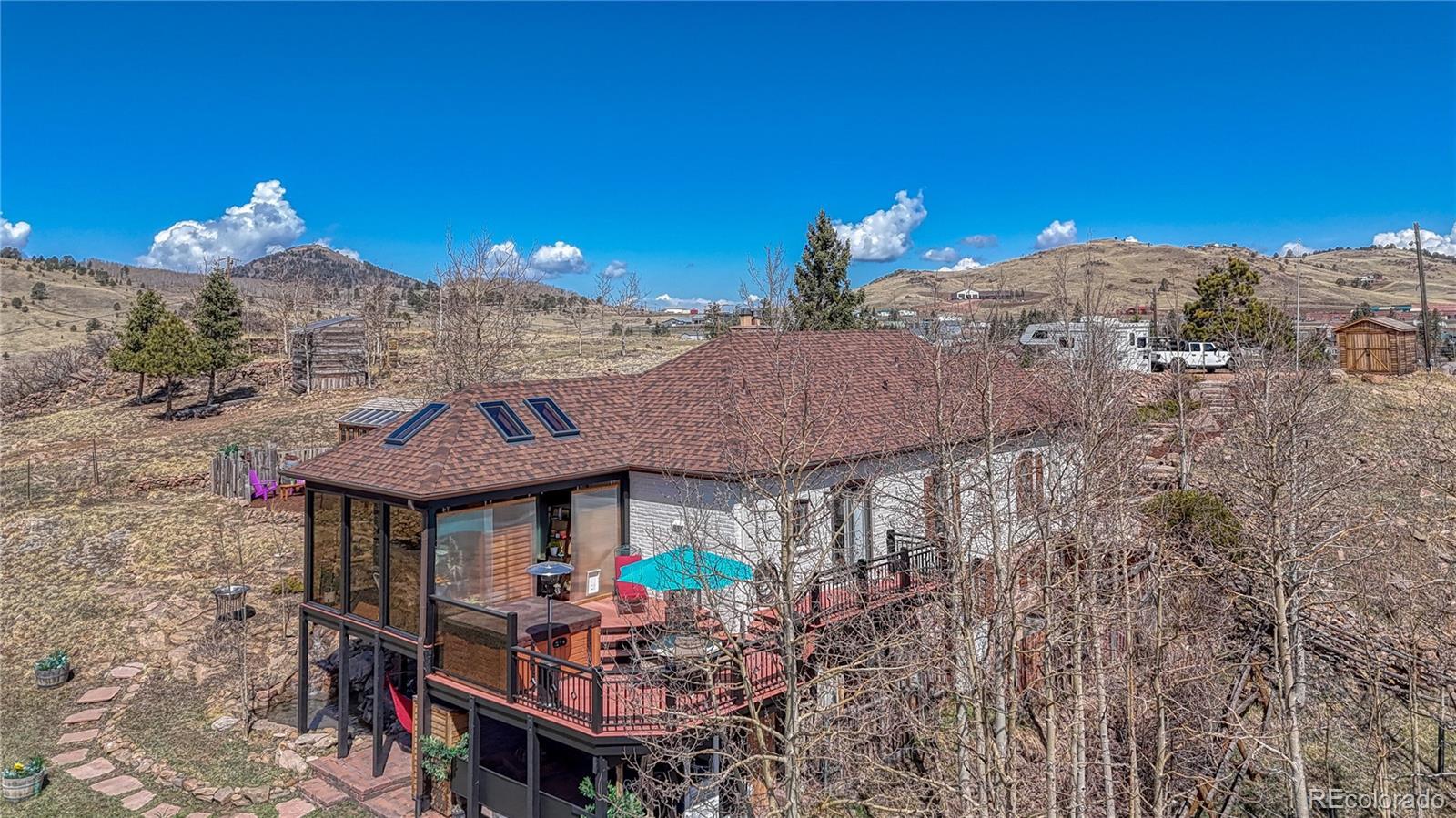 Historic Charm with Breathtaking Views! Perched atop a scenic hillside, this spacious 2,652 sq ft home captures unobstructed panoramic views of Pikes Peak, the Sangre de Cristo Mountains, and the charming town of Cripple Creek. This incredible offering includes 33 lots totaling 2.64 acres, most with R-2 zoning, without the burden of an HOA. This lovingly maintained home features separate entrances on both levels, ideal for multi-generational living or rental income. The main level showcases a beautifully upgraded kitchen with granite countertops, newer appliances, and abundant pantry storage, along with a main-level primary suite. Downstairs, you'll find a large bedroom with a kitchenette—perfect for guests or tenants. Historic character blends seamlessly with modern updates, including a new roof, gutters, skylights, and exterior paint completed in 2023, ensuring move-in-ready peace of mind. This home has been meticiously maintained. The cozy living room features a natural gas stone fireplace—perfect for chilly Colorado evenings. Outdoor living shines with a heated, covered deck designed for year-round entertaining, a relaxing hot tub, and a private outdoor sauna. The beautifully landscaped grounds include a lower patio, a fenced dog run, a waterfall pond, multiple outbuildings including a garden shed, and plenty of parking for an RV or boat. This property is connected to city services with plenty of space to add a future garage or shop. All of this, within walking distance to Cripple Creek's quaint shops, restaurants, and casinos, or you can hop on the free shuttle that picks up at the bottom of the private driveway. Whether you dream of a private mountain retreat, an income-producing property, or a flexible investment opportunity with room for future development, this hillside gem offers historic charm, modern amenities, and views that simply can't be replicated.
