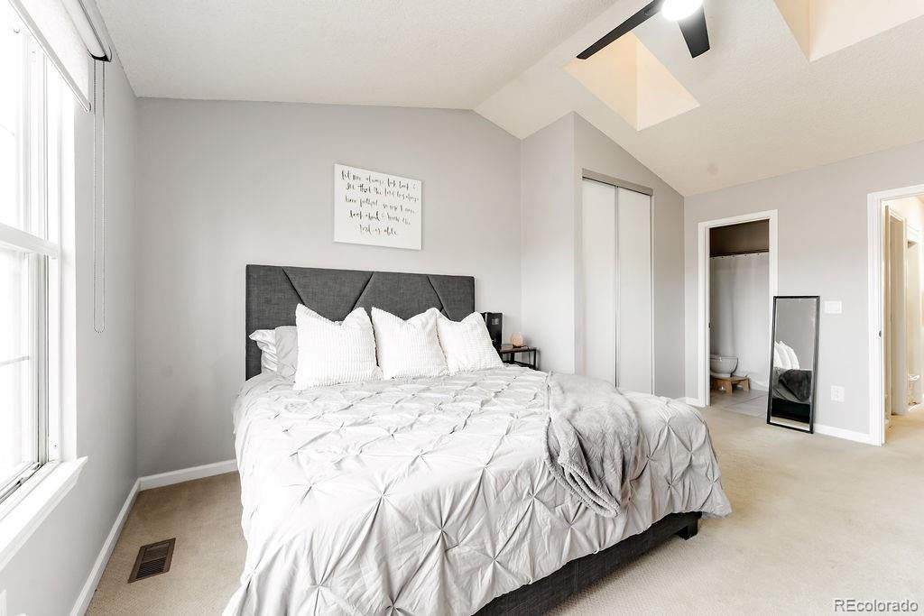 Bright, open, and move-in ready, this Centennial townhome offers comfort, style, and an unbeatable location. The main level features gleaming hardwood floors, a spacious dining area, a large family room with a cozy wood-burning fireplace, and a convenient half bath. The kitchen shines with stainless steel appliances, beautiful cabinetry, and updated lighting. Step out to your private, fully fenced patio—perfect for grilling and relaxing on warm Colorado evenings. Upstairs, you’ll find two generously sized bedrooms and a beautifully updated full bath. The primary suite offers two closets, natural light from skylights, and an attached bath. An attached 1-car garage with a large storage/utility area adds valuable functionality. Enjoy quick access to C-470, County Line, University, and the vibrant shops and restaurants at The Streets of SouthGlenn.