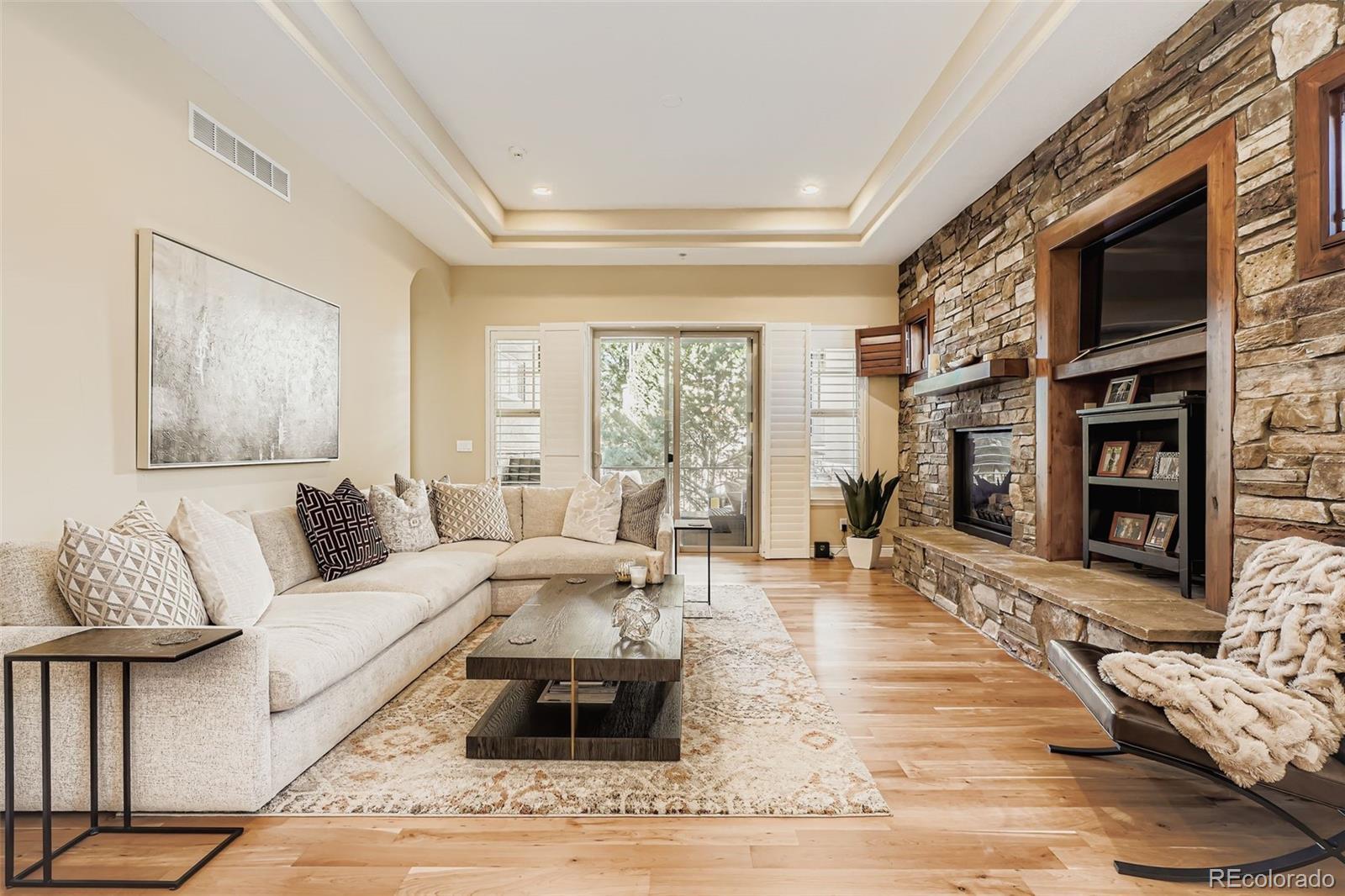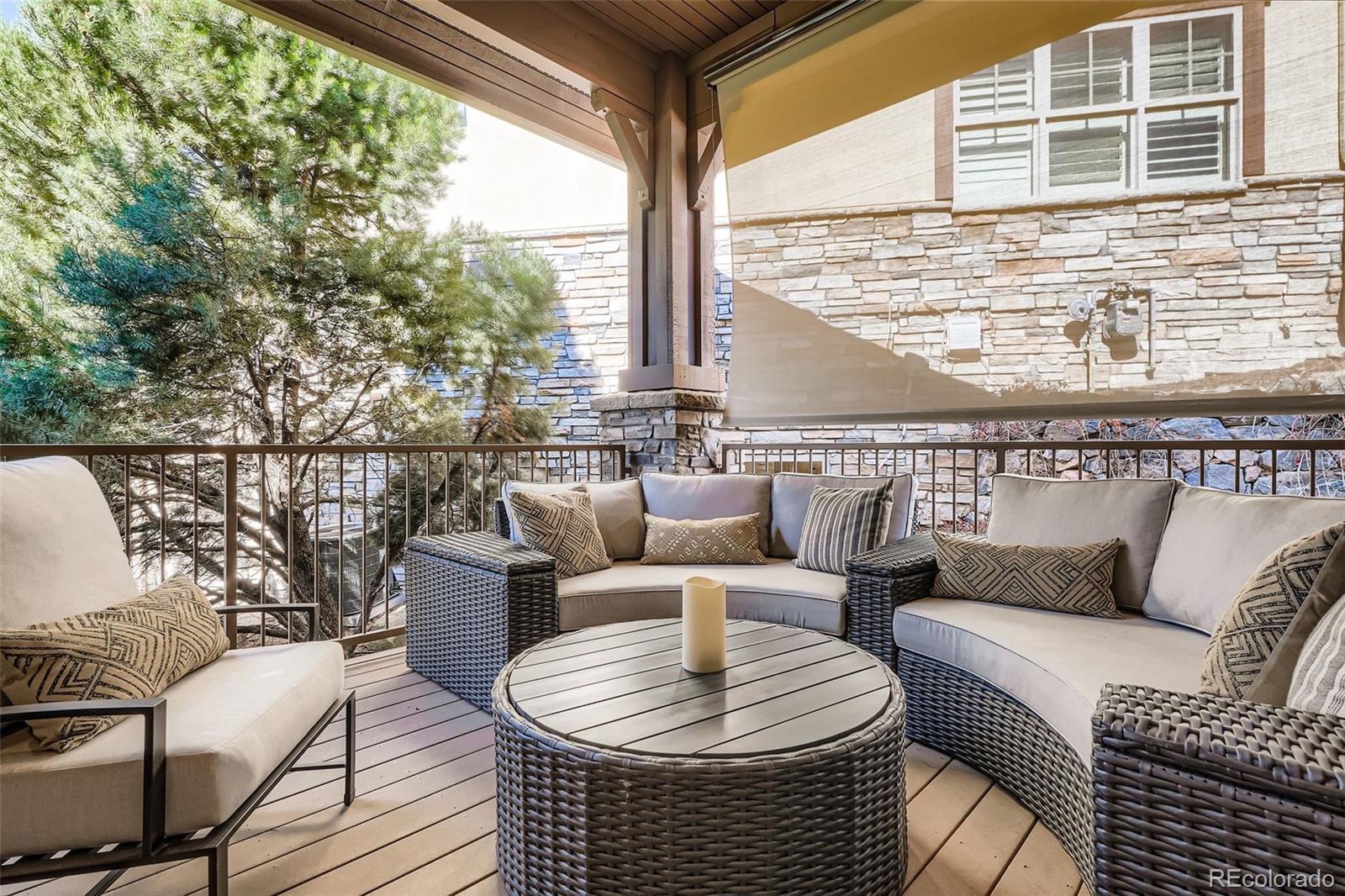 Located within the prestigious gated community of The Village at Castle Pines, this exceptional residence is surrounded by mature trees and tranquil landscaping, offering refined living with premier amenities. The community features two of Colorado’s top private golf courses—The Country Club at Castle Pines and Castle Pines Golf Club, the latter host of the 2024 BMW Championship. Upon arrival, the professionally designed landscaping creates great curb appeal for this mountain contemporary home. An open layout reveals the home’s scale from front to back, highlighted by tray ceilings, refinished cherry wood floors, custom and recessed lighting, and an abundance of windows with plantation shutters. The main level includes an elevated study/den with sitting area; a chef’s kitchen with extensive cabinetry and generous counter space for entertaining; a welcoming living room anchored by a stacked-stone gas fireplace with built-in hutch; and a spacious primary suite with five-piece bath and large walk-in closet. A guest half bath, walk-in pantry, and laundry room with cabinets and utility sink add convenience. Just off the living room, a covered deck with remote privacy screen provides an ideal private outdoor retreat. A professionally finished lower level expands your living options, offering an additional 2 beds & 2 baths with flex space for a home theater, gym, wine room or additional office. There is also a very large storage room. The community is staffed with 24/7 EM services, snow removal, lawn service and is walking distance to the Village Lake Fitness Center, adult pool, family pool, tennis and pickle ball courts, 13 mi of walking & biking trails, boutiques and restaurants. Rarely will you find a home within a community that truly has it all.