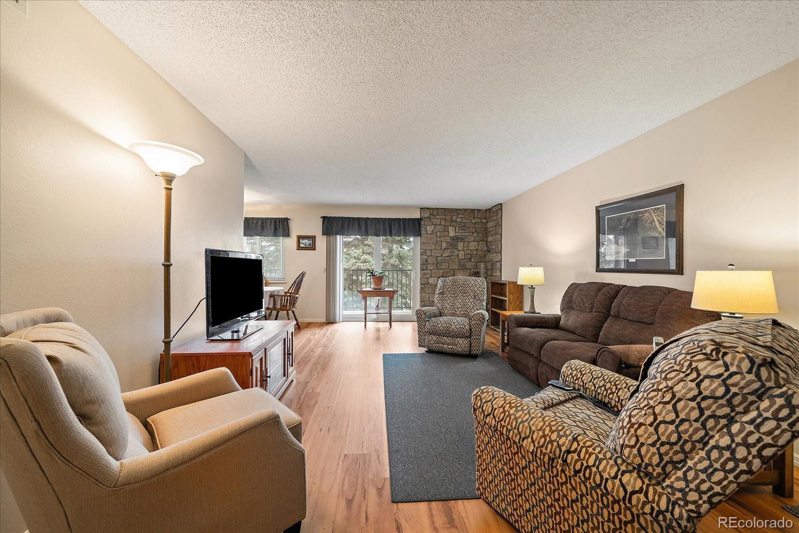 Immaculate 3-bedroom, 2-bathroom condo 1200 SQFT with elevator access in a secure, well-maintained building. Pride of ownership shines throughout this beautifully cared-for Main-floor unit no steps, offering a smart and functional floor plan designed for both comfort and privacy. The open-concept living and dining area is thoughtfully positioned between the Three bedrooms and 2 bathrooms, creating ideal separation for guests or roommates or home office space. The master suite has its own master bathroom with two large closets. Cozy up by the wood-burning fireplace on cool evenings, or relax on the west-facing covered balcony, where mature trees provide natural beauty and a sense of peaceful seclusion. This property has new windows, new furnace and A/C unit, newer appliances and cabinets, flooring, granite counter tops, nothing needs to be done move in ready!!! Additional highlights include underground assigned parking and a private storage closet conveniently located just across the hall. Enjoy an unbeatable location just one block from the RTD bus stop and approximately a quarter mile from Light Rail access, making commuting a breeze. You’ll also appreciate being close to the library, City Hall, and a variety of community amenities. The HOA offers fantastic value, covering water, sewer, trash, building insurance, and pool access.