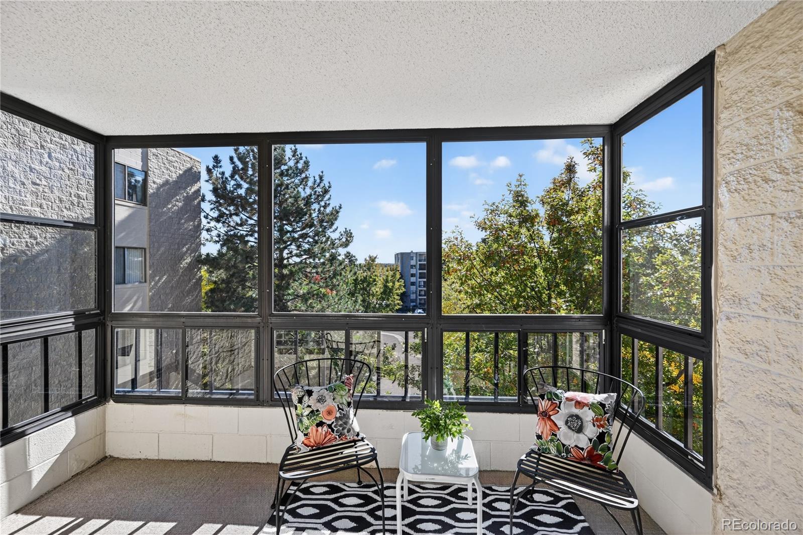 Beautifully Updated and Move-In Ready! This spacious 2-bed, 2-bath condo offers over 1,200 sq ft of easy one-floor living. The floor plan features a bright living and dining area, an updated kitchen with stainless steel appliances, and a private screened lanai (screened-in balcony) overlooking the landscaped grounds. The primary suite fits a king bed, includes a large walk-in closet, and an en-suite bath. The second bedroom and full bath are perfect for guests or an office space. Recent updates include all new paint, carpet, luxury vinyl plank flooring in the kitchens and bathrooms, and new 2-panel Shaker-style solid core interior doors. The unit features an in-unit laundry and includes the washer and dryer. For parking, there is a reserved space in the secure underground garage. For additional storage, the HOA provides a storage closet just down the hall from the unit entrance. **Heather Gardens is Denver’s premier 55+ active community, offering resort-style amenities including an indoor and outdoor pool, hot tub, sauna, fitness center, tennis and pickleball courts, walking trails, and even a 9-hole executive golf course. Residents also enjoy the on-site restaurant, clubhouse, and a wide variety of social clubs and activities. The Seville enclave adds its own community pool and pickleball courts, and a tranquil koi pond. Conveniently located near Cherry Creek State Park, shopping, and dining, this condo offers both relaxation and connection. Don’t miss this 5th-floor gem!