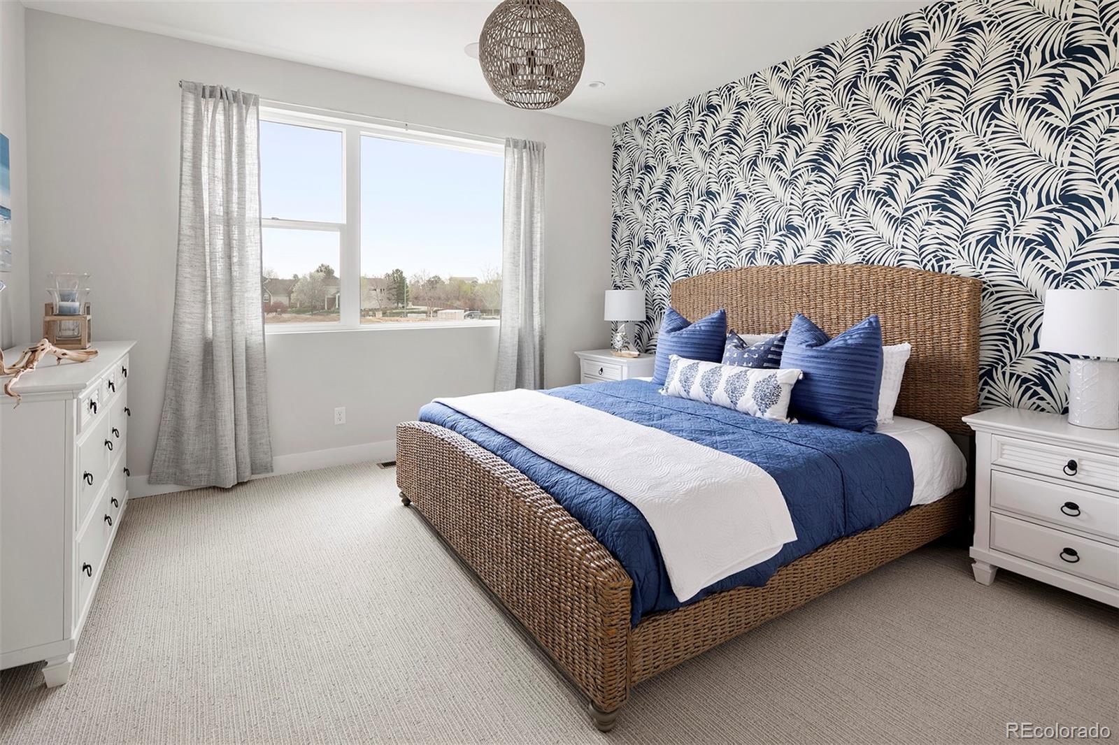 Main-floor primary suite townhome with southern exposure, corner location, and wrap-around front porch overlooking a beautifully landscaped courtyard. Go under contract soon and personalize your finishes! Step into the great room, where abundant windows fill the space with natural light and a gas fireplace creates a warm focal point. The chef’s kitchen features stainless steel appliances, an expansive island, and seamless flow to the dining area, also surrounded by windows with courtyard views. The spacious main-floor primary suite easily accommodates a king-size bed and additional furniture. The accessible 4-piece bath includes double sinks, a shower with bench, and a private water closet, along with an oversized walk-in closet plus an additional bonus closet. The main level is complete with a laundry room, mudroom, coat closet, powder bath, and attached 2-car garage. Upstairs offers two additional bedrooms, including a second primary-style suite with walk-in closet and full bath with double sinks, tub/shower, and enclosed water closet. A third bedroom and full bath, plus a versatile loft ideal for a home office, gaming area, or yoga space, complete the level.Energy efficient with smart home features and EV-ready garage. Built by Colorado-based, family-owned Koelbel Communities in the gated Prelude at TAVA Waters—an “oasis in the city” featuring a private lake, walking paths, mature trees, and a resort-style amenity center with outdoor pool, hot tub with lake views, and state-of-the-art fitness center. Ideally located next to the High Line Canal, less than 5 minutes to Lowry, and minutes to Cherry Creek North, Anschutz Medical Center, downtown Denver, DTC, and DIA. Mortgage rate buy-down incentives available—ask how to lower your monthly payment. Home is under construction; photos, virtual and video tour are of a model home. Home does not come furnished.