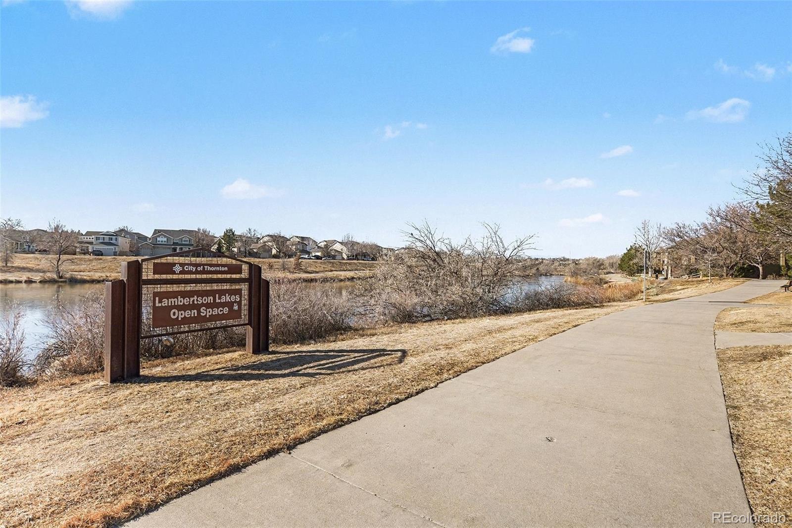 This stand-out, remodeled end-unit townhome backing to a greenbelt is truly a rare find! Situated on a cul-de-sac lot within the community, this home offers a larger backyard that backs up directly to the greenbelt—providing exceptional privacy, peaceful views, and a serene outdoor setting rarely found in townhome living. The unbeatable location is matched by an equally impressive interior. Step inside to a sun-filled, welcoming entry that opens into a spacious and open main-floor living area. The kitchen is a true focal point, featuring an expansive island ideal for prep and entertaining, quartz countertops, sage green cabinetry, stainless steel appliances, and a stylish backsplash. The kitchen flows effortlessly into the open living and dining spaces, creating a light and airy feel and offering seamless access to the private backyard, perfect for indoor/outdoor living. The main floor also includes a chic powder bathroom, a convenient laundry room, and direct access to the attached garage, adding both style and functionality. Upstairs, the bright and sunny staircase leads to two spacious bedrooms, each complete with its own en suite bathroom and walk-in closet, offering comfort and privacy. This updated and contemporary townhome truly stands out inside and out. Located right next to Grange Hall Creek Trail, you’ll enjoy direct access to Lambertson Lakes Park and miles of trails. Living in Thornton means embracing an active lifestyle with abundant parks and recreation, easy commuting, and a wide variety of shopping and dining options nearby. Well located, beautifully finished, and hard to find—this is the one that checks all the boxes.