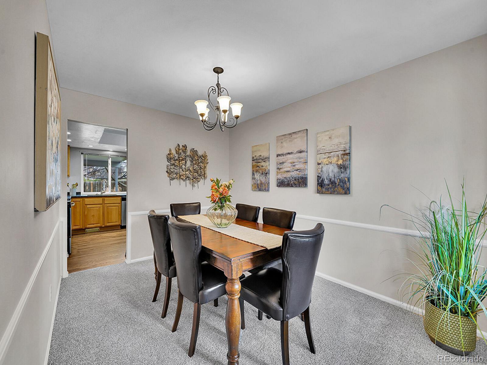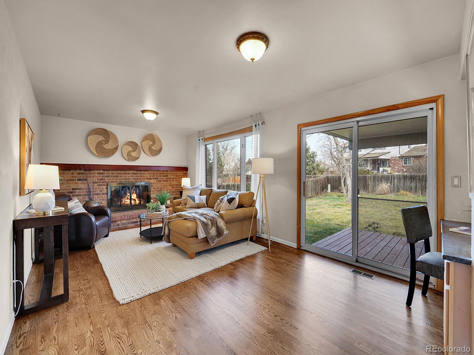Bright, inviting, and set on a generous near quarter-acre lot, this 4-bed, 3-bath Centennial home features timeless mid-century touches, sun-soaked living spaces, and striking mountain views! A spacious front yard framed by mature trees welcomes you, leading to a covered porch ideal for late-night conversations or slow mornings. Just off the foyer, the living room boasts a wall of built-in bookshelves accented by an oversized bay window. Enjoy lively holidays in the formal dining room, or casual bites in the eat-in kitchen, featuring granite countertops, ample warm wood cabinetry, dedicated pantry, and a charming breakfast nook. The heart of the home, the adjacent family room is made for game days and movie nights with a cozy wood-burning fireplace set in original brick surround, window-framed backyard views, and sliding glass doors that open to the patio for easy indoor–outdoor living. A nearby half-bath and laundry with storage complete the main level. Upstairs, the primary suite is designed for relaxation, offering a spacious walk-in closet and a tranquil ¾ en suite with dual vanities and an oversized standing shower. The three additional upstairs bedrooms share a full hall bath, providing flexibility for guests, home offices, or a growing household. Downstairs, the unfinished basement creates room to expand or a space to store seasonal items. In the backyard, enjoy al fresco dining on the covered patio, sunny mornings surrounded by blooming florals, or yard games played on the lush lawn. 2-car garage with workbench for hobbyists! Ideally located in the Arapahoe Highlands near Arapahoe High School, Clarkson Park, Streets at SouthGlenn, C-470, and just 15 minutes to both Chatfield Reservoir and the DTC.