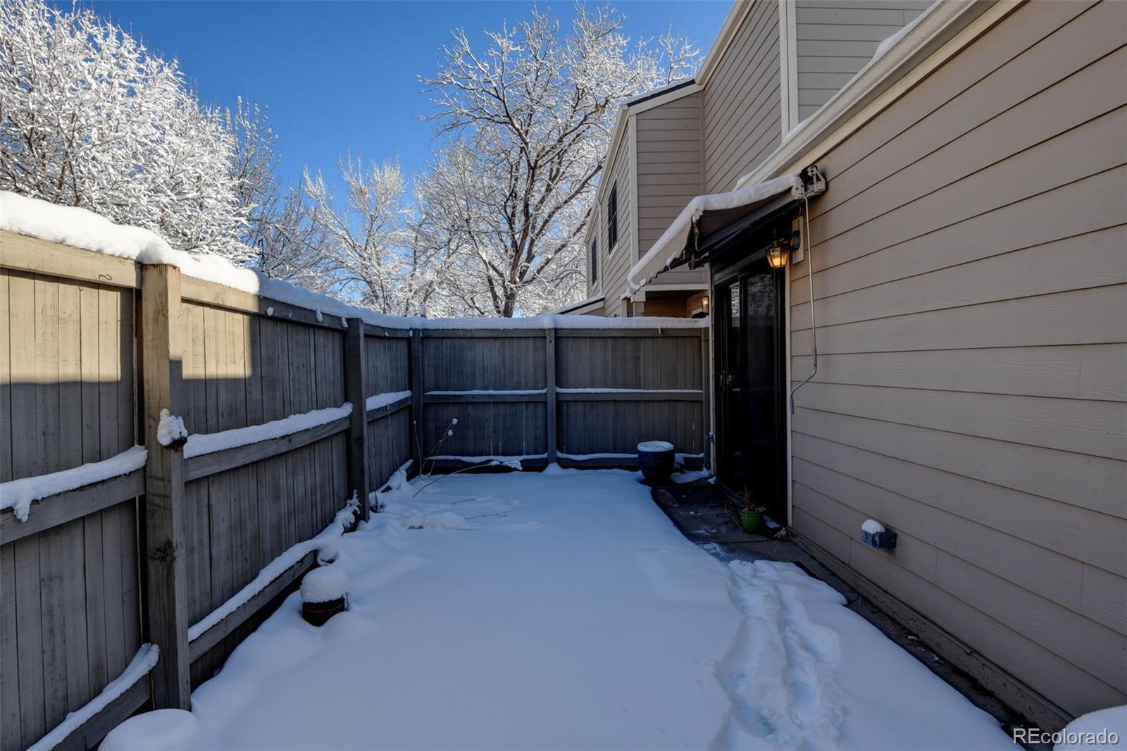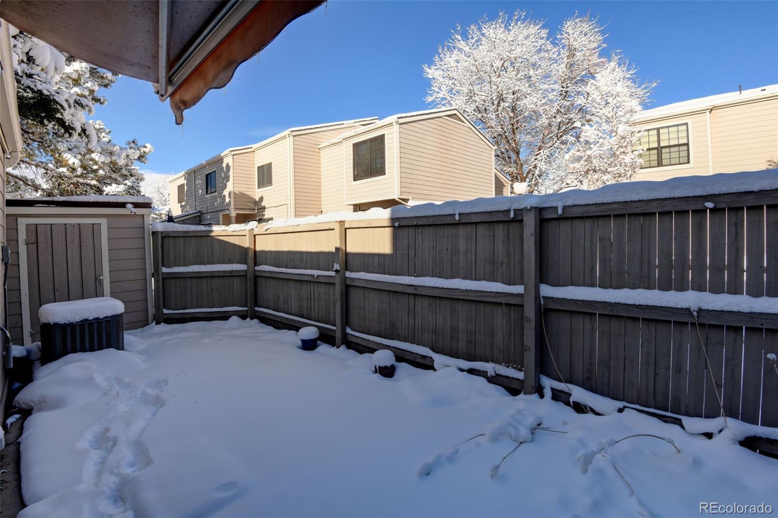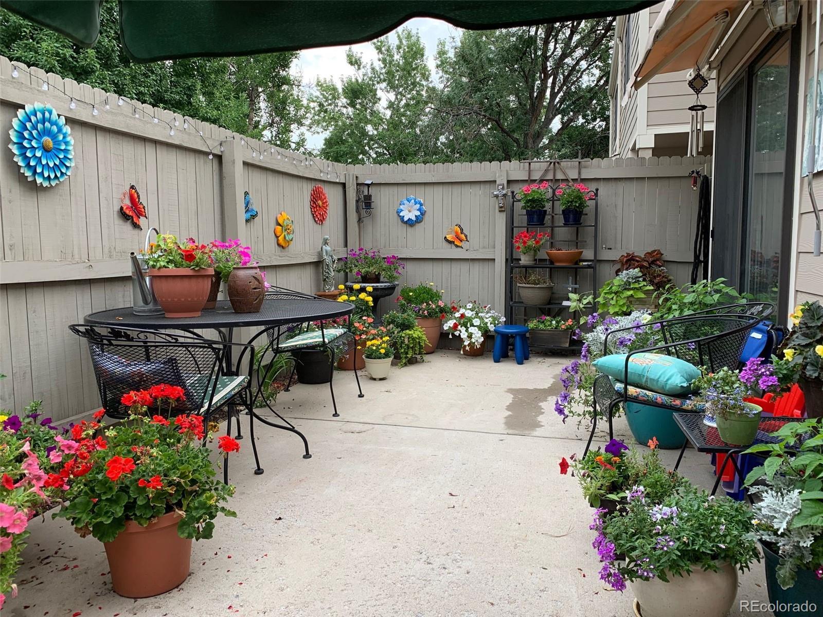 Inviting ranch-style townhome that lives like a detached home! This rare end-unit offers a uniquely quiet living experience with a private entry and no neighbors above. Inside, the layout feels open and airy thanks to vaulted ceilings and lots of natural light. The remodeled kitchen features updated countertops and newer stainless appliances — perfect for anyone who enjoys cooking or entertaining. The dining area flows easily to the large, secluded patio that features a retractable awning creating a great indoor–outdoor living space. There's also an outdoor shed for storage. The primary bedroom offers a comfortable retreat with a walk-in closet and en-suite bath. A generous second bedroom and an additional flex-space is a perfect area for an office, game/play room, den, reading nook. The laundry area (washer and dryer included) includes additional storage to keep things organized. Important updates are already done: New A/C, newer furnace and water heater. An attached garage features TONS of additional storage. The additional reserved parking spot and mail box are just steps from your front door. The home faces a beautifully maintained grassy area. Community perks include a pool, tennis court and clubhouse. This low-maintenance property is convenient to everything: shopping, restaurants, walking trail, park, RTD, and an easy drive to Denver and Boulder. Showings begin Friday, 12/5. Photos uploaded Friday