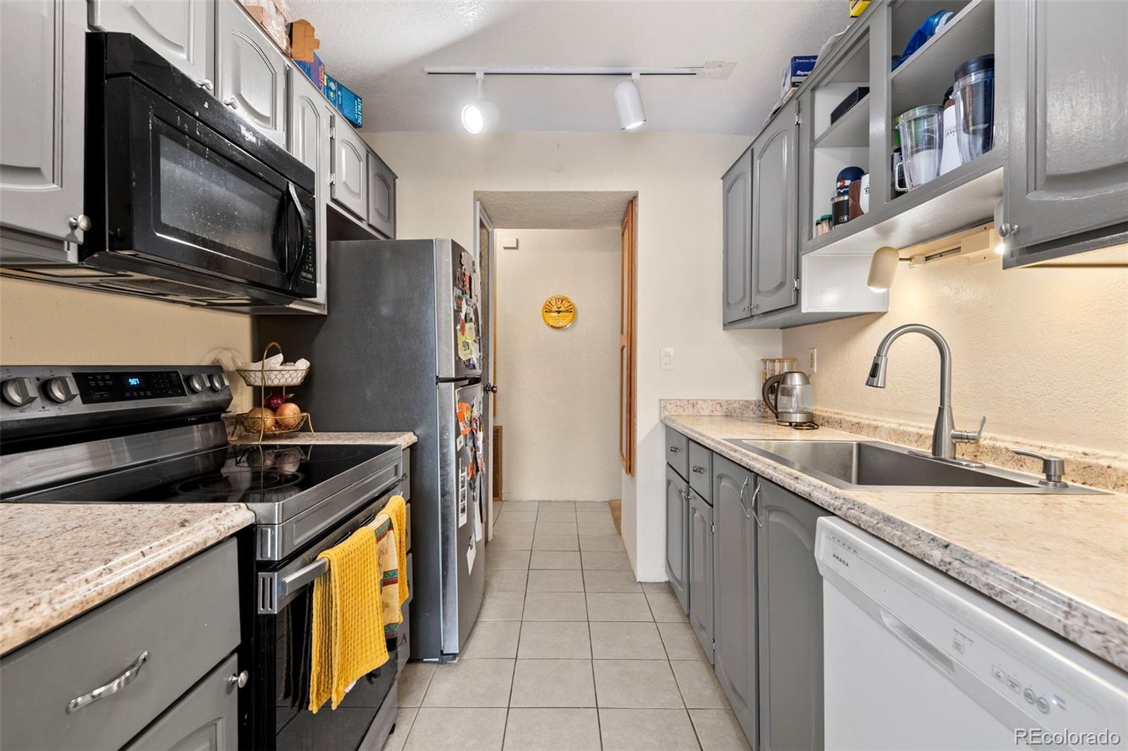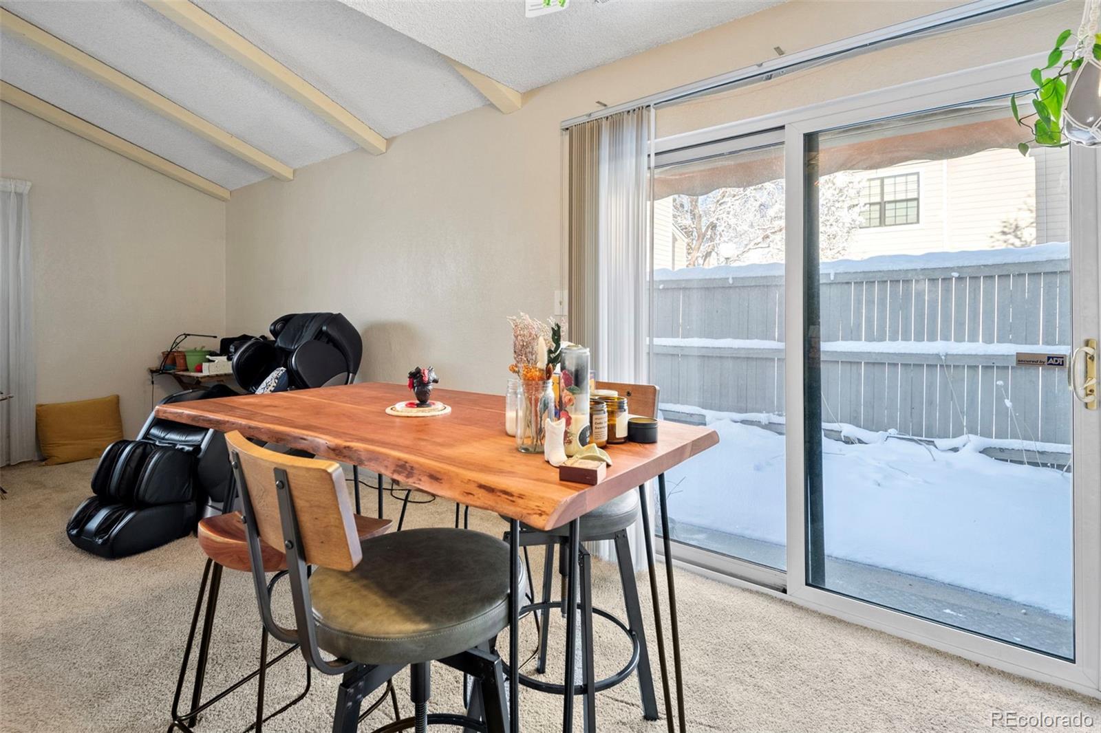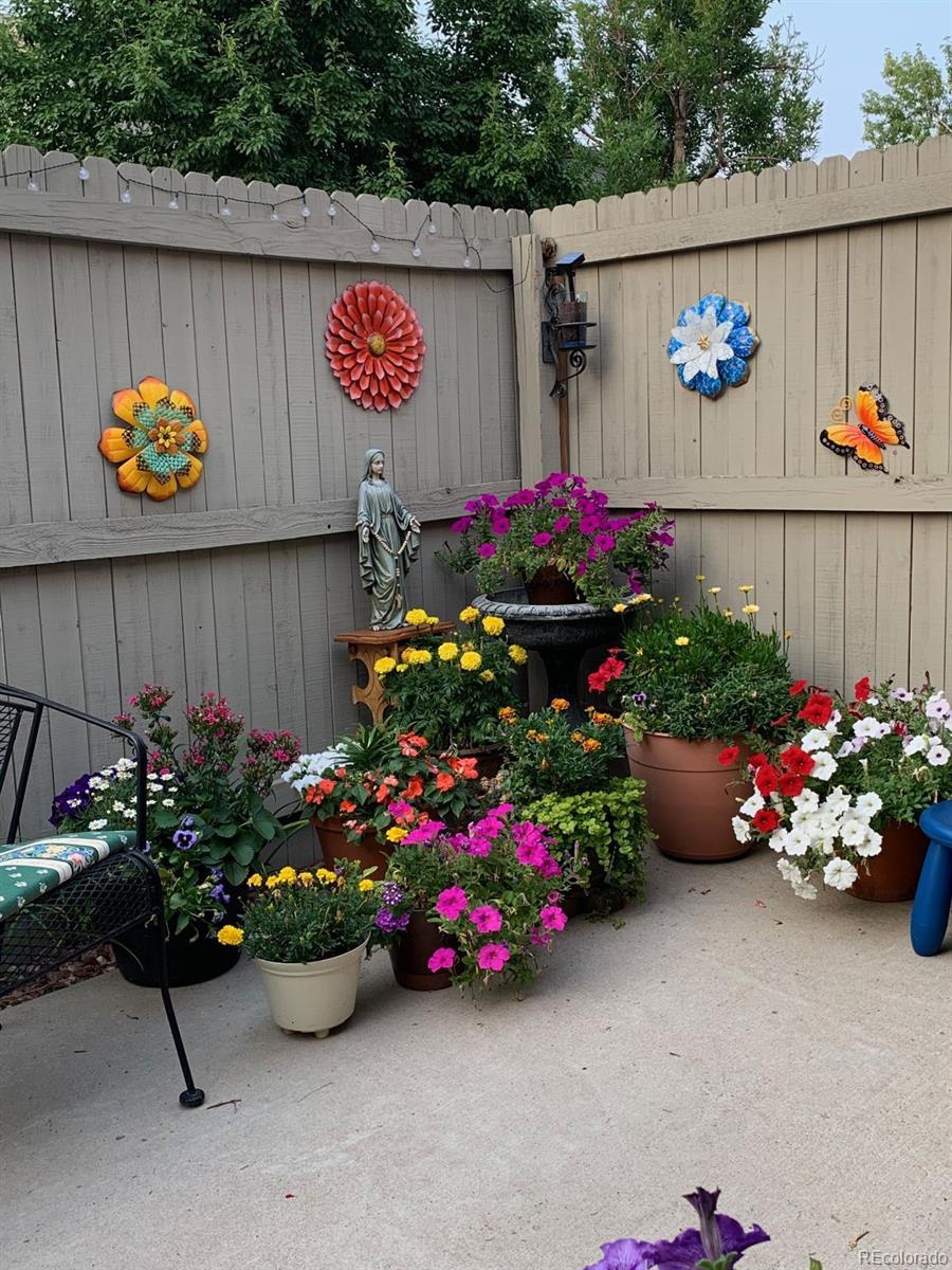Inviting ranch-style townhome that lives like a detached home! This rare end-unit offers a uniquely quiet living experience with a private entry and no neighbors above. Inside, the layout feels open and airy thanks to vaulted ceilings and lots of natural light. The remodeled kitchen features updated countertops and newer stainless appliances — perfect for anyone who enjoys cooking or entertaining. The dining area flows easily to the large, secluded patio that features a retractable awning creating a great indoor–outdoor living space. There's also an outdoor shed for storage. The primary bedroom offers a comfortable retreat with a walk-in closet and en-suite bath. A generous second bedroom and an additional flex-space is a perfect area for an office, game/play room, den, reading nook. The laundry area (washer and dryer included) includes additional storage to keep things organized. Important updates are already done: New A/C, newer furnace and water heater. An attached garage features TONS of additional storage. The additional reserved parking spot and mail box are just steps from your front door. The home faces a beautifully maintained grassy area. Community perks include a pool, tennis court and clubhouse. This low-maintenance property is convenient to everything: shopping, restaurants, walking trail, park, RTD, and an easy drive to Denver and Boulder. Showings begin Friday, 12/5. Photos uploaded Friday
