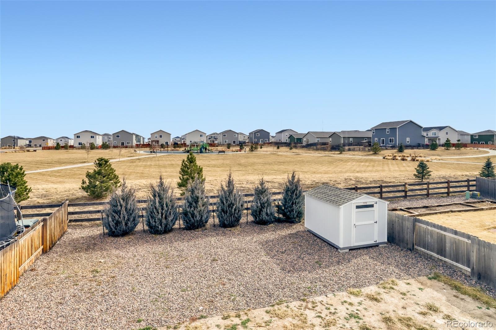 Competitive Price Improvement! Sellers Are Motivated!! Welcome to this well cared for 2021 home in Frederick, offering the rare bonus of a park and trail system just beyond the backyard—perfect for enjoying the outdoors without ever leaving the neighborhood. From the inviting front porch, step into a welcoming foyer and hallway that leads you into the heart of the home. The open-concept kitchen, dining, and living areas are designed for both comfort and connection, featuring a spacious pantry, a convenient main-level powder bath, and an easy flow for everyday living or entertaining. Sliding glass doors open to the patio and fully fenced backyard, where you’ll enjoy serene views of green space, walking trails, and the nearby park. The backyard is thoughtfully designed for low-maintenance living, featuring both an existing patio with a retractable awning and a newly installed concrete slab—perfect for a future hot tub, outdoor seating, or entertaining space—along with a storage shed for lawn and outdoor gear, and an access gate to the green space. The front yard is equipped with installed sprinklers for added convenience and easy upkeep. Upstairs, the primary suite offers a private retreat with an en suite bathroom and a generous walk-in closet. Two additional bedrooms share a full hallway bath, and the upstairs laundry closet adds everyday convenience. Ceiling fans in all bedrooms provide comfort and airflow throughout the year. With its modern layout, peaceful setting, and access to nature right outside your door, this home is ready to be enjoyed. New Roof 2023. Appraised $513,000 in January 2024.