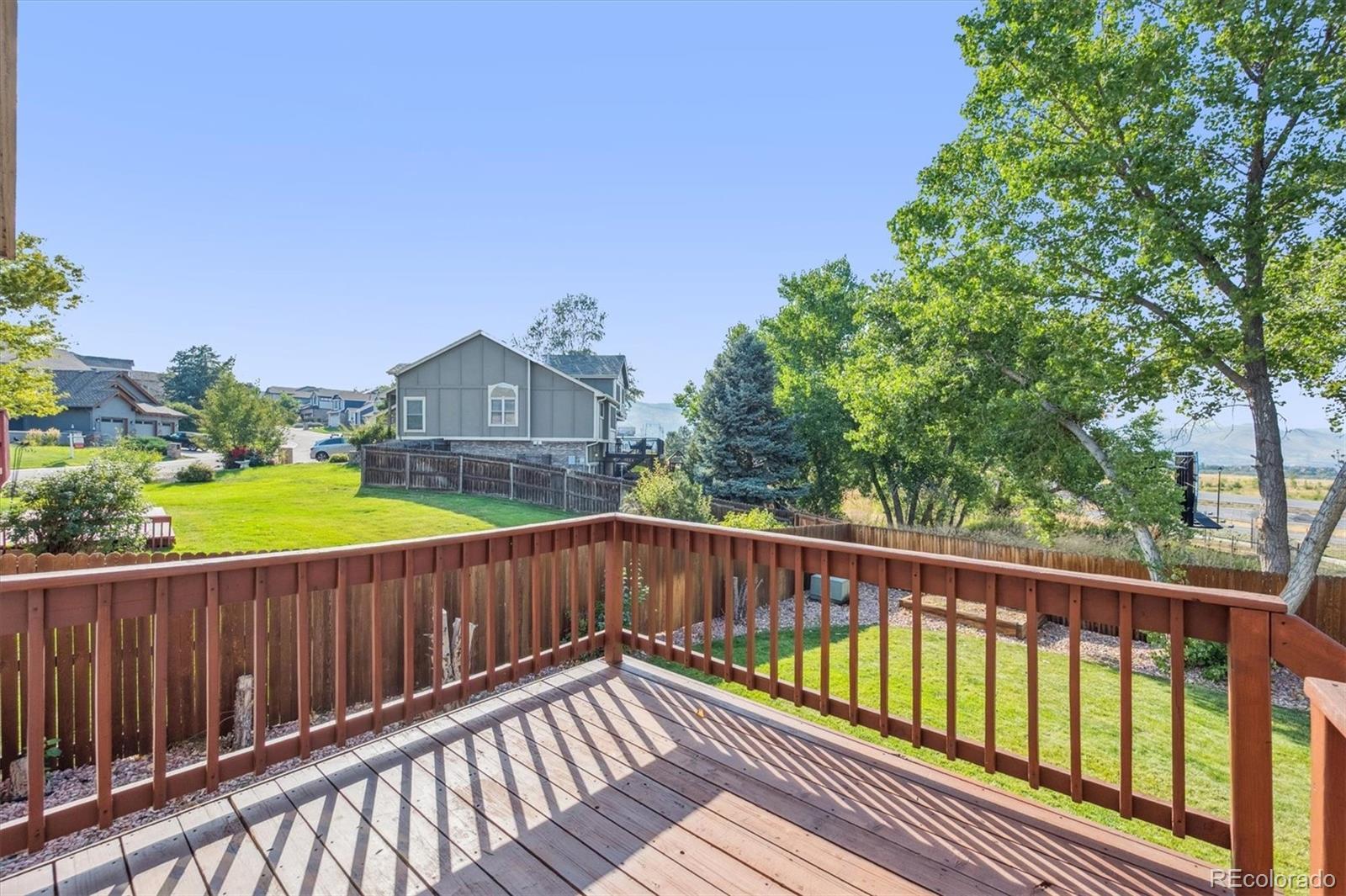 Come see this beautiful, bright & spacious 2-story home! This house sits on a quiet cul-de-sac with a private yard offering mountain views! Step inside to this practical open floor plan, with high ceilings, and loads of natural light. Family room is spacious and open to informal or formal dining options depending on your preference. Kitchen offers white cabinets, granite countertops, stainless steel appliances, an island with eat-in space, and is open to lower living room. Living room is open with a cozy fireplace, and a sliding door to the large low maintenance fully fenced pet and kid friendly yard! On the lower level you’ll also find a spare bedroom with a ¾ bath located just off of the 2 car attached garage. Conveniently located laundry room fits side by side, washer & dryer included. Upstairs is the large private primary bedroom with ensuite bath! Primary bath offers double vanities, spacious walk-in shower, a toilet room, and a walk-in closet. Two secondary bedrooms and a full hall bath. Unfinished full basement has great potential! Live close to shopping, dining, schools, and trails, with quick easy access to I-70, Golden, and Denver. Don't miss this impressive home that has been beautifully maintained and loved! Come see today!