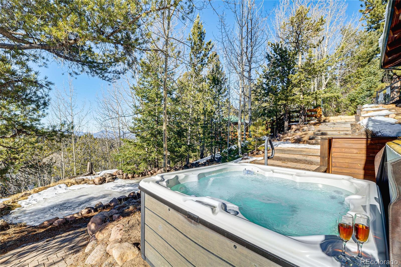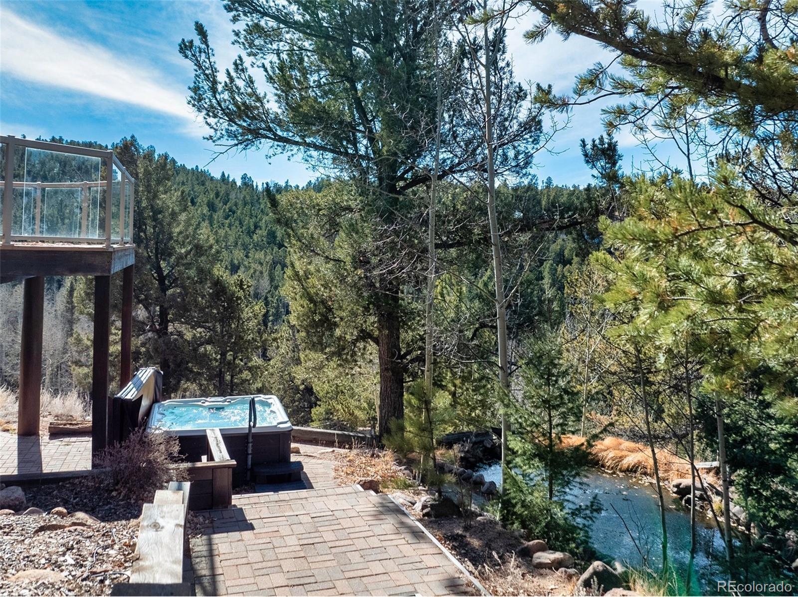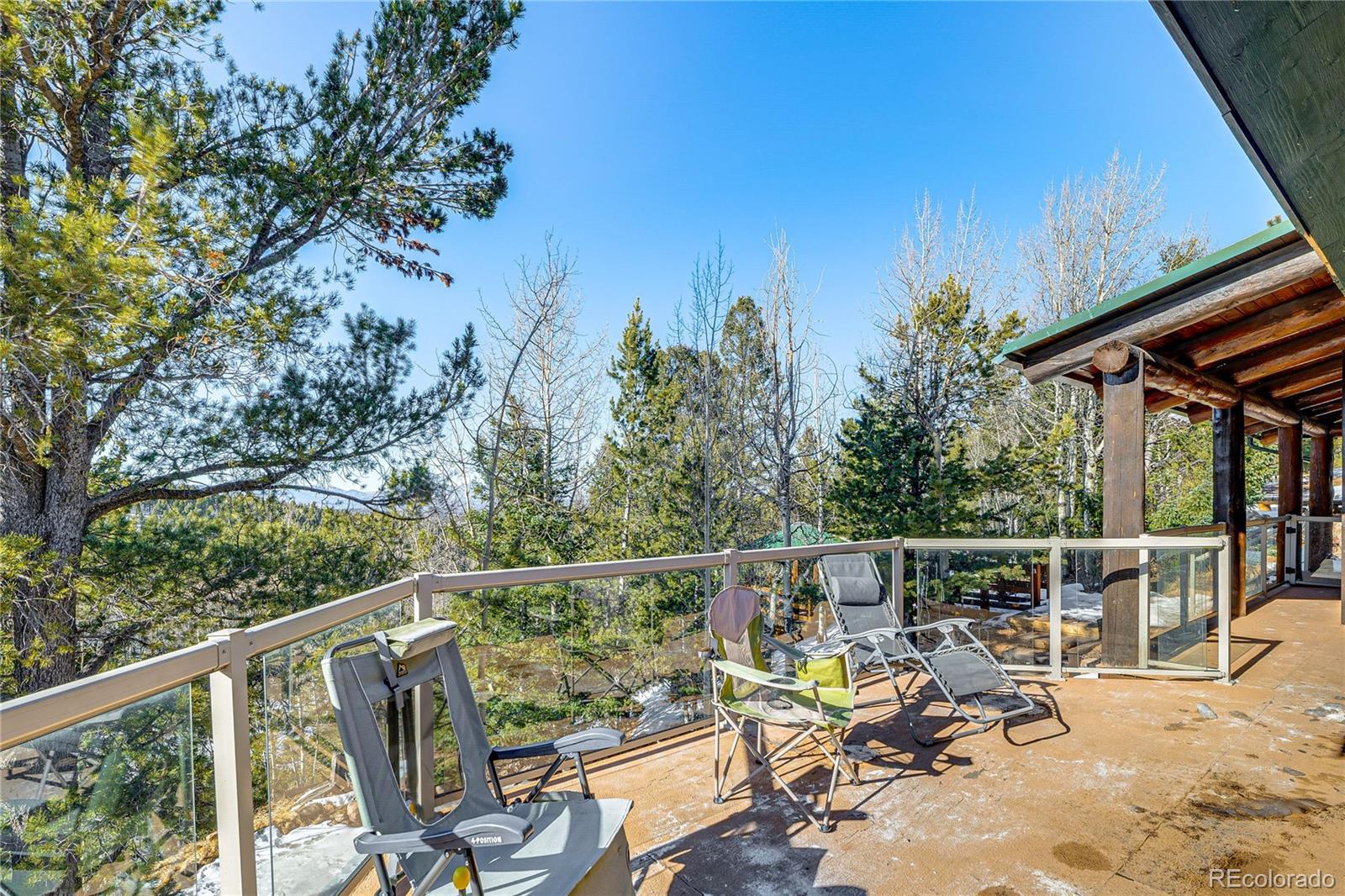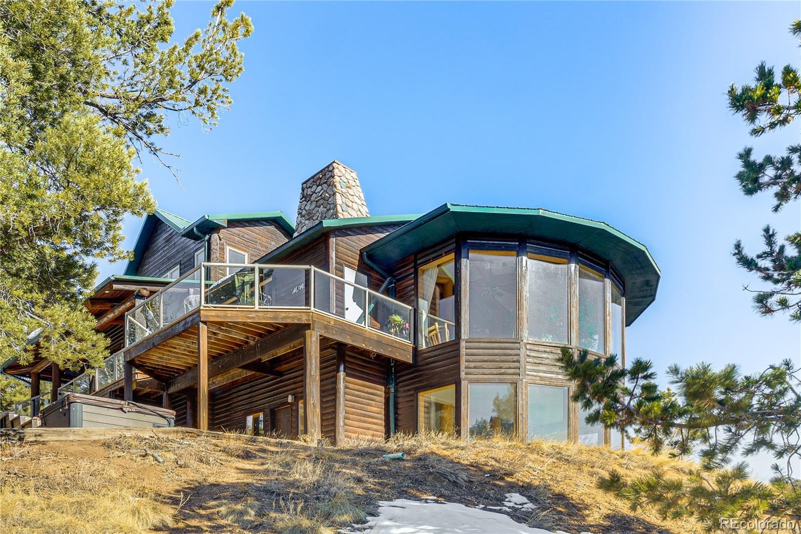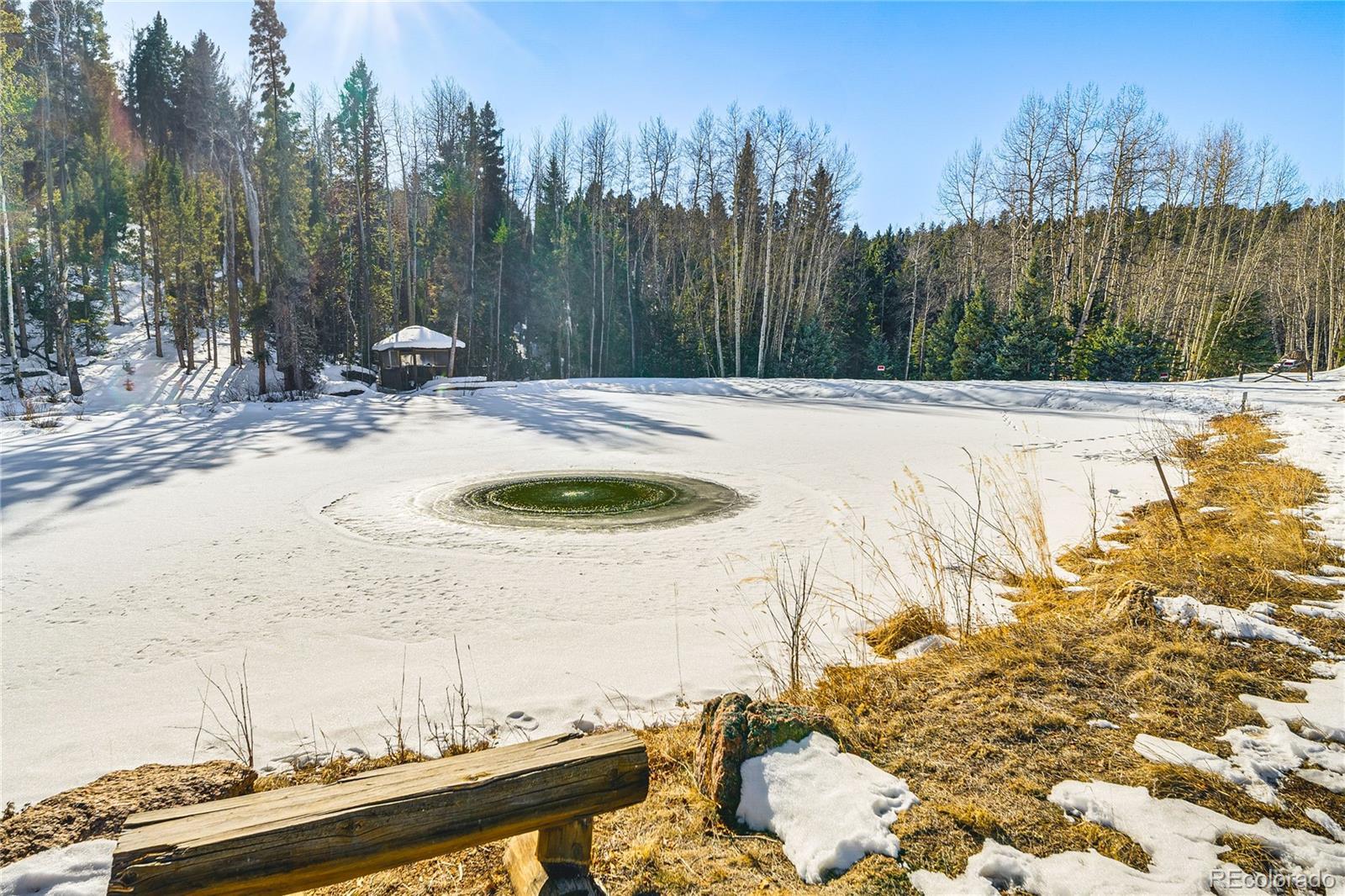 Amazing, custom mountain log home, overlooking your own personal pond w/water rights! This is a turnkey property, set-up as a successful short term rental business! 12 inch log construction, open beams & soaring great room floor plan. Living area boasts soaring beamed ceilings, & a wood-burning fireplace w/ log mantle. Great room is adjacent to an incredible sunken, sunroom, overlooking the large pond! Commercial kitchen equipped w/ Subzero refrigerator, new commercial Zline 6 burner gas stove/oven w/ griddle & commercial hood, beverage refrigerator; counter-bar island seating. Main level master suite, w/ walkout to the deck, attached 5 pc. bath, new walk-in custom shower, plus a claw foot tub. New interior paint, light fixtures, fans, new boiler system, & exterior stain recently completed. Main level laundry, mud room, & 3 car oversized garage. 2 upper level bedrooms nicely appointed, one of the guest rooms has it's own 1/2 bath attached. Upper level addt'l 5 pc. guest bathroom available on this level. Expansive lower level w/ rec room area, + large family room, walkout to the lower patios & new hot tub. 2 large storage rooms also complete this level. Windows surround this room making this a wonderful entertaining area. Perimeter decks include tempered glass panels never obstructing views while picnicking outdoors! Paver stone patios, walkways, paths & garage apron; outdoor fire-pit, gazebo picnic area, trails & hiking throughout the parcel! Property INCLUDES the WATER RIGHTS from the spring fed pond, multiple water feature ponds plumbed for the enjoyment of the sounds of trickling water! Outdoor entertaining is key to this home! South and Western exposure, making solar gain a key aspect in this comfortable home, which also includes hot water in floor & baseboard heating. Located only 10 minutes from Divide and 20 minutes to Woodland Park. Just 1.5 hrs from snow skiing, 30 minutes from trophy trout fisheries, and Mueller State Wildlife Park is just one ridge away!
