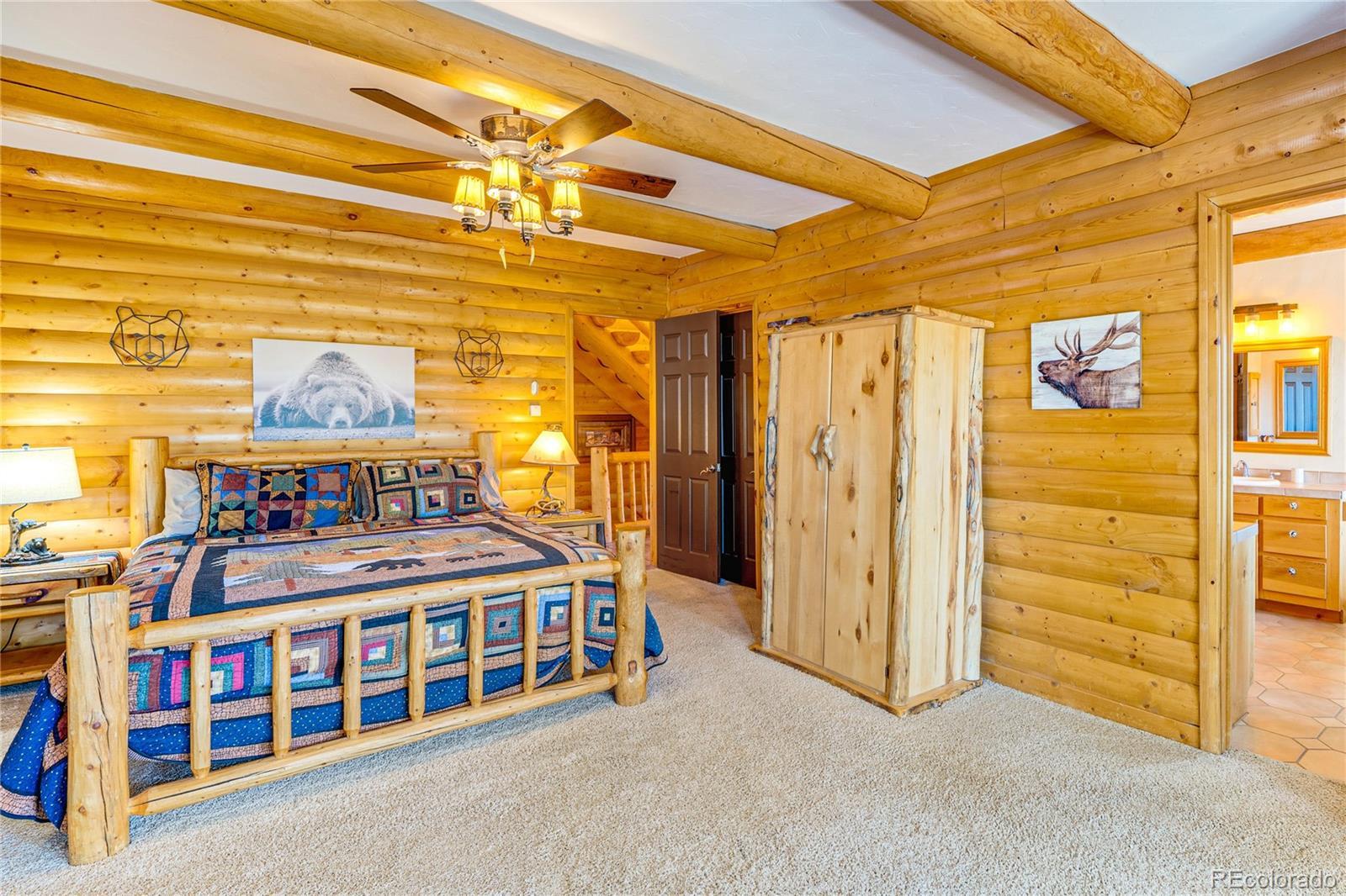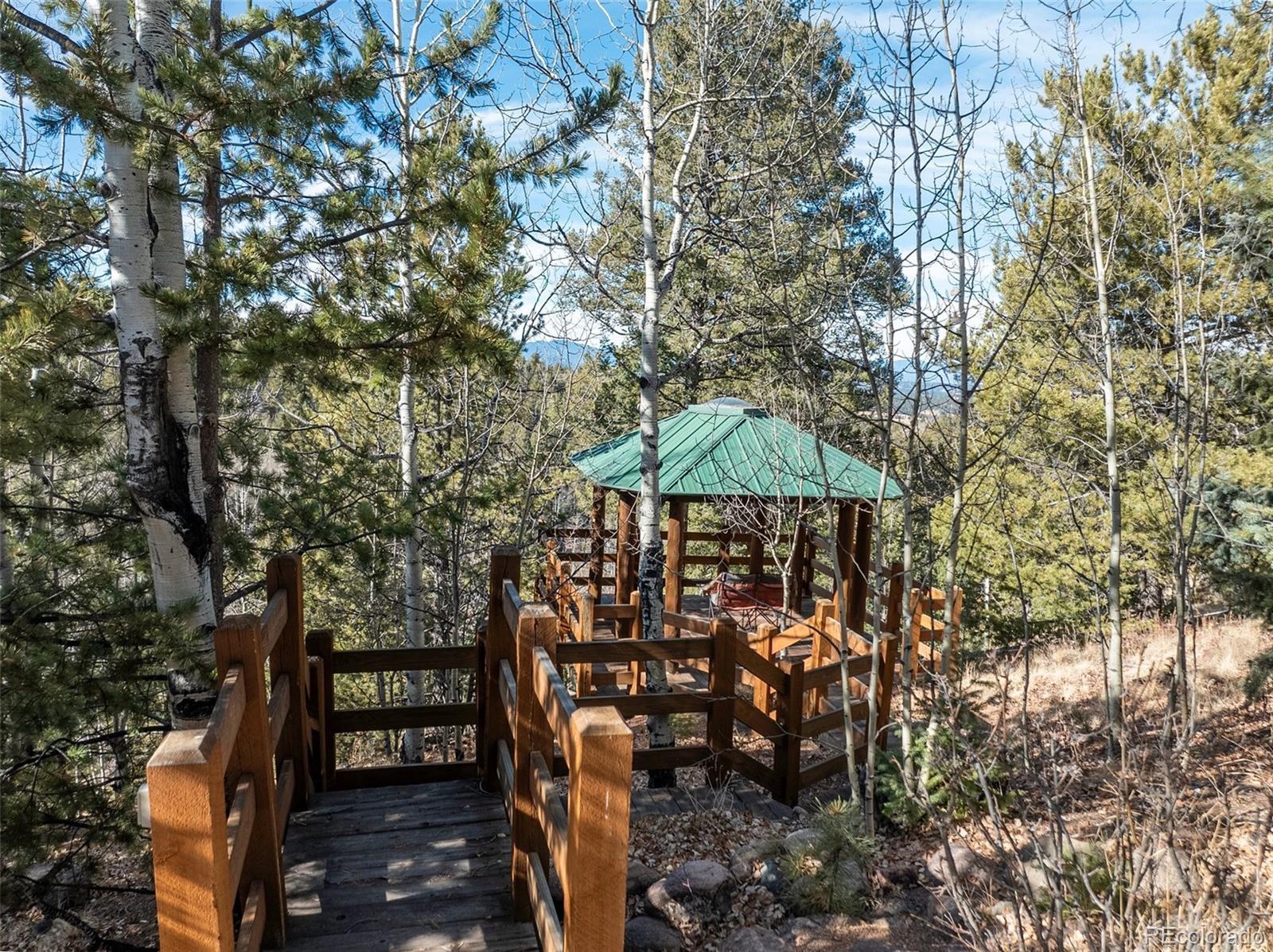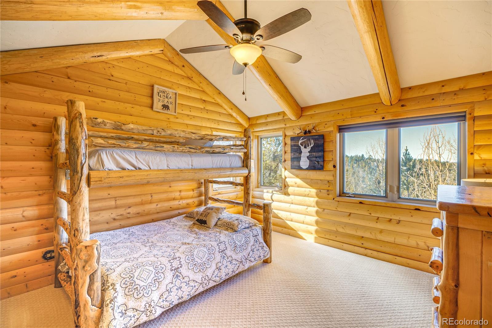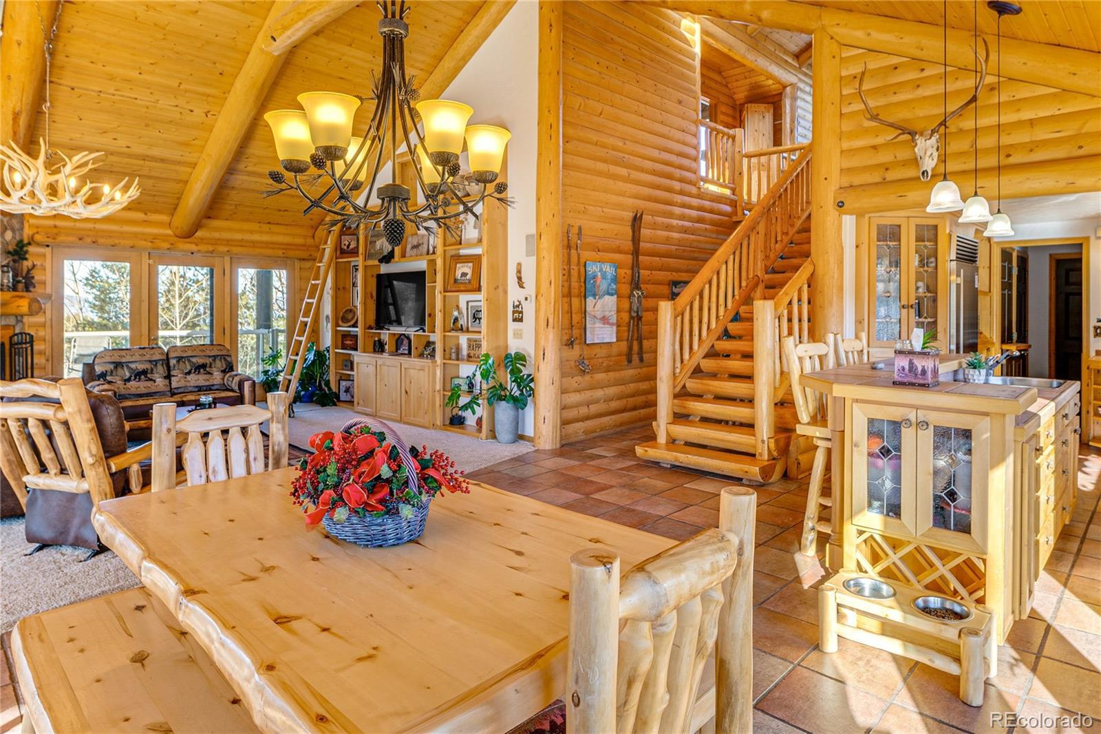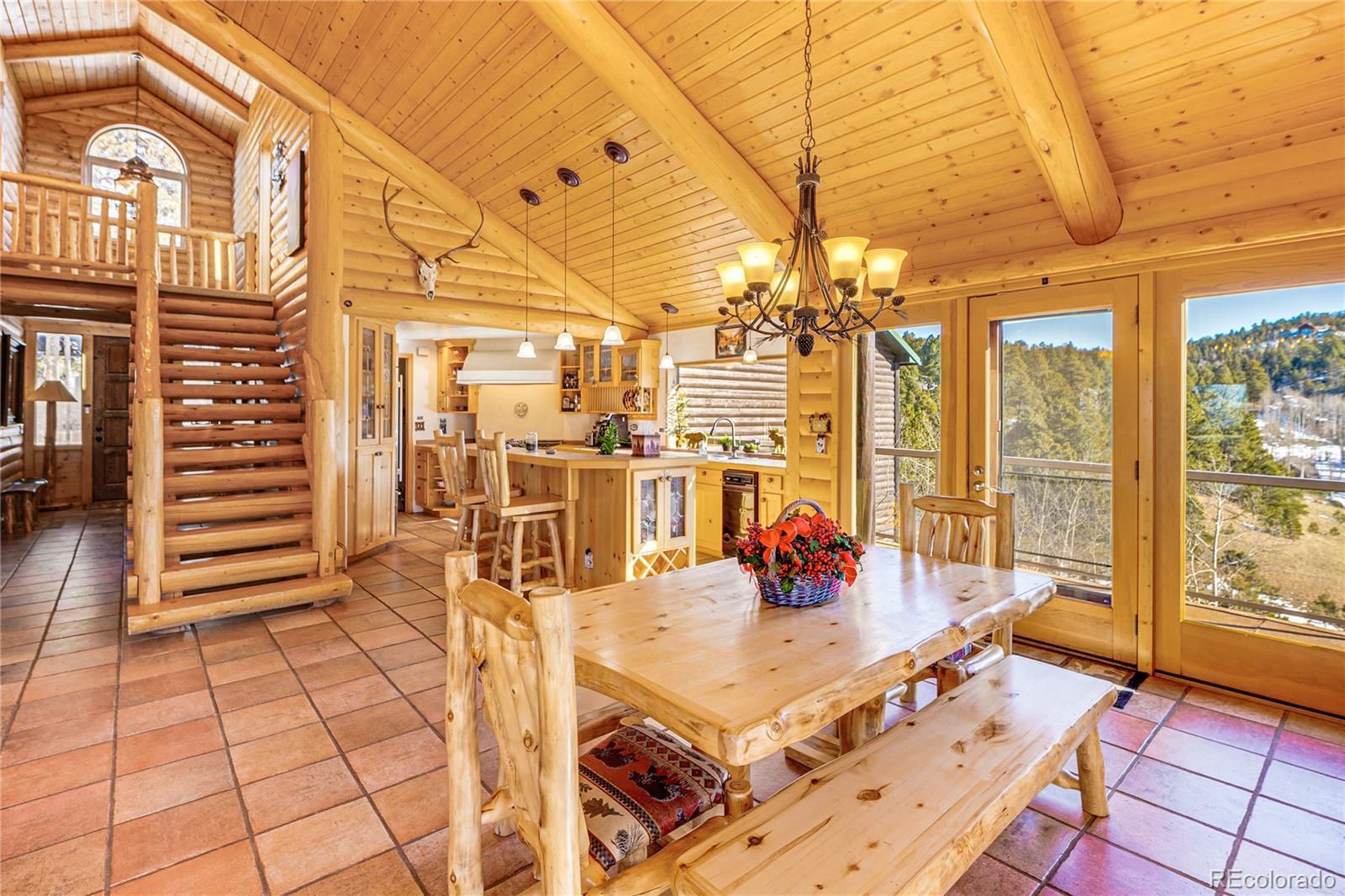 Amazing, custom mountain log home, overlooking your own personal pond w/water rights! This is a turnkey property, set-up as a successful short term rental business! 12 inch log construction, open beams & soaring great room floor plan. Living area boasts soaring beamed ceilings, & a wood-burning fireplace w/ log mantle. Great room is adjacent to an incredible sunken, sunroom, overlooking the large pond! Commercial kitchen equipped w/ Subzero refrigerator, new commercial Zline 6 burner gas stove/oven w/ griddle & commercial hood, beverage refrigerator; counter-bar island seating. Main level master suite, w/ walkout to the deck, attached 5 pc. bath, new walk-in custom shower, plus a claw foot tub. New interior paint, light fixtures, fans, new boiler system, & exterior stain recently completed. Main level laundry, mud room, & 3 car oversized garage. 2 upper level bedrooms nicely appointed, one of the guest rooms has it's own 1/2 bath attached. Upper level addt'l 5 pc. guest bathroom available on this level. Expansive lower level w/ rec room area, + large family room, walkout to the lower patios & new hot tub. 2 large storage rooms also complete this level. Windows surround this room making this a wonderful entertaining area. Perimeter decks include tempered glass panels never obstructing views while picnicking outdoors! Paver stone patios, walkways, paths & garage apron; outdoor fire-pit, gazebo picnic area, trails & hiking throughout the parcel! Property INCLUDES the WATER RIGHTS from the spring fed pond, multiple water feature ponds plumbed for the enjoyment of the sounds of trickling water! Outdoor entertaining is key to this home! South and Western exposure, making solar gain a key aspect in this comfortable home, which also includes hot water in floor & baseboard heating. Located only 10 minutes from Divide and 20 minutes to Woodland Park. Just 1.5 hrs from snow skiing, 30 minutes from trophy trout fisheries, and Mueller State Wildlife Park is just one ridge away!