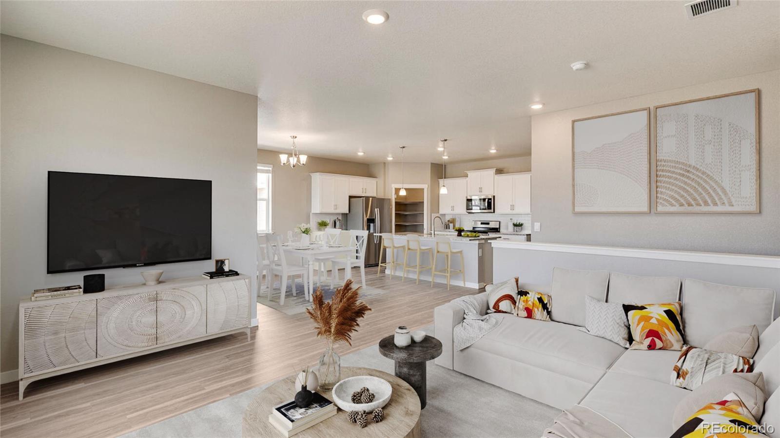 Desirable Ranch Plan with Covered Entry and Back Porch, and a 3 Car Garage! Prestigious Douglas County Schools! 4 BR, 2 BA with open flow between great room, dining, and kitchen. Soothing decor features White cabinetry with crown molding, beautiful granite kitchen counters with subway tile back splash, stainless appliances, plank flooring on most of the main floor plus quartz bath countertops and tile floors. This home offers an extensive list of features including 8' front door, 2 panel interior doors and craftsman style trim, A/C, front yard Xeriscape, 8' tall garage door, plus Smart home features: keyless entry, video doorbell, Smart garage door openers, lighting, thermostat, and Smart speaker! Deako customizable lighting switches! ***Estimated Delivery Date: February. Photos are representative and not of actual property***
