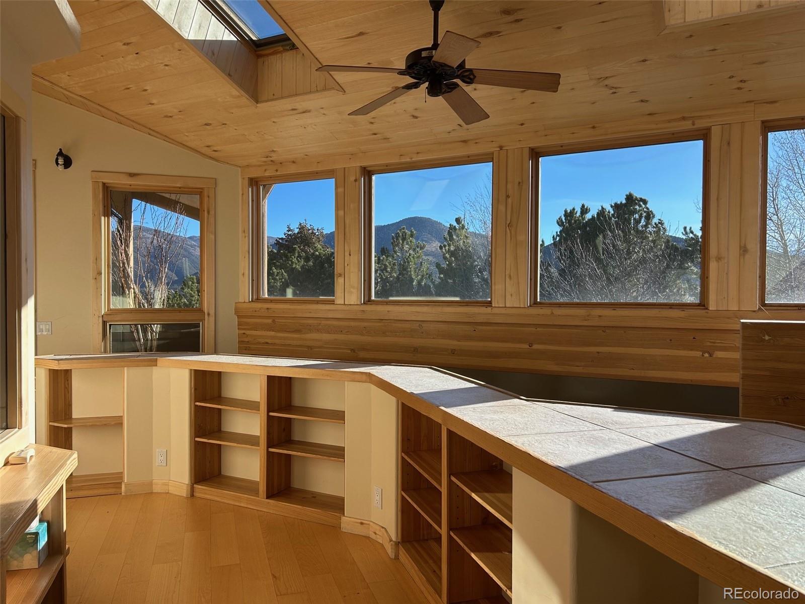 NEW SOLAL PANELS! 7.82 augmentation units!! This exceptional one-of-a-kind Santa Fe-style residence offers an extraordinary blend of privacy, craftsmanship and breath-taking mountain views from every angle. Situated on 3.5 acres, with an augmented well that allows for up to 2 heads of livestock and watering 14,810 sq. ft. of lawn & garden, well over the designated space. Inside you will find spacious open living space: starting with the gracious entry way. Ideal for entertaining, the kitchen has an expansive open dining gathering area with sweeping mountain views and glass doors that lead to a large stained concrete patio. A chef's dream, the kitchen offers wide granite countertops, alder wood cabinetry, double ovens, a copper farm-house sink, on demand hot water tap, large gas grill and high-end stainless steel appliances. 2 bedrooms and a full bath are nestled behind the kitchen and dining area. Down a small flight of stairs there is a large living room with wood stove that sits in a stone alcove, along with the laundry/utility room and another bathroom. Off the living room is a beautiful sunroom for plants, or it can be used as a second entry way from the garage. Downstairs is a second utility room and a very large dry storage area. Up the stairs you will find the primary suite that features a balcony, large walk-in closet, 5 piece bathroom and a wonderful loft/office space with built-ins. You will notice the home features many nooks, crannies, ample closet and storage space throughout. Let's not forget the outside! This property has an extremely unique privately walled patio-with drip irrigation, perennials, hot tub, 3 pergolas, and metal work. Perfect for taking in sunsets, this patio is a magical area for all your festivities. Home also has an oversized three car insulated attached garage with utility sink and workspace area. Don't miss the large RV garage in the back! In-floor radiant heat, central vac, exposed wood beams.