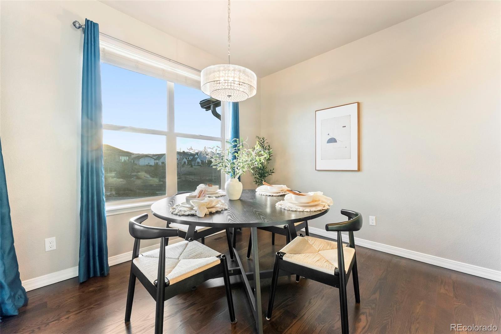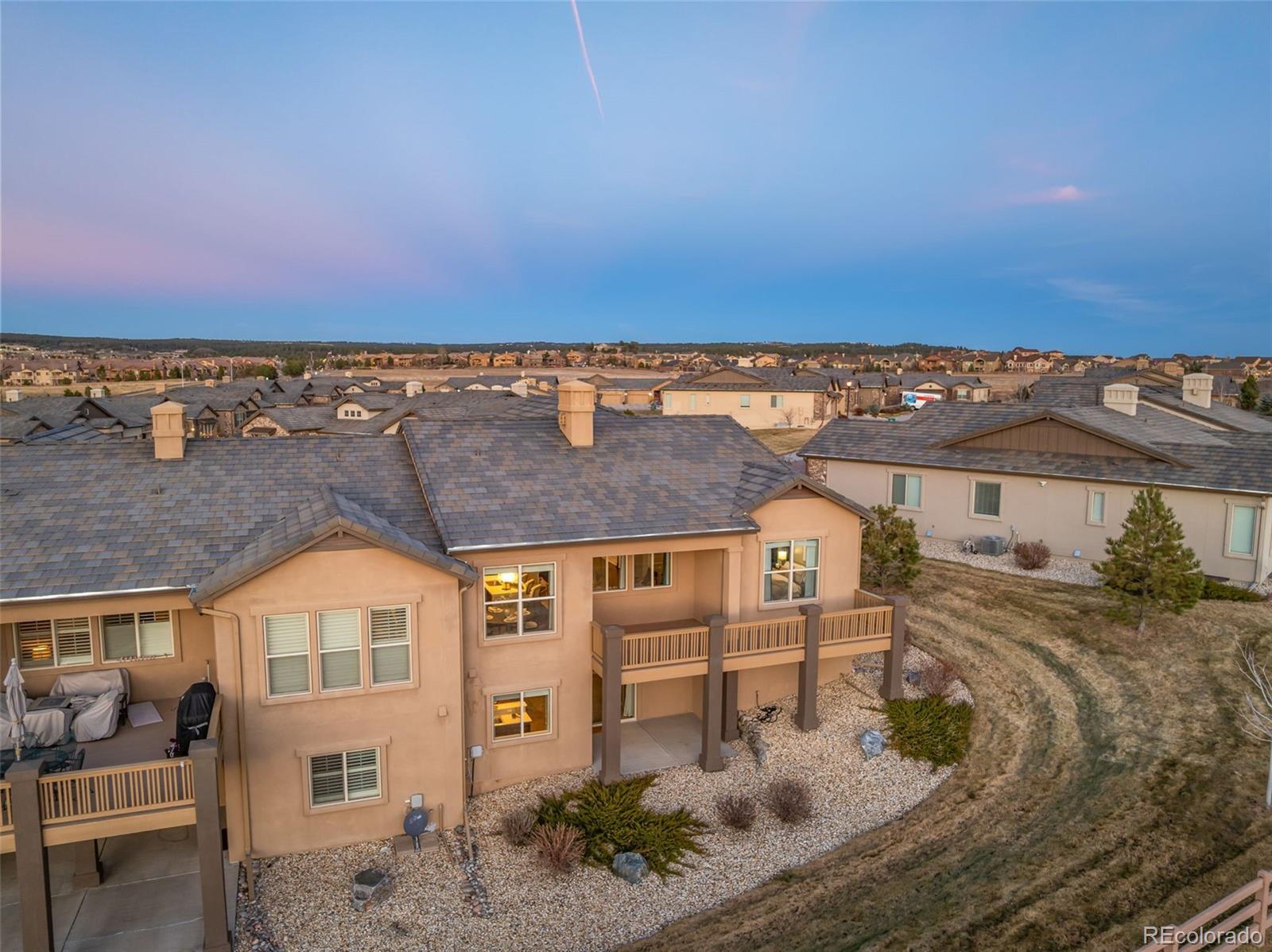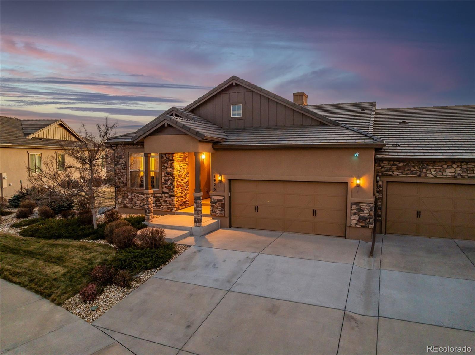 Immaculately maintained, low-maintenance patio home in the coveted Village of Molise in Flying Horse, featuring a walkout basement, highly upgraded interior finishes, and stunning mountain views. Step inside to the open-concept main level that features a bright and welcoming living area with a gas fireplace and large windows that fill the space with natural light. The gourmet kitchen is a standout with stylish two-tone cabinetry, quartz countertops, stainless steel appliances (including a gas range), a pantry, and a curved island perfect for gathering and conversation. Enjoy breathtaking mountain views from the covered back deck, which comfortably fits outdoor seating and includes a gas line ready for grilling. Two bedrooms are conveniently located on the main level, including the spacious primary suite featuring a spa-like bathroom and an oversized walk-in closet. The fully finished walk-out basement adds exceptional flexibility and includes a wet bar with quartz countertops and a mini beverage fridge. This level offers ample space for entertaining, hosting guests, or creating a private retreat. An additional room off the family area is large enough for a baby grand piano, home office, or hobby space. Two bedrooms and a full bathroom boasting two sinks complete the lower level. Step outside to the walk-out patio for an additional private outdoor living area. Note the EV charger in the garage for electric vehicles. Located within a couple of minute walk to The Club at Flying Horse (club membership is an additional cost). Living in Flying Horse means access to exceptional amenities: two award winning golf courses, fitness center, spa, swimming pools, tennis courts, walking and biking trails, on-site dining, a hotel and more. Plus, the surrounding area offers an abundance of nearby restaurants, shopping, an outdoor amphitheater, and conveniences just outside the community. Zoned to award winning D20 schools- this is a must see!