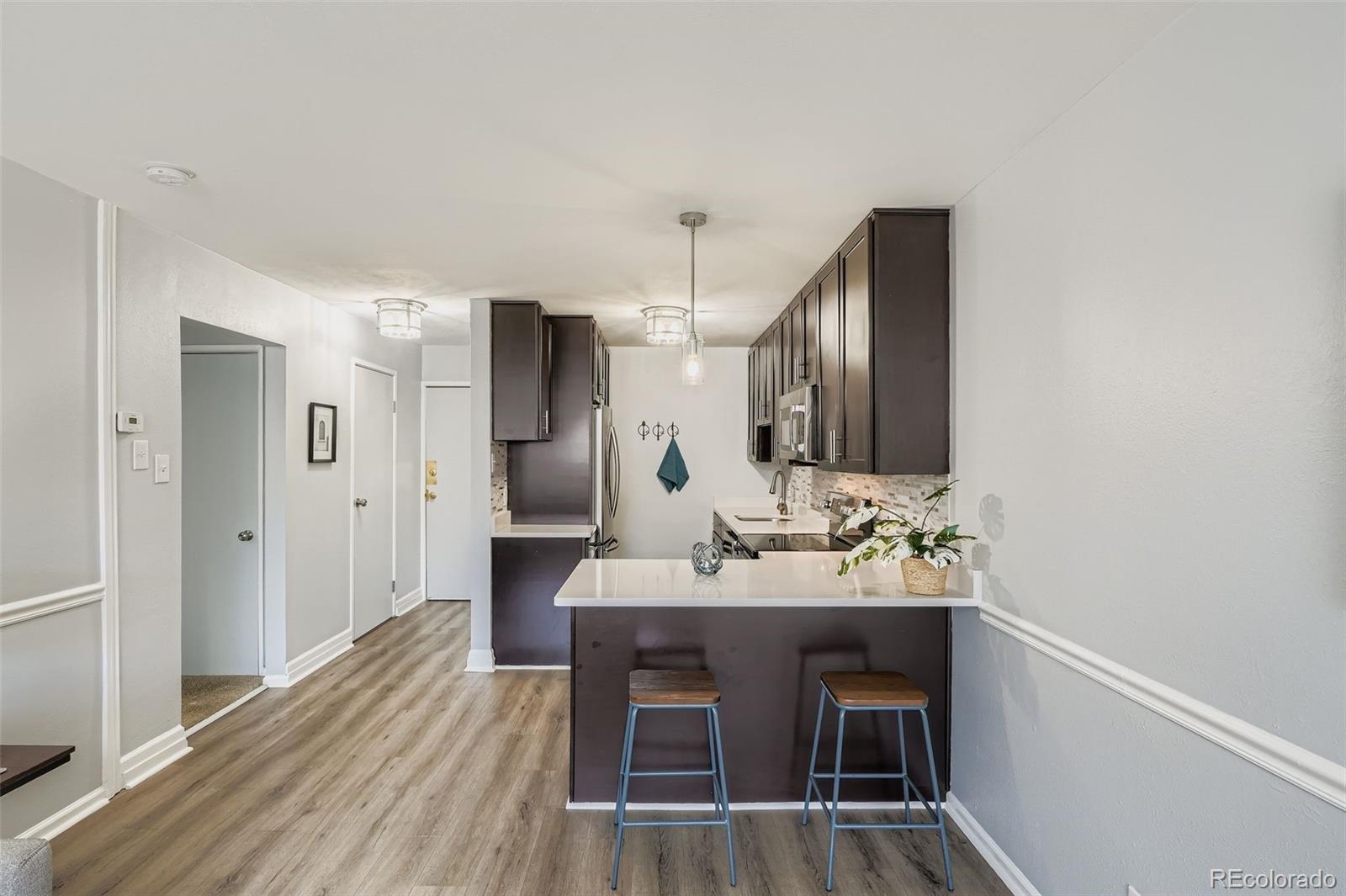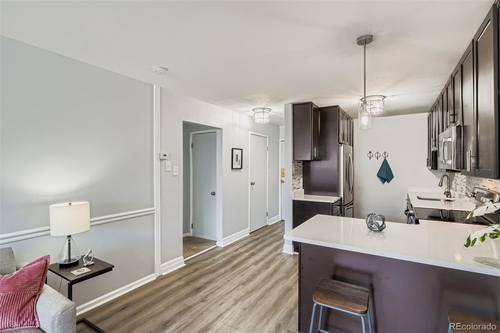 Move-in ready in the heart of Capitol Hill! Thoughtfully designed open floor plan featuring a spacious living area, dining room, and a beautiful eat-in kitchen complete with ample cabinetry, pantry space, and newer appliances all on the top floor! The bathroom has been tastefully updated, and the bonus vanity/office/flex room is a standout feature—offering an entire extra space to get ready, work, or personalize to your needs. You have your own in-unit, large storage room and a rare deeded end-spot parking space! The building’s community is warm, welcoming, and takes pride in maintaining this charming property, and has a low HOA. Minutes from bike lanes, public transportation, Cheesman Park, King Soopers, Safeway, Whole Foods, Trader Joe’s, Botanic Gardens, and countless restaurants and coffee shops makes this the ideal location.
