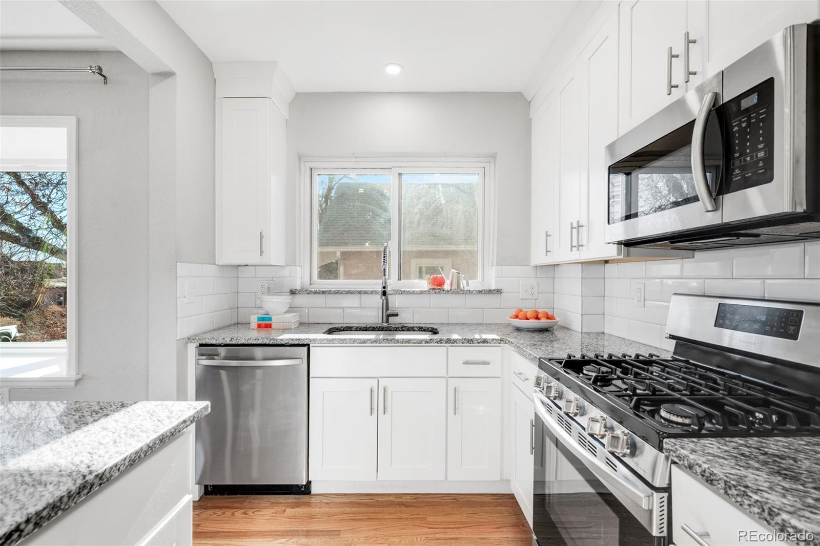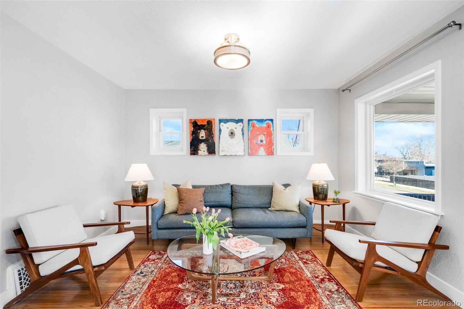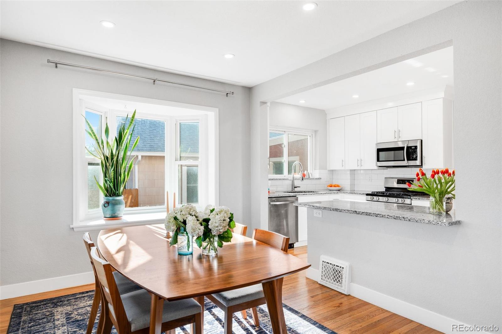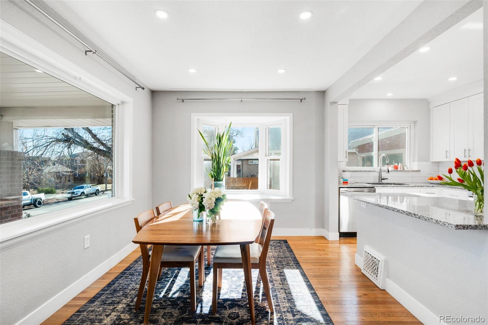 Welcome to this beautifully remodeled bungalow in Denver’s sought-after Sunnyside neighborhood, where thoughtful design and everyday livability meet an exceptional location. Natural light fills the home, highlighting an open-concept layout ideal for both daily living and entertaining. The reimagined kitchen features stainless steel appliances, updated cabinetry, and a generous peninsula that opens to the dining area. Two bedrooms and a full bathroom are located on the main level, along with a rare and versatile main-floor media room, sunroom, office, or den. The fully finished basement adds valuable living space with a spacious bedroom and bathroom, a dedicated wine room, and a large open area perfect for a media room, game room, or guests. Outdoors, enjoy a fully fenced backyard designed for entertaining, complete with multiple seating areas, mature landscaping, and vibrant rose bushes that bloom through the summer and fall. An oversized two-car garage offers exceptional storage and workspace, complemented by a driveway that accommodates two additional vehicles—an uncommon feature in this location. Walk to neighborhood shops, eateries, and coffee spots, as well as Rocky Mountain Lake Park and its scenic walking path. Just minutes from downtown Denver with easy access to I-70 and I-25, this home offers the perfect blend of neighborhood charm and urban convenience.