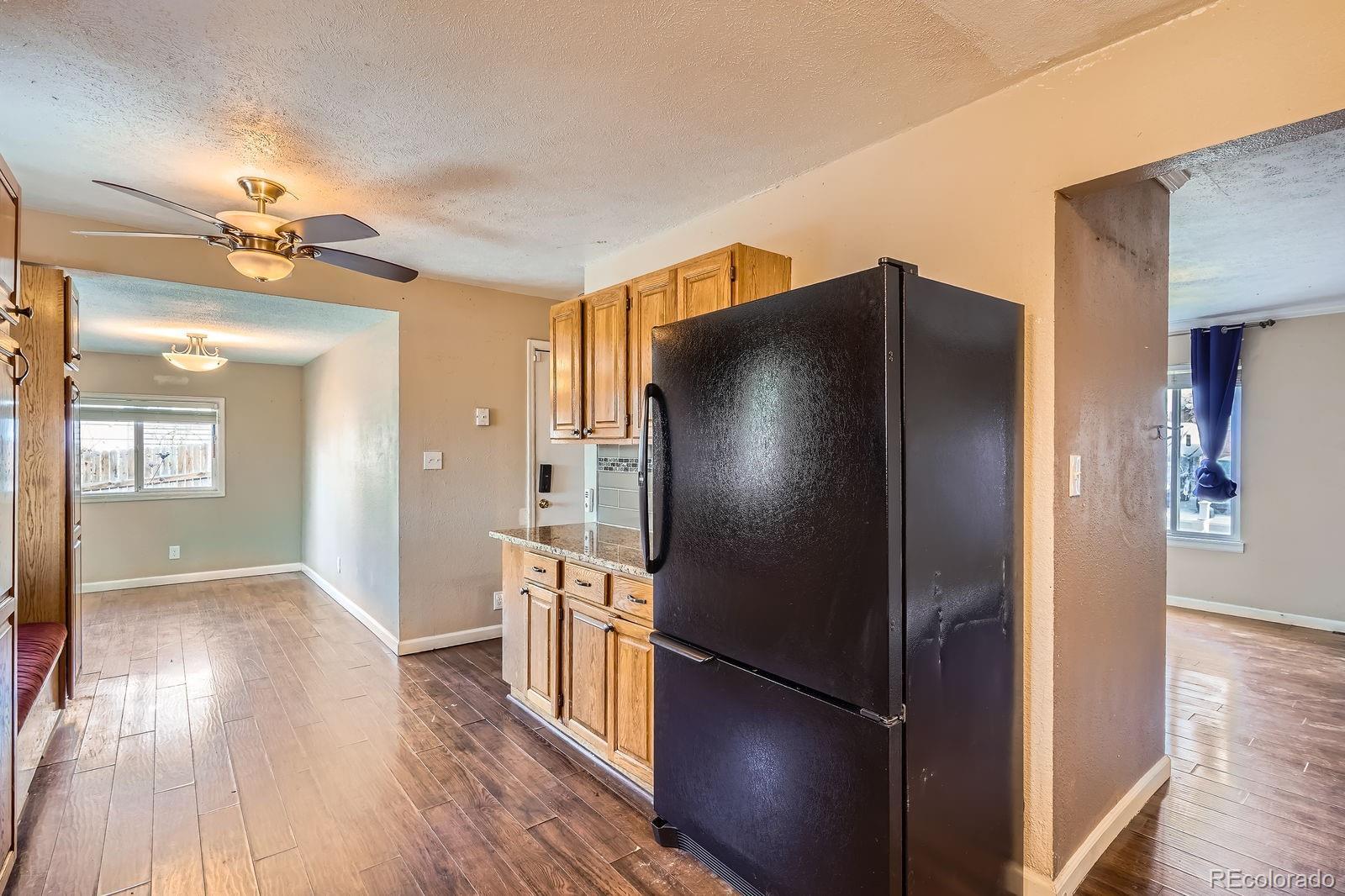 Welcome to this beautiful 5-bedroom, 3-bath ranch-style home located in Arvada’s highly sought-after Hackberry Hill neighborhood. This inviting property features an attached garage and sits on a spacious 8,276 sq ft lot, offering both comfort and functionality. Has RV parking. The home has seen numerous recent upgrades, including a new 200-amp electrical panel, new garage door opener, new fencing, new water heater, new backyard concrete and landscaping, windows installed within the last five years, and a swamp cooler replaced just a few years ago. The kitchen is a standout with granite countertops, a decorative tile backsplash, and a bright, welcoming breakfast nook. The primary bath features a relaxing Jacuzzi tub. A finished walk-out basement provides generous additional living space, perfect for entertaining guests or a home office setup. There is a large fenced backyard that offers ample room for outdoor enjoyment, while the extra parking alongside the home is ideal for an RV, boat, or additional vehicles. There is an attached one-car garage with lots of storage. This move-in-ready home offers excellent updates, flexible living space, and outstanding outdoor amenities. Some photos have been virtually staged. An assumable loan at an incredible 2.25% interest rate is available with approximately a $400,000 balance. Don’t miss this exceptional opportunity to make this wonderful home yours.