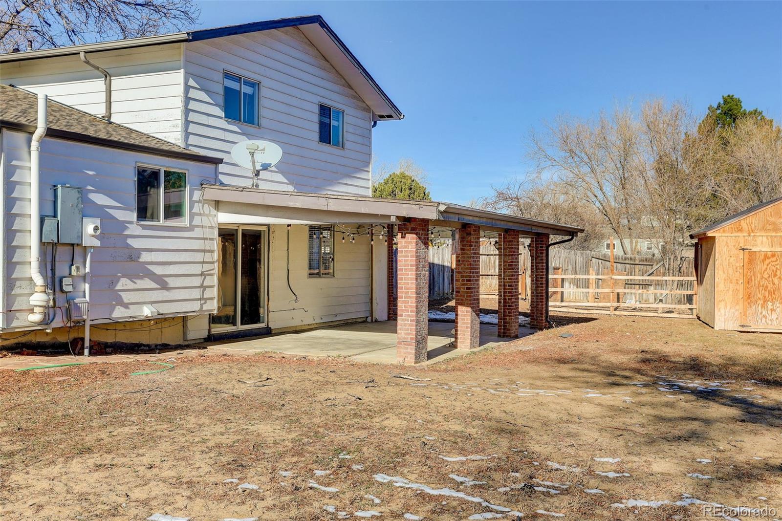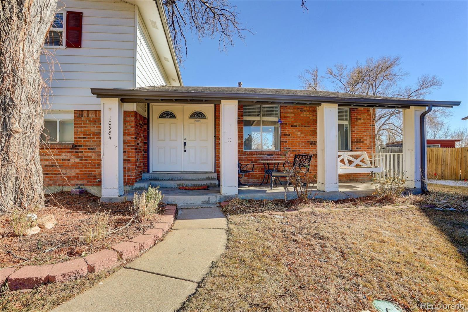 Welcome to this charming Grange Creek tri-level home, where you'll find a spacious backyard complete with a lovely covered patio, ideal for entertaining family and friends. Step inside to discover a fresh and inviting interior, featuring new paint, HVAC system, new wood blinds, and new wood flooring. The upstairs boasts three bedrooms, including a primary suite with a beautifully remodeled three-quarter bathroom, along with a full bathroom conveniently located in the hallway. This home offers two generous living areas adorned with high ceilings that seamlessly connect to the dining area and kitchen, creating a warm and open atmosphere. You'll love the expansive family room on the lower level, complete with a charming wood-burning fireplace, making it the perfect spot for cozy gatherings. For added convenience, the laundry room and a quarter bath are also located on this floor. The finished basement is perfect for relaxation and fun, featuring a game room and an additional bedroom with another stylish three-quarter bathroom. Outside, a spacious storage area next to the driveway is ready for your boat, RV, or extra vehicle. Nestled in a peaceful, dog-friendly community in Thornton, you'll enjoy beautiful walks along the trails and greenbelt close to Grange Creek Park, Holly Park, and Glencoe Park. Plus, you’re just a short stroll away from the recently remodeled Margaret W. Carpenter Recreation Center, the new senior center, and a fun skate park, with schools that are barely two years old. For those interested in a little farming, there's even a chicken coop on the property! And with the new light rail station at 112 & York and RTD bus stops just minutes away, your commute is made easy. Best of all, there’s no HOA to worry about. Come and make this welcoming home your own!
