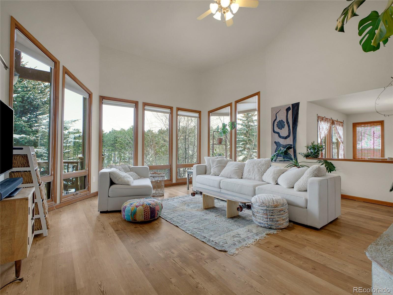 Welcome to life in The Homestead, one of Morrison’s most sought-after mountain neighborhoods, where peaceful surroundings, panoramic beauty, and easy access to Conifer, Morrison, and Denver make everyday living feel like a Colorado getaway. This 4-bedroom, 4-bathroom home (plus office) rests on 2 private acres of towering pines and open sky, offering a serene retreat with a true mountain atmosphere. The warm and inviting main level is centered around a striking two-way gas fireplace that enhances both the living & dining areas, creating the perfect setting for gatherings, quiet mornings, and cozy winter evenings. Open floorplan with an eat-in Kitchen & breakfast nook. Large windows capture sunlit Aspen Tree views, while an oversized 3-car garage and abundant extra parking accommodate vehicles, gear, and all the essentials of an outdoor lifestyle. The generous primary suite provides its own peaceful haven, complete with a beautifully updated bathroom that is currently being custom remodeled—giving the next owner a fresh, modern space ready to enjoy. Three additional bedrooms and a main-level office provide flexibility for guests, home offices, or multi-generational needs, while a spacious lower-level family room adds to the home’s livability. Many updated systems including an on-demand water heater, furnace, and 50 year roof. Step outside and embrace the mountain lifestyle that defines The Homestead. Wander quiet roads, enjoy star-filled nights, and watch wildlife roam the property. The location is exceptional—just minutes to Conifer amenities, downtown Morrison, and world-famous Red Rocks Amphitheatre, with quick access to Hwy 285 for an easy commute to Denver. Outdoor enthusiasts will love being within reach of endless recreation, from local hiking and biking trails to skiing at Loveland, Breckenridge, Keystone, and Vail, just a scenic drive away. Enjoy tranquility, convenience, and the best of Colorado’s foothills living. OPEN HOUSE SUNDAY 12/14 FROM NOON TO 2 PM.