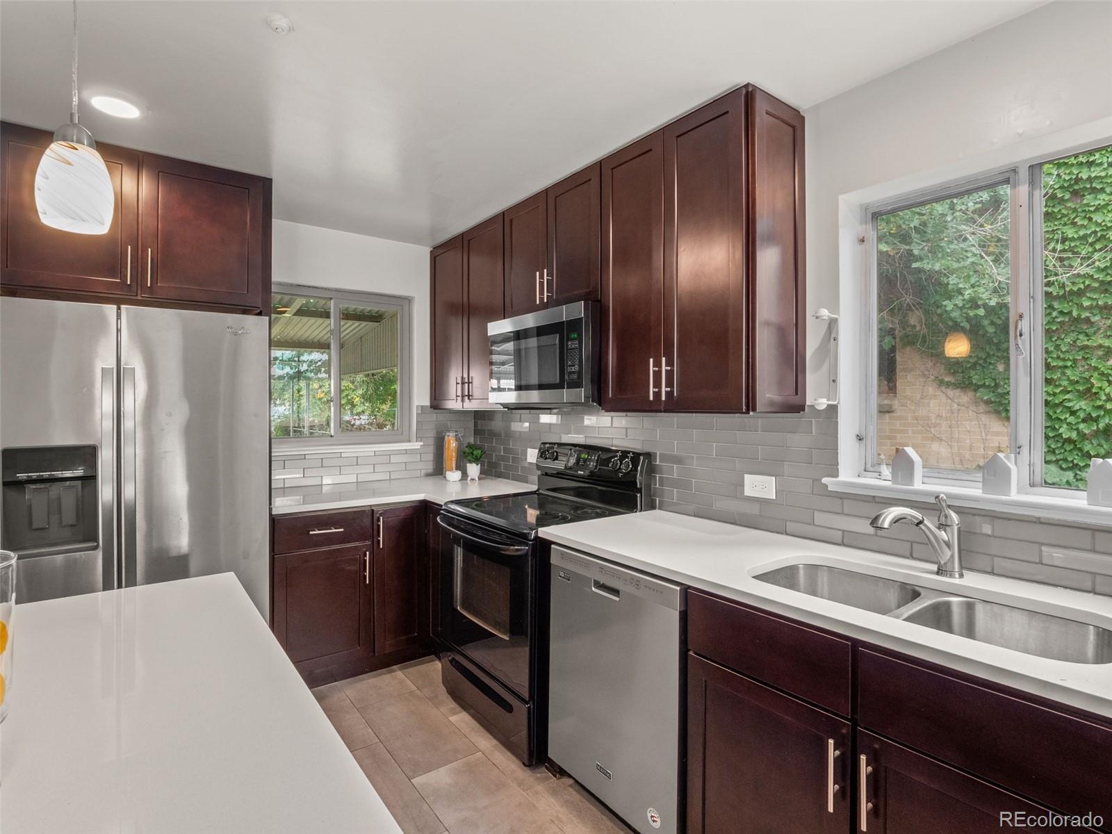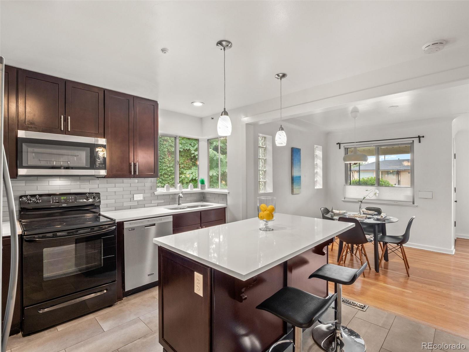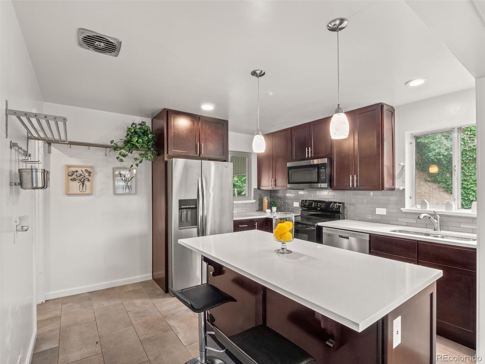Get Ready for Lux Living in Denver’s Coveted Park Hill – 3550 Holly Street Discover the perfect blend of mid-century charm and modern sophistication in this beautifully updated home, ideally located in Denver’s prestigious Park Hill neighborhood. Nestled on an oversized lot with lawn sprinklers in the lush front and back yards, this residence offers both privacy and the ultimate Colorado lifestyle, just minutes from downtown Denver, Cherry Creek, and Central Park amenities. Inside, main-level living shines with two expansive main-floor bedrooms and a bright, open-concept layout designed for seamless entertaining. The gourmet kitchen features a massive island, engineered stone countertops, and stainless steel appliances, creating a perfect setting for everyday living and large friend gatherings. The finished basement adds exceptional versatility with a large family area, an additional bedroom with a large egress window, and a full bath—ideal for a potential in-law suite, income-producing space, or multi-generational living in this large 1756 sq ft home. Step outside to enjoy close proximity to Denver's open space trail system, a fully fenced backyard, and ample room to expand, including the potential for an oversized two-car garage. Every detail has been thoughtfully designed for convenience and comfort, including updated bathrooms, a spacious laundry room, and two off-street parking spaces with additional storage in a large shedon the 6250 sq ft lot. Park Hill’s prime location places you near top-rated Denver schools, neighborhood parks, boutique shopping, and trendy dining, while also offering quick access to downtown Denver, Cherry Creek, and Central Park's vibrant amenities. Buyers can also take advantage of exclusive incentives, including a $6,000+ lender credit via Sunflower Bank or a $5,000 homebuyer grant through Chase Bank. Denver living in a move-in-ready home that combines style, space, & location—schedule your showing at 3550 Holly Street today!