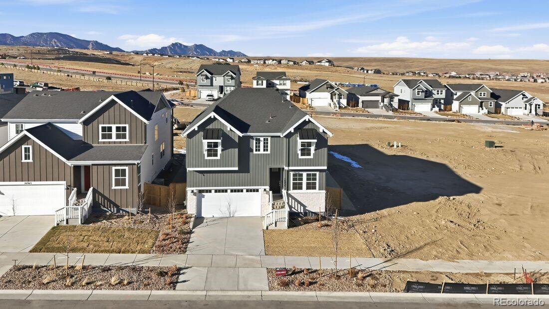 What's Special: 2-Story Great Room with Fireplace | Loft | Oversized Closet in Primary | Oversized Pantry | South Facing. New Construction - Ready Now! Built by America's Most Trusted Homebuilder. Welcome to the Ridgway at 16955 W 92nd Loop in Trailstone Town Collection. This best-selling floorplan blends modern design with everyday comfort, making it a favorite for growing families. The spacious kitchen features an eat-in island and a generous walk-in pantry, opening to a welcoming dining area perfect for gathering. A flexible front room offers space for a home office, playroom, or creative retreat. Soaring ceilings in the great room create an airy, light-filled space ideal for relaxing or entertaining. Upstairs, the private primary suite is complemented by a roomy loft and two additional bedrooms. A two-car garage and large laundry room add convenience and functionality. Set in Arvada’s Trailstone community, you’ll enjoy views of downtown Denver and the Rockies, plus planned amenities like a pool and pickleball courts just steps from home. Additional Highlights include: Old Mill exterior, sleek U kitchen faucet, single basin kitchen sink, satin nickel Genta bath and door hardware.