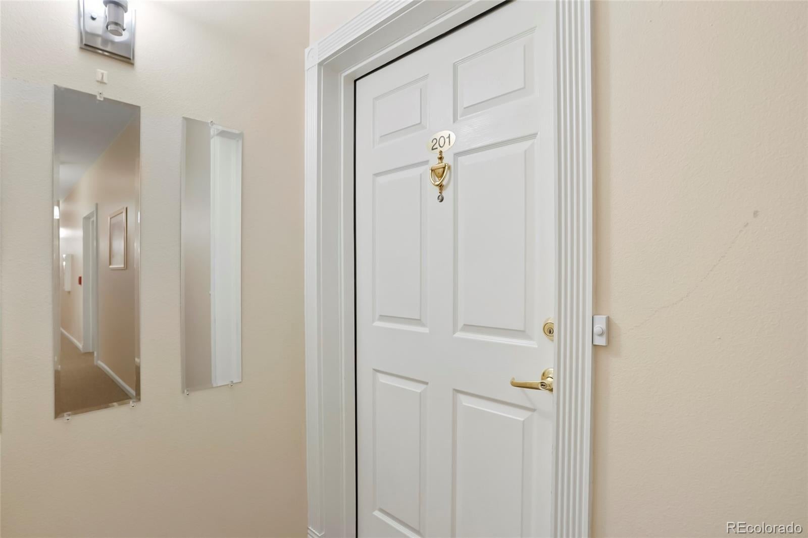 Welcome to this beautifully updated bright and inviting 2 bed 2 bath second floor condo in the desirable Arlington Building at Riverwalk. This turn-key condo offers a seamless blend of modern finishes, functional design, and just steps away to the community’s premier amenities. UNIQUE FEATURES: This unit’s location is at the end of the building which offers additional windows and natural daylight on two sides of the living room not just one side. New luxury vinyl wood flooring, new bathroom vanity and mirror, new baseboards, fresh paint, updated lighting, hardware and sink faucet and a newer hot water heater. The open combined living and dining area offers a perfect space for relaxing or entertaining with direct access to the spacious Easterly facing covered patio. The kitchen offers ample cabinetry, counter space, and a unique butcher block counter. The laundry with full-sized washer and dryer is located just off the hallway for added convenience. The primary suite provides direct access to a smaller patio, dual sliding closets, and a ¾ bath with a walk-in shower. A nice benefit of The Arlington is the refurbished first-floor guest suite. This suite is available to reserve for out-of-town visitors at a low nightly rate. There is a secure heated underground parking with a reserved space (#18) and a private storage cage. The expansive clubhouse offers a billiards room, ping pong, banquet rooms, a fully equipped fitness center, a lounge, spa, outdoor pool, sauna, and hot tub with a variety of monthly activities. Riverwalk is centrally located providing walking distance to restaurants, Platte River, quaint old town Littleton, light rail, golf and shopping. With a premier location, tasteful upgrades and a thoughtful layout, this condo is move-in ready... And perfect for anyone looking for a distinctive carefree lifestyle and the ease and enjoyment of maintenance-free living in a wonderful community