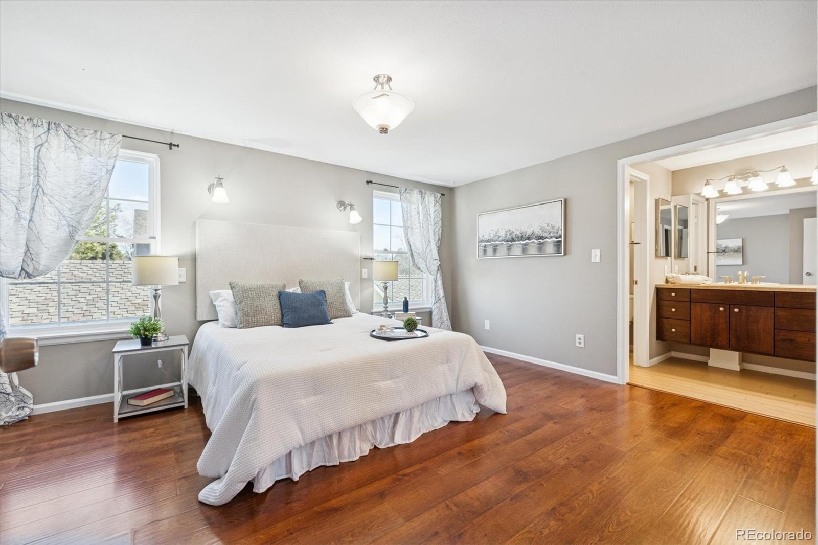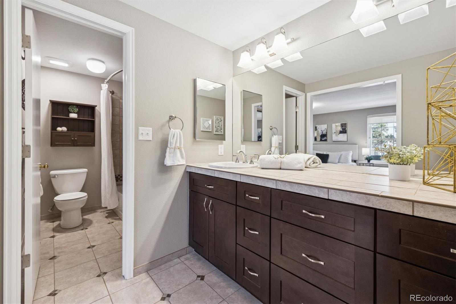 Welcome to 7178 E Bentley Circle, ideally located in the highly desirable Sturbridge community and within the top-rated Cherry Creek School District, where lifestyle, comfort, and convenience come together seamlessly. This home offers easy access to the nearby private tennis and pickleball courts, the community swimming pool, and scenic walking trails, including the iconic covered bridge over the meandering Little Dry Creek. The versatile floor plan features four bathrooms and the choice of two spacious primary en-suite bedrooms, one of which is west-facing with a covered private deck, perfectly positioned to relax and take in stunning sunsets overlooking the covered bridge, winding stream, and mountain backdrop. Inside, enjoy a cozy wood-burning fireplace and newer double-pane windows that create a quiet, peaceful interior. The updated kitchen showcases 42-inch upper cabinets with generous storage, while the fully finished basement includes an updated bathroom, large laundry room with abundant storage, and a huge open layout ideal for a game room, entertainment space, and/or home office. Step outside to a private back patio for outdoor relaxation or entertaining, and enjoy the everyday convenience of a two-car garage, all tucked into a this quiet Centennial setting with exceptional community amenities. Book your private showing today, for this rare opportunity to own this special home in such an ideal location.