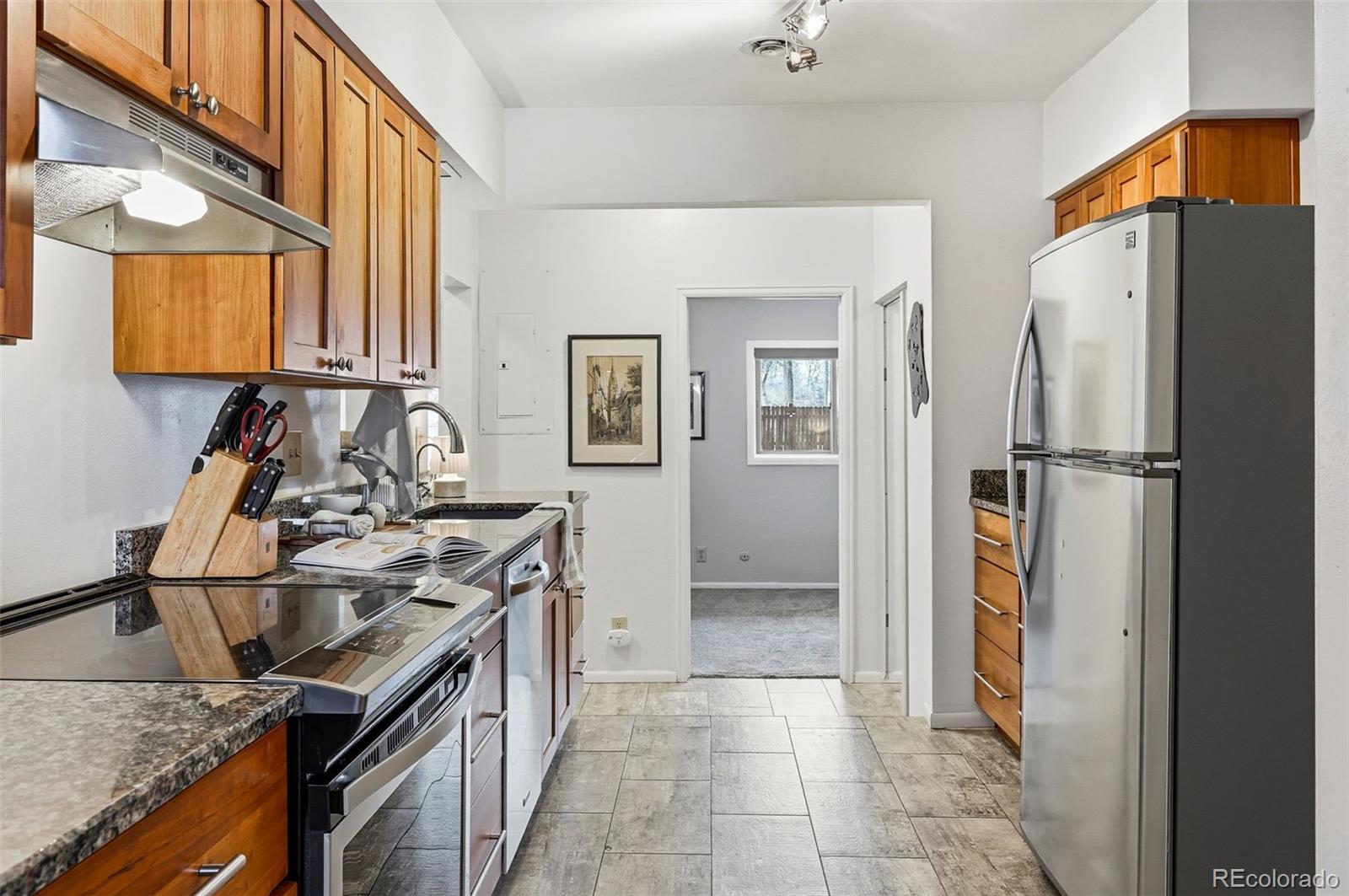 Complete main-floor living in this beautifully maintained ranch home in the desirable Evanston neighborhood, ideally located near Harvard Gulch, Rosedale, South Broadway, DU, and Platt Park. Offering 3 bedrooms and 2 full bathrooms, this move-in-ready home features charming curb appeal, a large private yard, and mature, lush landscaping. Inside, you’ll find real hardwood floors, a sunlit living and dining room, and an updated kitchen with ample counter and cabinet space, plus two pantries for exceptional storage. The spacious primary suite is filled with natural light and includes an elegant en suite bath and walk-in closet. Two additional bedrooms and a full bathroom, plus a laundry room. With nearly 1,400 square feet all above grade, this home offers outstanding value; most nearby properties have only two-thirds of this square footage above grade. Additional highlights include forced-air furnace (new in 2018), central A/C (new in 2018), a newer water heater (2020), newer roof (2018), dedicated laundry room, a beautiful back entry with slate flooring, and an attached over-sized one car garage. Crawl space offers additional storage space plus a shed in the backyard. Blocks away from Bates-Logan Park, which gets rave reviews! If you desire to open the kitchen to the living and dining areas, we have a quote to do so! Slab in backyard in case one wants to add an additional garage (with alley access).